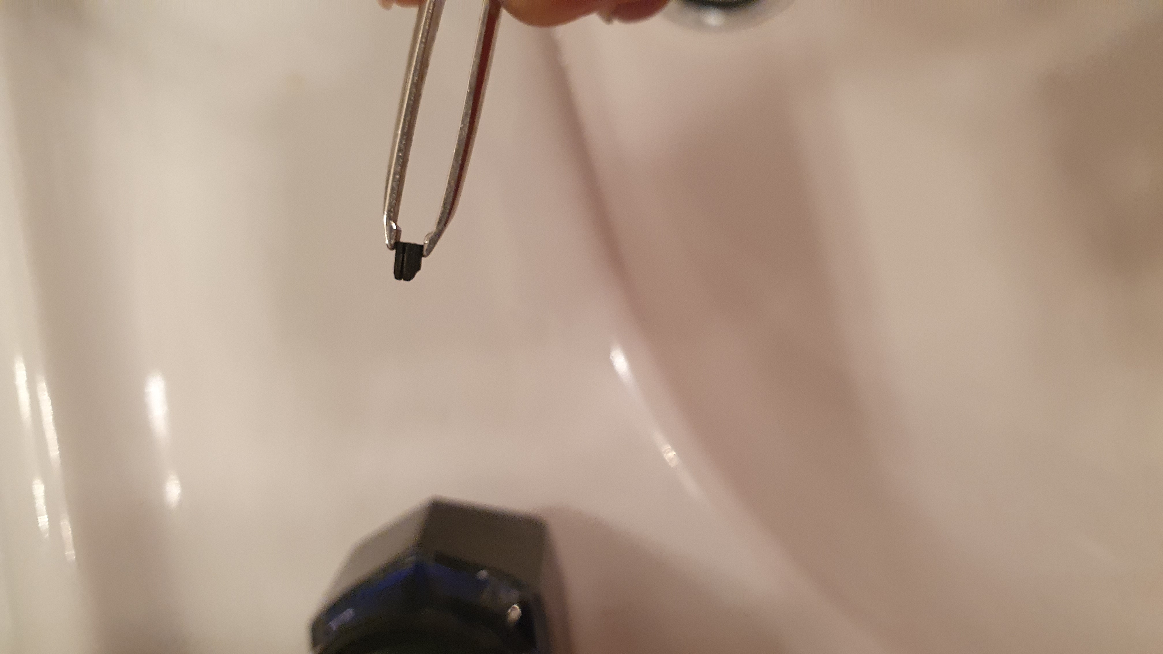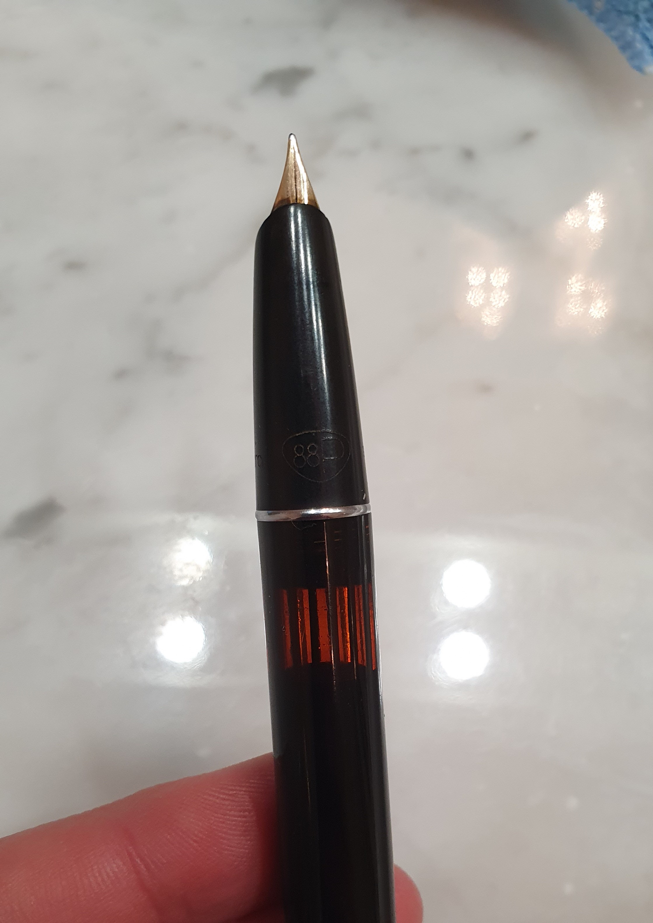 Cominciamo con le news negative: nel lato interno, ho trovato la parte finale dell'alimentatore spezzato, era tenuto attaccato al resto dell'alimentatore da inchiostro secco. Probabilmente il precedente proprietario non se ne è accorto, in quanto il pezzo era ancora all'interno della penna. Secondo voi che problemi potrei avere nell'erogazione dell'inchiostro? Se fosse un problema grave potrei valutare di cercare la parte da un'altra 88p usata non più funzionante.