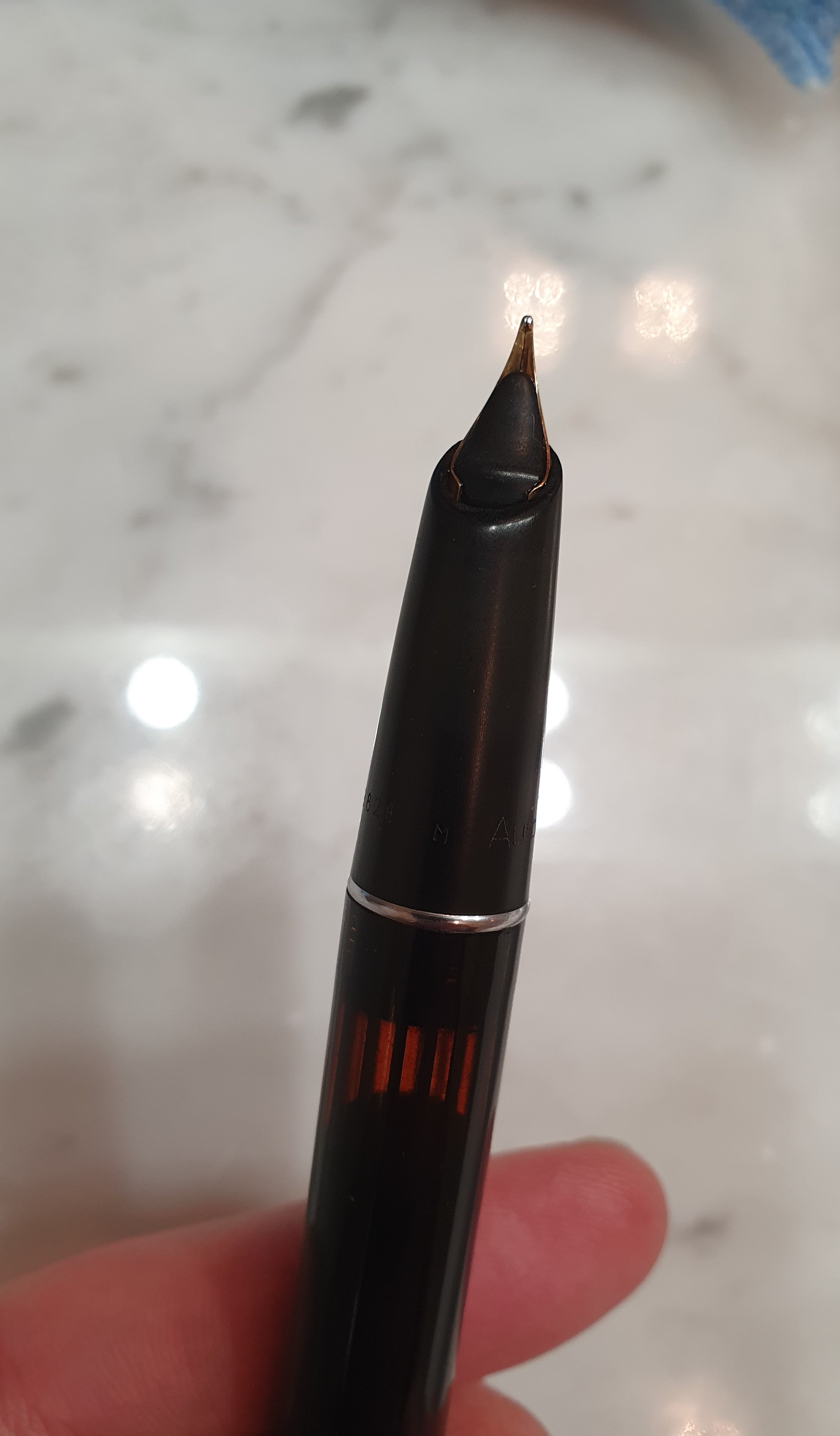 Ho iniziato a pensare che non sia l'inchiostro secco il problema, ma sia stato utilizzato qualche prodotto per sigillarla (direttamente in fabbrica o in seguito durante una riparazione?), leggo sul forum che a volte si usa gommalacca o altri prodotti. Però devo dire che a occhio nudo non c'è traccia di qualche segno di riparazione e il signore che me l'ha data dice non conoscerne la storia ma che probabilmente non era mai o quasi stata usata e dubitava di interventi sulla stessa. Anzi, le foto che ho fatto sono venute un po' scure e non si nota molto, ma dal vivo riesco a vedere, tramite la finestrella della penna, la filettatura del fusto e a occhio sembra pulito, non ci vedo nulla di particolare