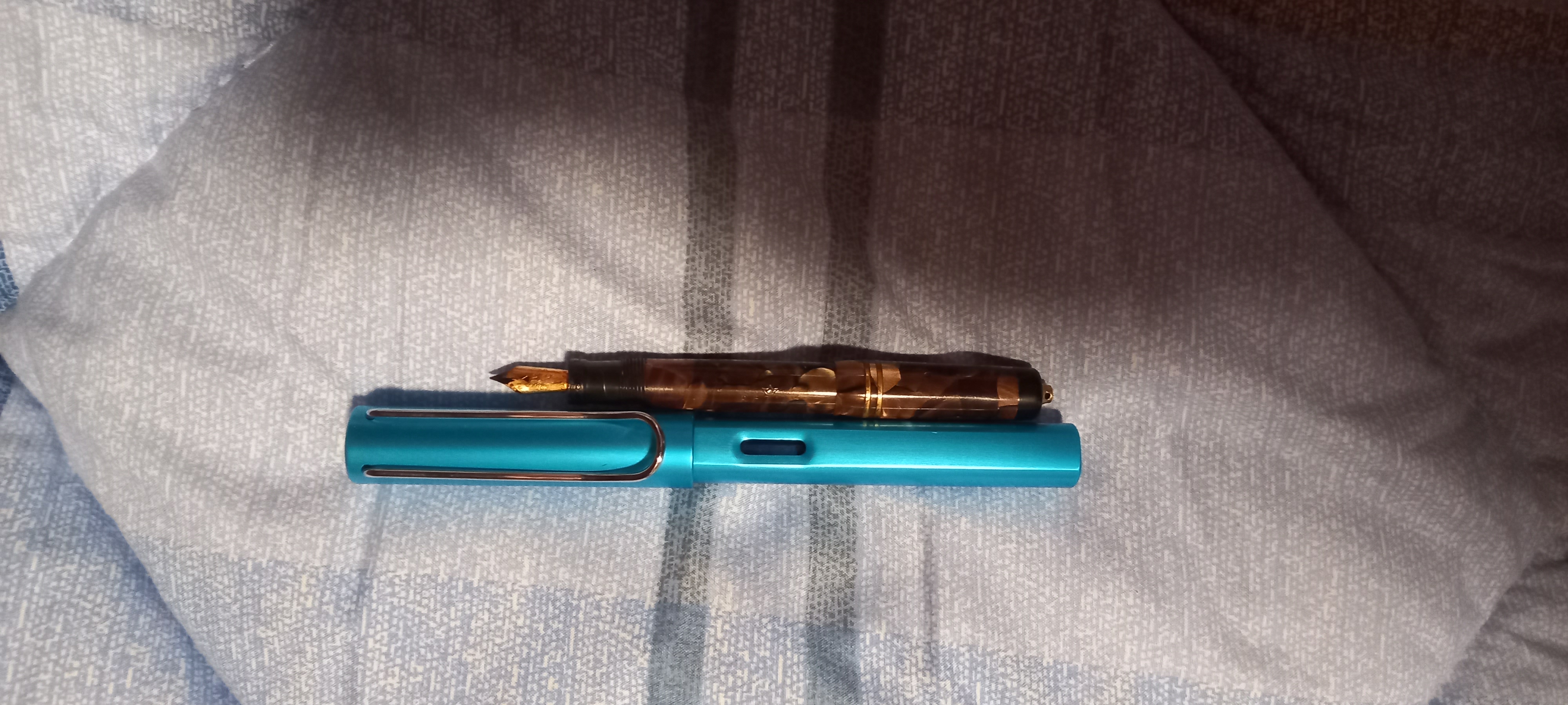 Vi lascio la mia piccolina, confrontata con una Lamy. Presa qualche anno fa in un pen show a Napoli, ha davvero bisogno di un fiocchetto per renderla ancora più bella e personalizzata. 😊