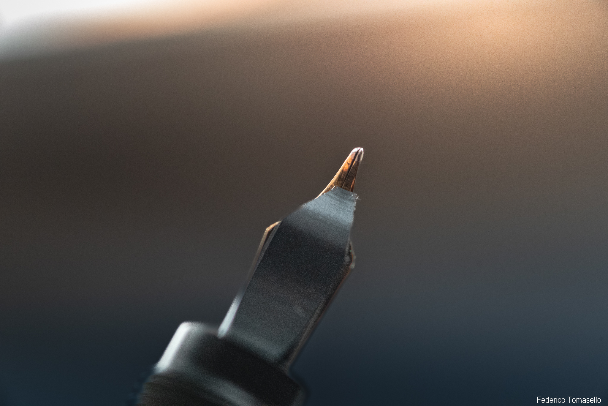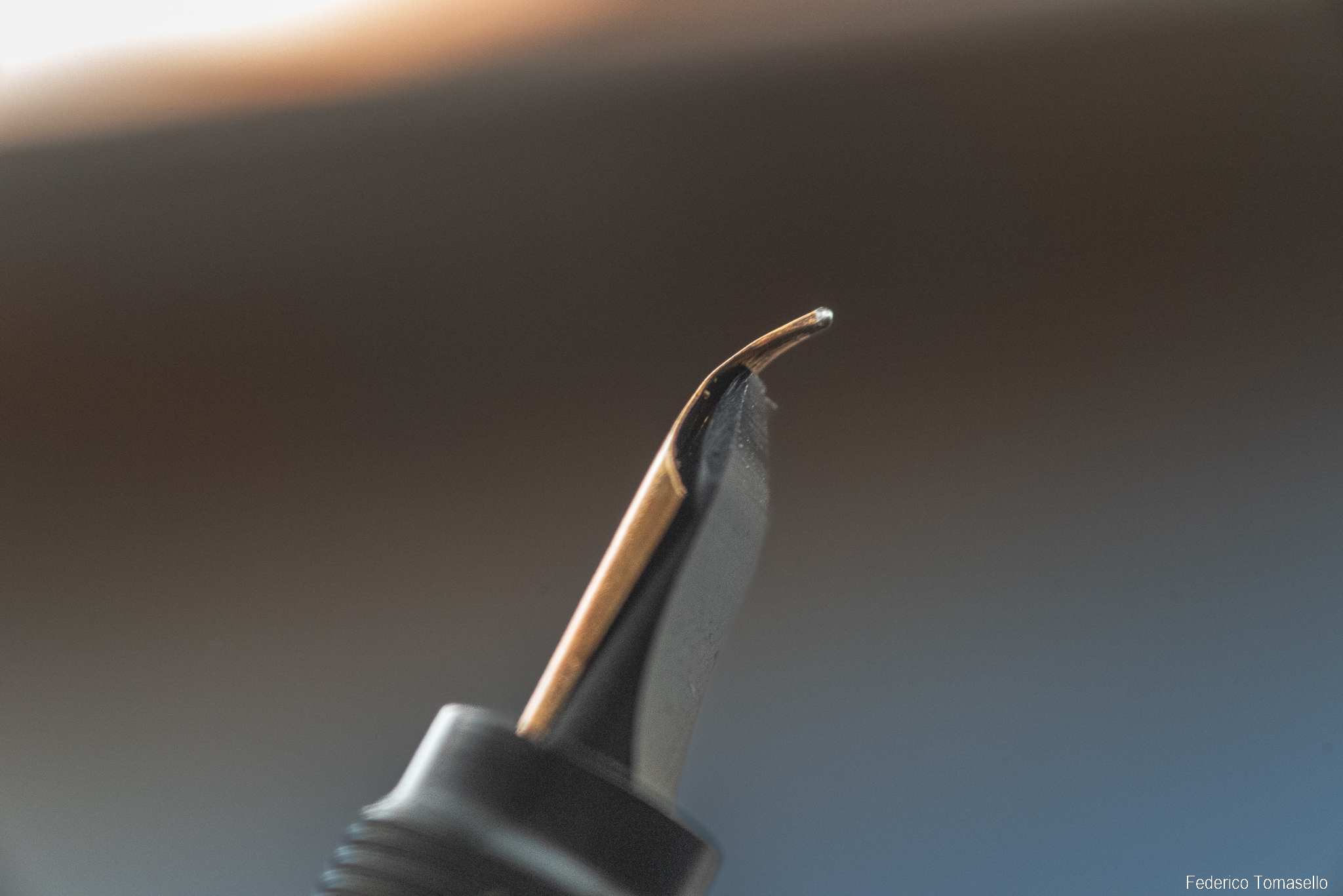 Il pennino è piccolo ed evidentemente non funzionale, essendo rotto sulla punta uno dei rebbi.