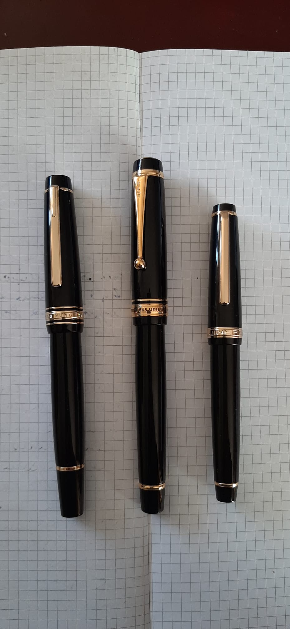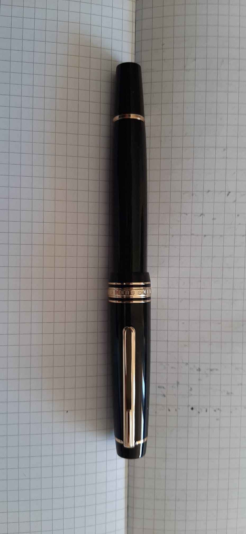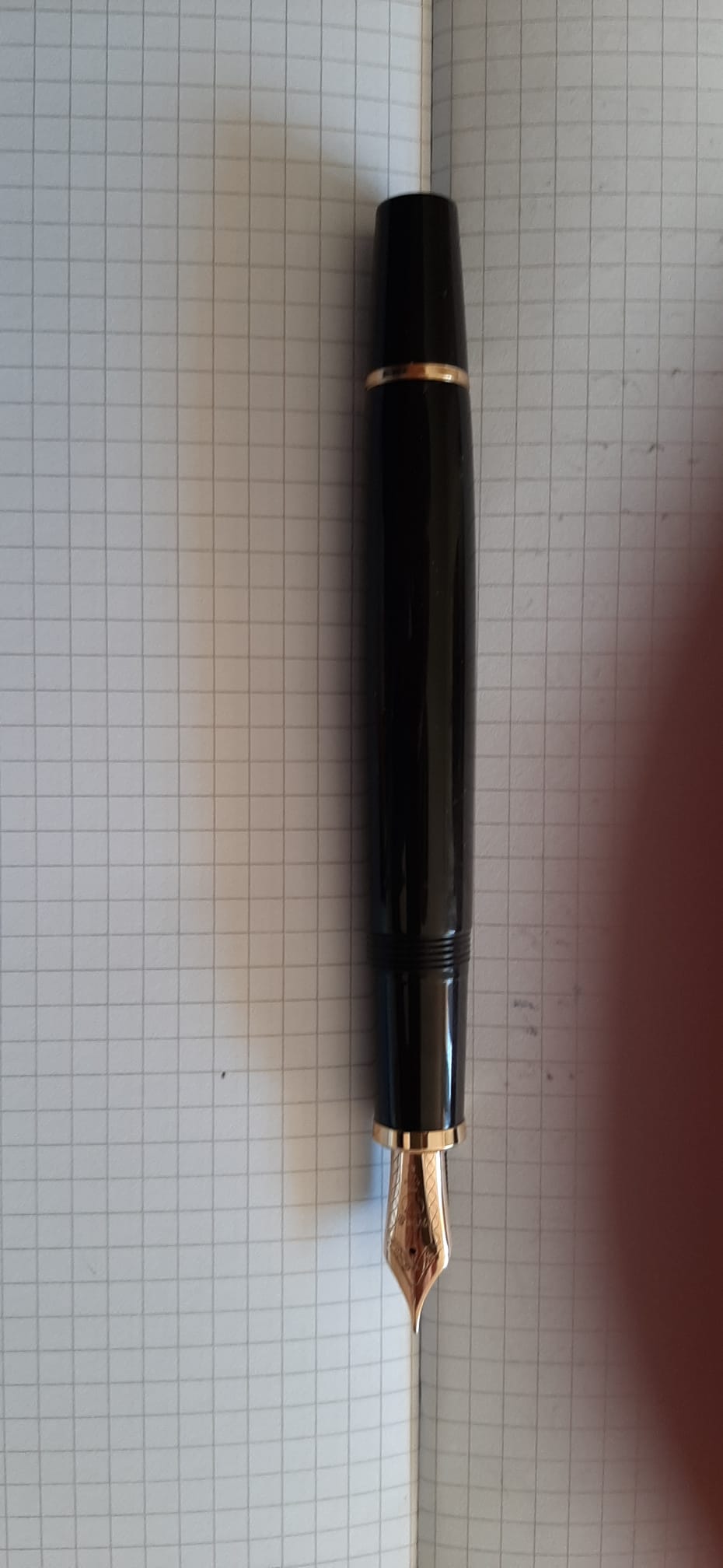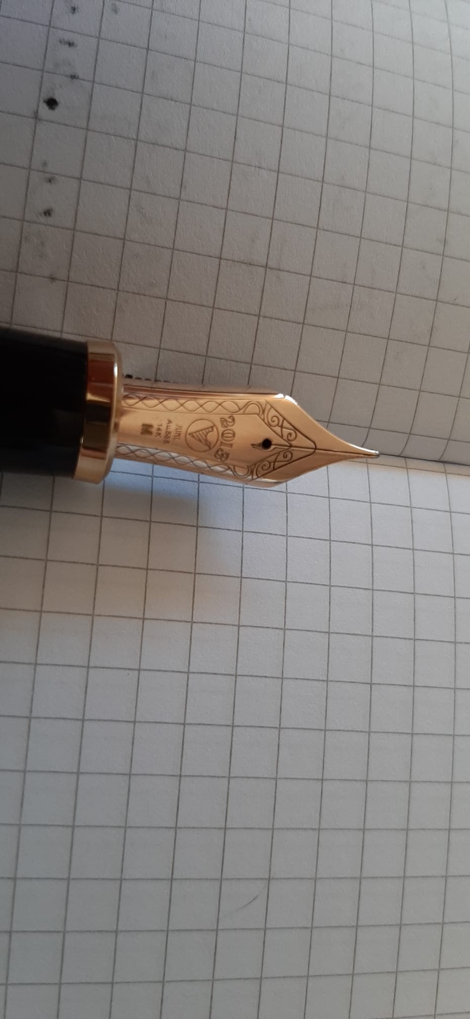 Se pensate che la nostra cinesina sia arrivata con abiti dimessi vi sbagliate; niente "involto" di cellophane ma piuttosto una altezzosa scatolina (noblesse oblige). Una volta aperta una sorpresa che mi fa tremare i polsi: che ci fa un converter se ho acquistato una penna a pistone ? Per un attimo ho temuto, poi ho capito (o almeno penso); non di converter si tratta ma di olio siliconico per la lubrificazione del pistone. Il pistone dovrebbe essere in metallo ma nella "foga della carica" non ho prestato attenzione (ora non mi va di scaricarla); il peso (non che sia sbilanciata indietro o che sia particolarmente pesante) sembrerebbe confermarlo. Sicuramente sul Forum ci sarà un amico cinese o con amici cinesi; sarebbe cortesissimo se mi traducesse il libretto di istruzioni in particolare per quel che riguarda, appunto, l'operazione di lubrificazione del pistone. La stilografica riporta impresso il marchio Wing Sung sul cappuccio, quindi non di Yongsheng si tratta, o no ? Forse è la stessa cosa, boh ? Comunque, come dire, è quella della foto che ho comprata. Il pennino, scartata l'ipotesi improbabile di false punzonature (almeno mi auguro improbabile) è in oro 14 KT. Ma veniamo a noi; che impressione dà questa cinesina ? Esteticamente mi è piaciuta diversamente, com'è ovvio, non l'avrei acquistata. Si tratta di una flat top senza pretese di originalità, di forma classica. Come tutti i grandi classici sono divenuti tali perché di una bellezza senza tempo. La vedete in compagnia di due amichette: la sorprendente (in relazione al prezzo) Jinhao 82 e l'altezzosa Pilot 845 (non ho la Sailor pro gear da mostrare insieme ... oddio devo rimediare !) . La Wing Sung come dimensioni sta nel mezzo delle tre. E' una stilografica di dimensioni adeguate, che "cade bene" in mano, del giusto peso, elegante e che si rimira con piacere; ca suffit. A livello di finiture non ho nulla di particolare da eccepire; non ho trovato alcun segno dello stampaggio (cosa che invece ho notato sulla Pilot 743), i materiali sembrano almeno discreti se non buoni (paragonabili certamente alla predetta Pilot 743 o alla Platinum President ... sulla 845 non mi spingo per non essere accusato di blasfemia). Le minuterie metalliche sono, rispetto alle citate Pilot e Platinum, di un colore più rosato, leggermente meno giallo. Io forse, ma forse mi lascio anche condizionare dal blasone, preferisco la tonalità Pilot ma si potrebbe tranquillamente sostenere il contrario. L'anellino sulla sezione spero che con il tempo ed il contato con l'inchiostro non scolorisca; infatti per la sua forma mi è sembrato propenso a ritenerlo ....lo scopriremo solo vivendo. Piuttosto non ho capito se il pennino sia avvitato o inserito a frizione; guardandolo non si notano incavi per strumenti vari di smontaggio ma potrebbero anche essere coperti, appunto, dall'anellino sulla sezione (ma no ! non è pensabile che per svitare il pennino si debba rimuovere l'anellino, poi che si fà ?). Appena arrivata, preso da curiosità, l'ho subito inchiostrata senza alcun rito propiziatorio (pulizia, bagnetti, benedizioni varie). Come inchiostro ho scelto il Rohrer Sepia che, a mio avviso, ben si sposa con la sobria eleganza della signorina. Come scrive: bene; almeno a mio avviso. Il tratto è un M corretto, il flusso è adeguato. Io personalmente odio quei tratti incerti e quei flussi trattenuti ... mi fanno venire sete ...e i nervi. Trovo il pennino piacevolmente morbido e molleggiato; per le variazioni di tratto non mi chiedete... non ho intenzione di spingere. Scrive come la Pilot 845 ? No ! La Pilot scrive un pochino più piacevolmente (per quanto questa affermazione con inchiostro diverso lascia il tempo che trova) ma, se consideriamo le diverse centinaio di euro che le separano ... non so (d'altra parte ho penne cinesi da 5 euro che scrivono benissimo ... si può dire ?). In ultima analisi sono contento dell'acquisto ? Si. La stilo dà le stesse sensazioni lussuriose tra le dita, che ne so, di una Leonardo Art Decò, di una Scribo Feel, di una Pilot 845 (ci metto anche la 823), di una Omas Paragon in celluloide, di una Pelikan M 1000, di una Waterman Edson, di una MB Hemingway....no ! Ma di questo se ne è accorto anche il mio conto in banca. Però è una bella stilografica, che scrive bene, elegante, piacevole nell'uso ... insomma non è come le super di cui sopra ...però è la sorella piccola con i tratti di famiglia. Troppo presto per dire sulla durabilità, nulla però fa presagire disastri. Da ultimo mi sta venendo questa perversione ... vorrei caricarla con un Hero (così, per una questione di rispetto nazionale); non riesco però a trovare su Alì un venditore che abbia disponibile il nero, il blue black ed il blu (confezione da 60 ml) così da ammortizzare con un unico ordine i costi di spedizione .... qualcuno sa aiutarmi ?