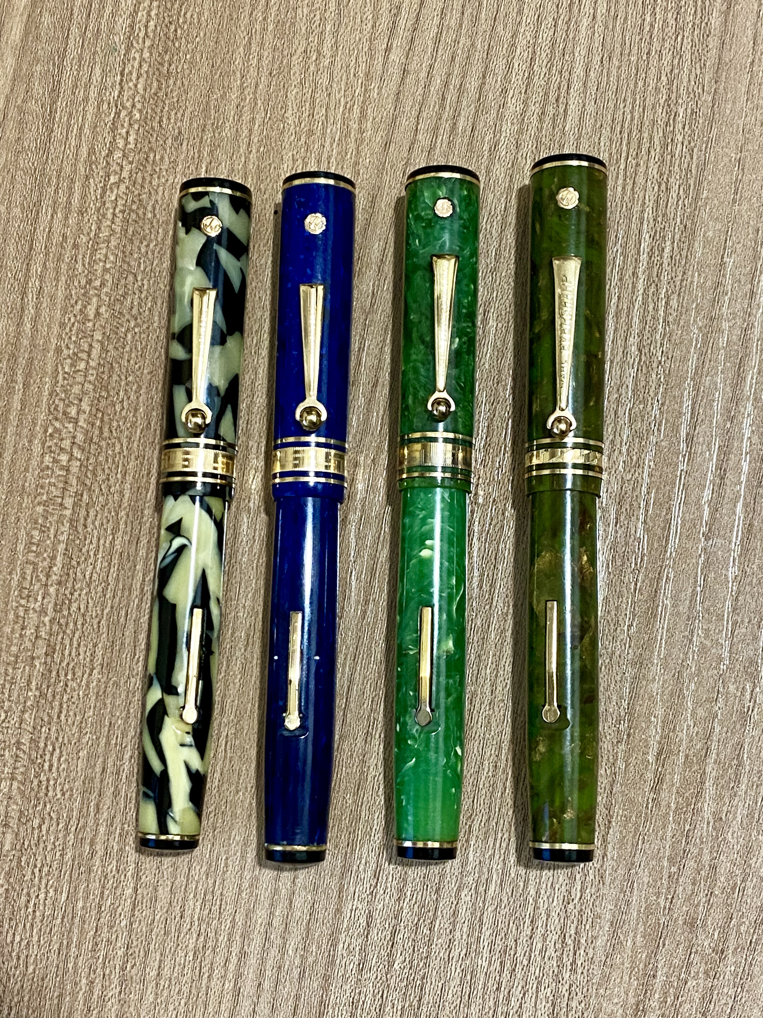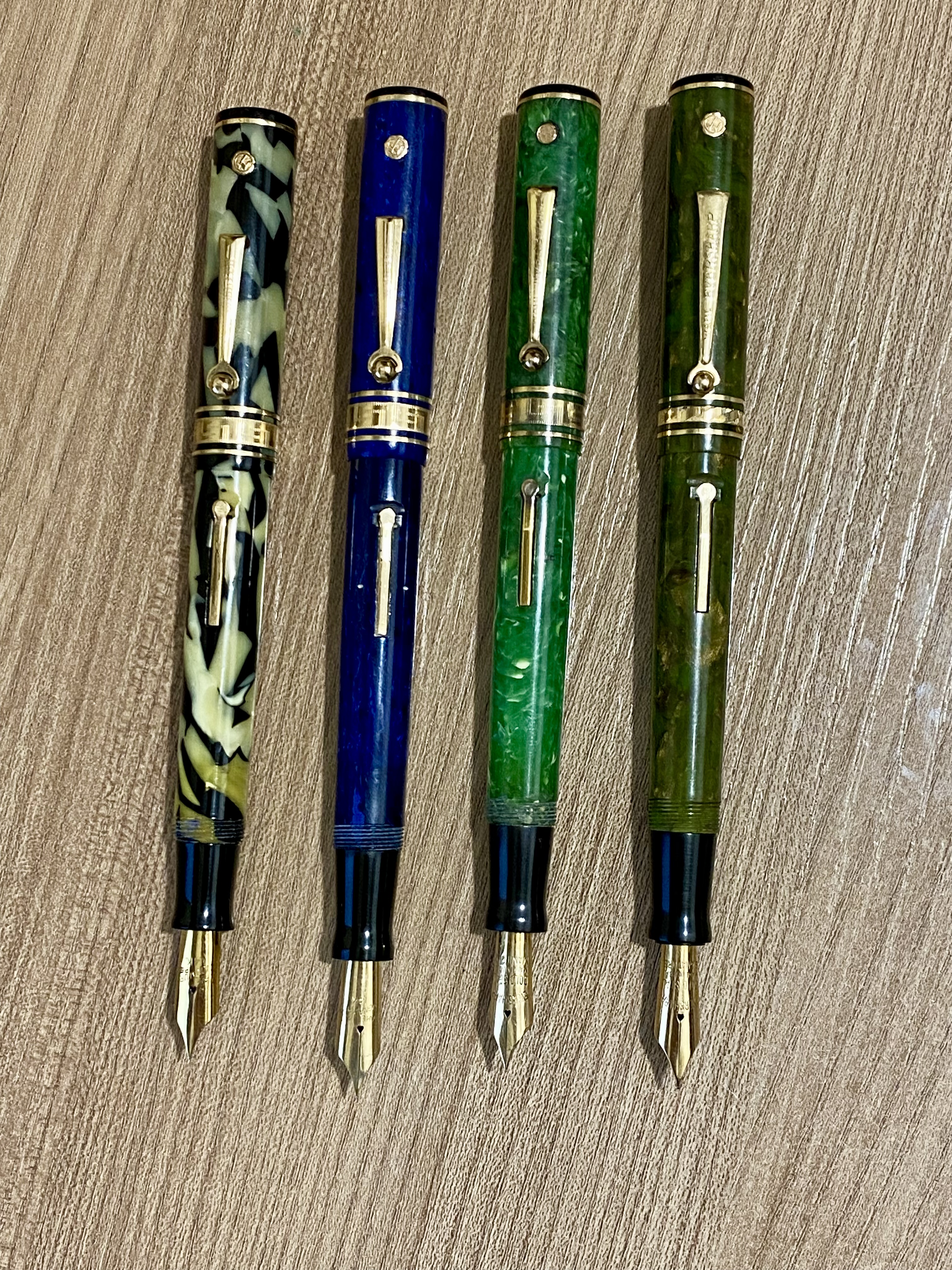 Confesso di essere particolarmente soddisfatto di questo primo piccolo traguardo raggiunto. Sono finalmente riuscito a mettere insieme le quattro Wahl Decoband in celluloide. Eccole: