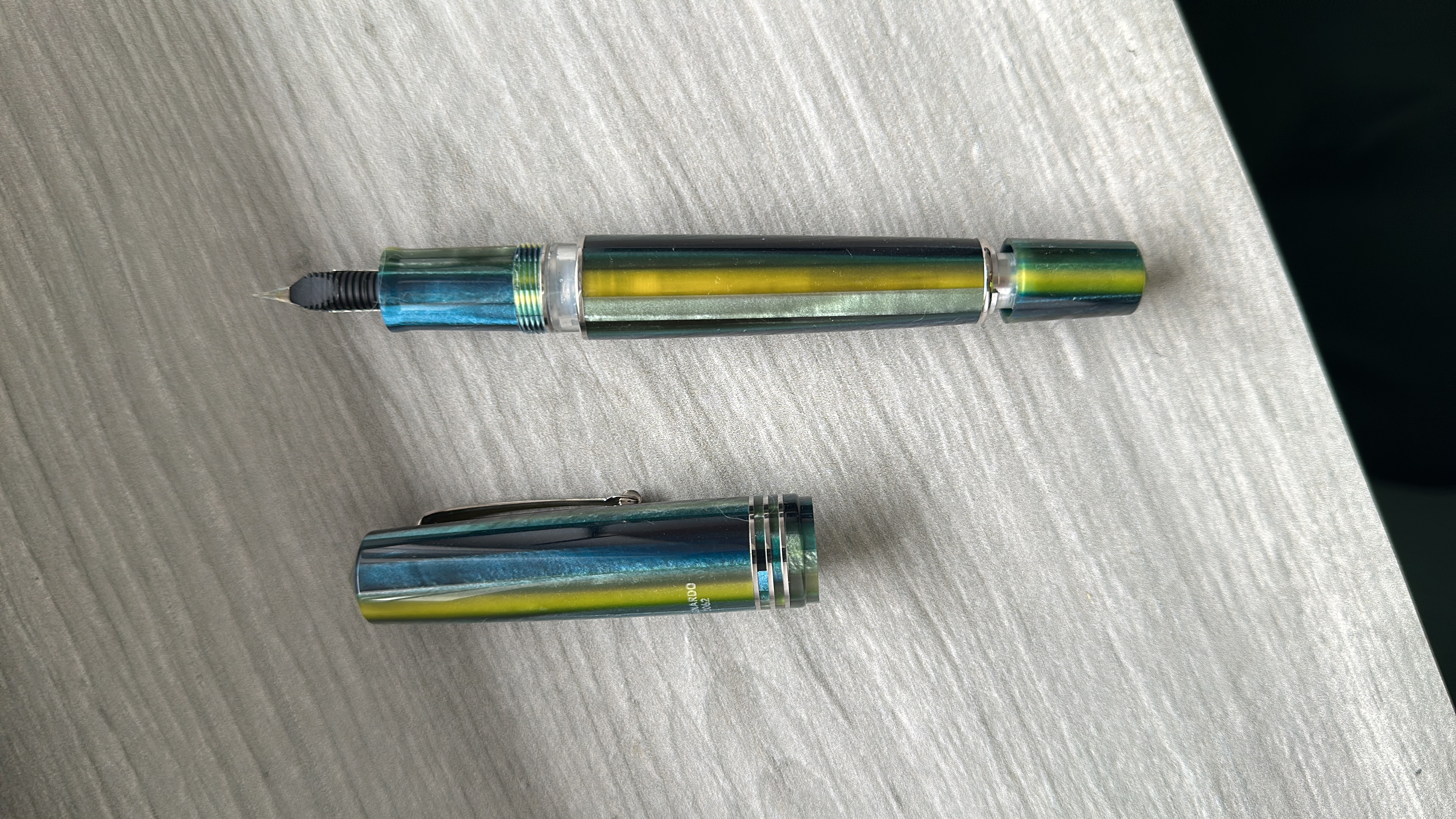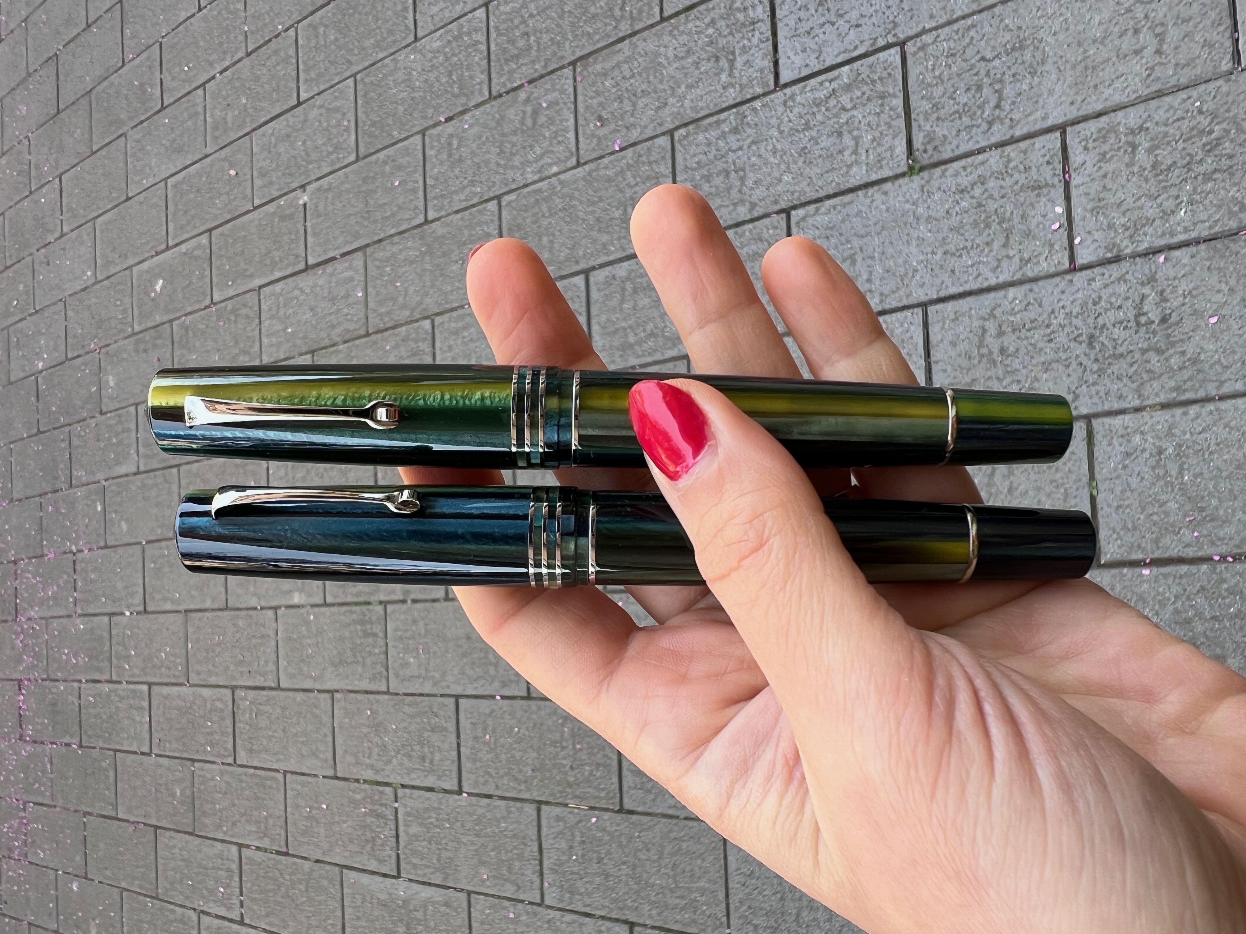 La settimana dopo, con la nuova fornitura ne sono arrivate due e mi è stato fatto un set di foto con le penne affiancate per poter scegliere la combinazione di colori più congeniale (e ho scelto quella con più giallo, simile alla prima nel video).
