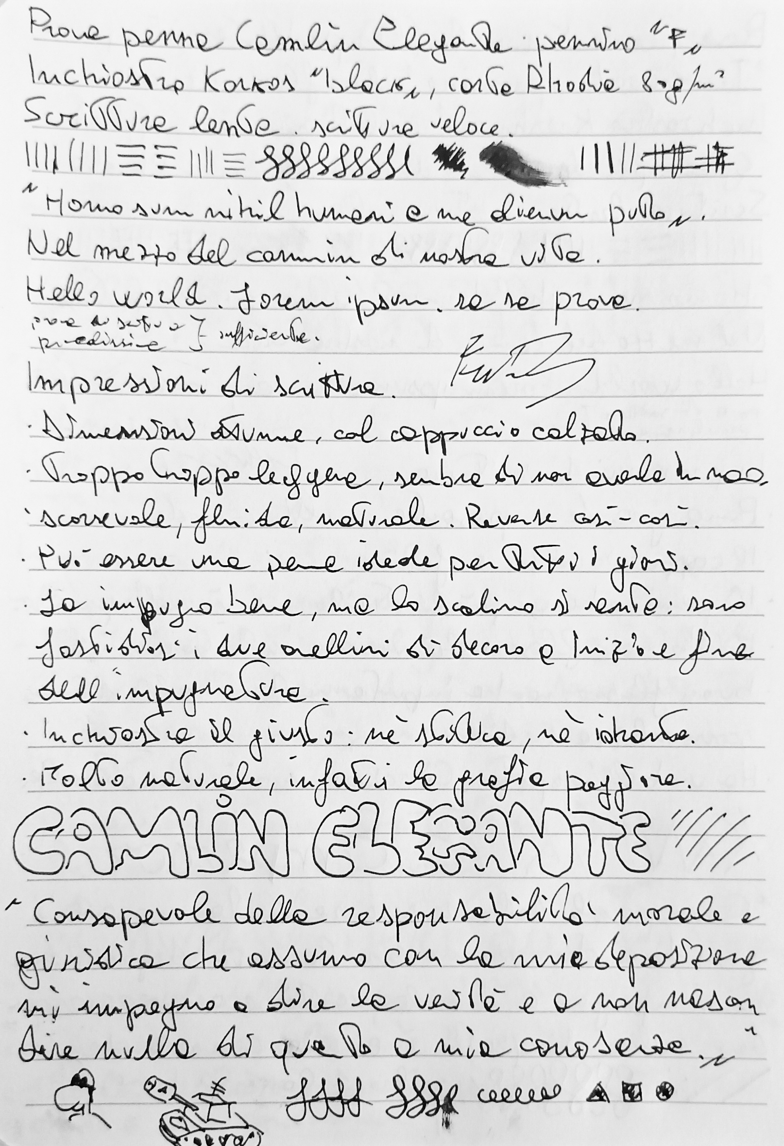 In ogni caso, diminuendo (molto) la pressione, l'esperienza di scrittura migliora parecchio, pur rimanendo abbastanza fastidiosa, ma sufficiente per buttare giù qualche pagina di prova (anche oltre quelle che allegherò qui sotto).