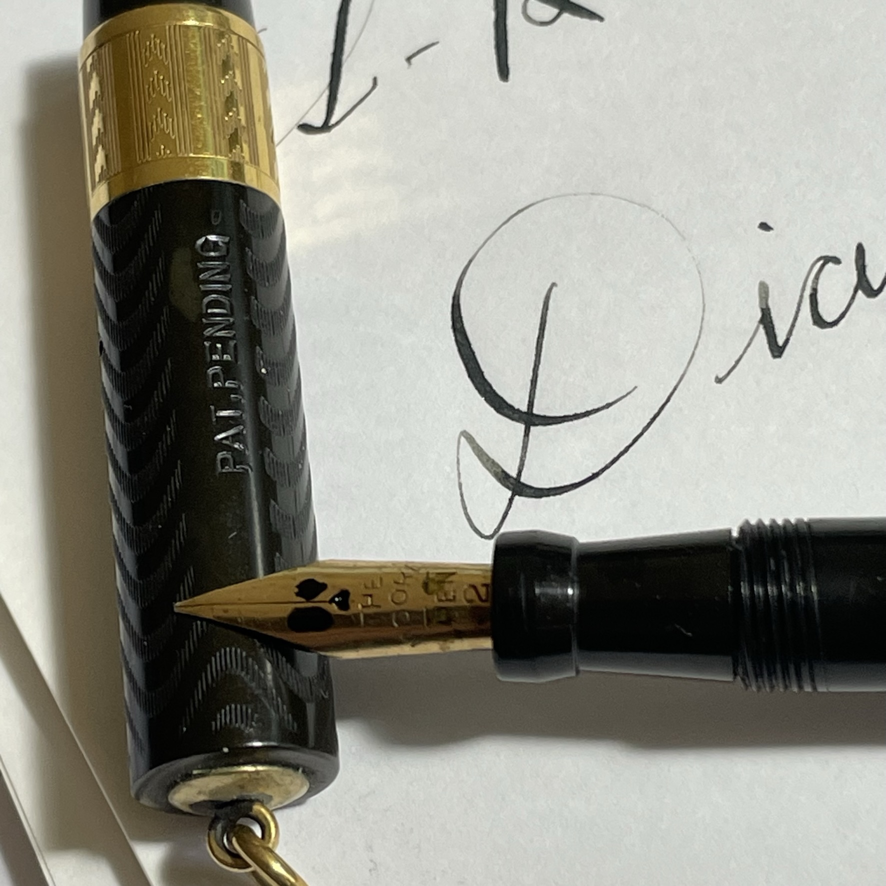 Per la datazione del mio esemplare, azzardo un’ipotesi a partire dalle incisioni, dal fatto che sia a levetta e dalle date dei brevetti e dico che la penna dovrebbe essere del 1920-21 o forse 1922, se l’azienda aveva l’abitudine di riutilizzare pezzi (come la Parker!). Se qualcuno ha altre piste ...