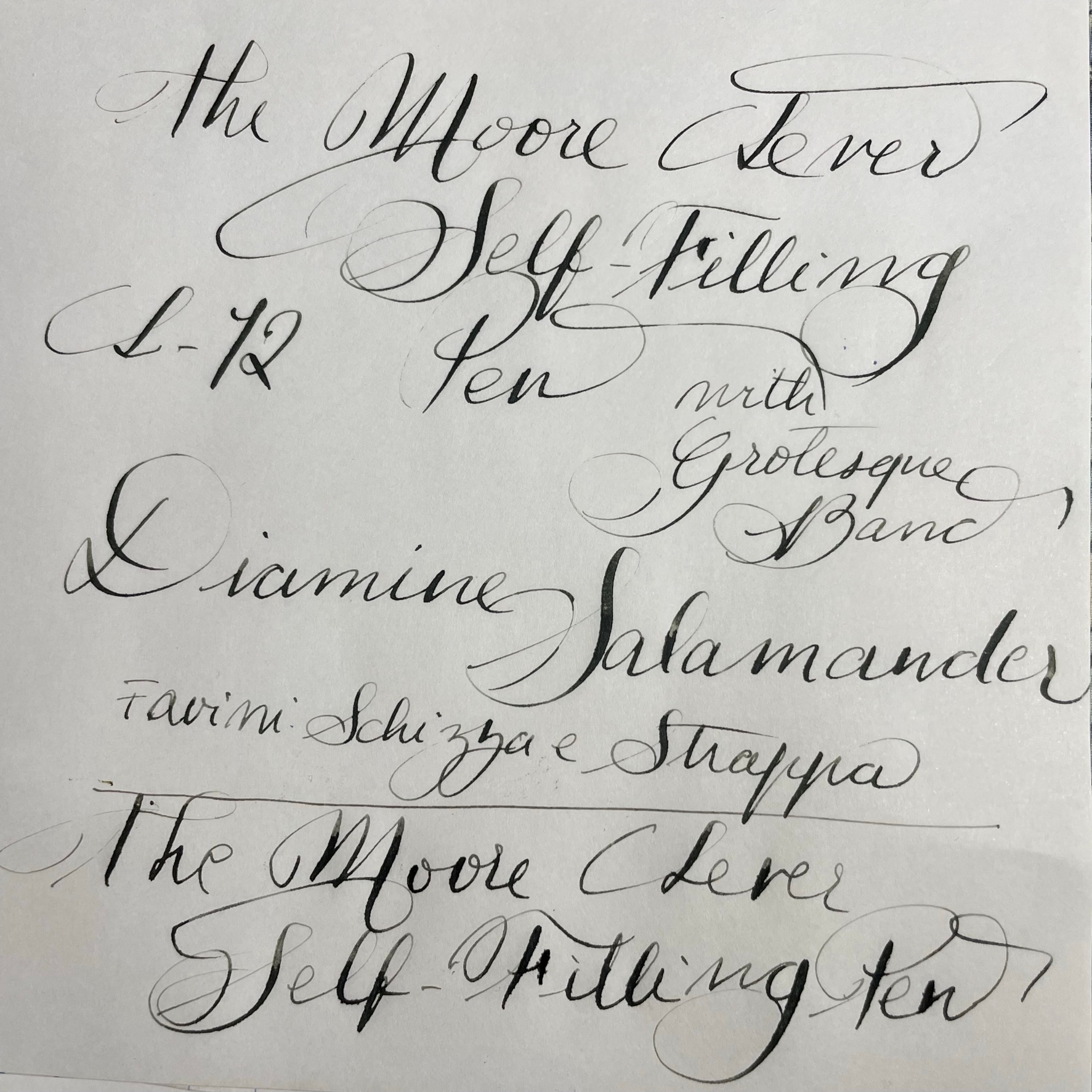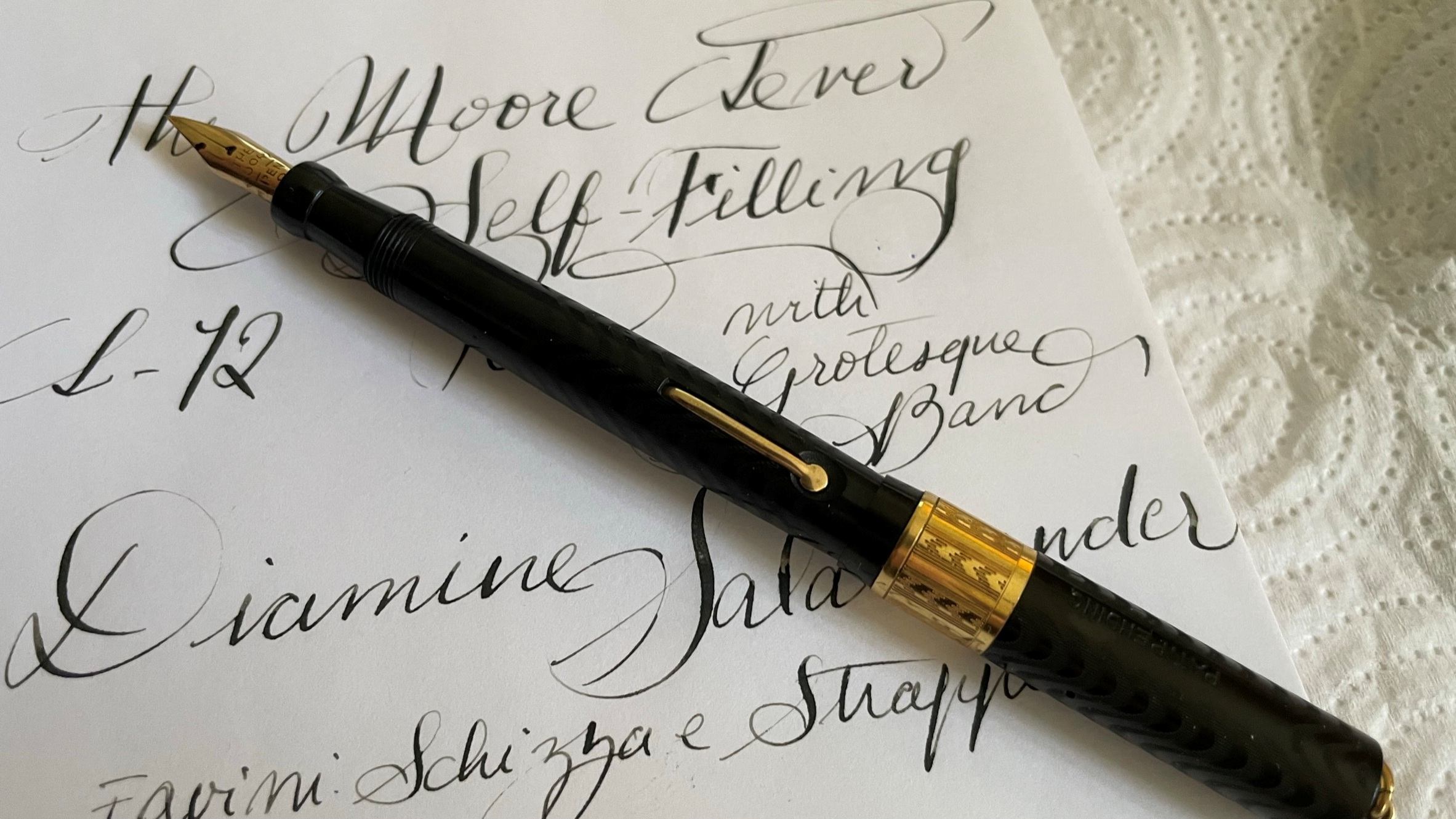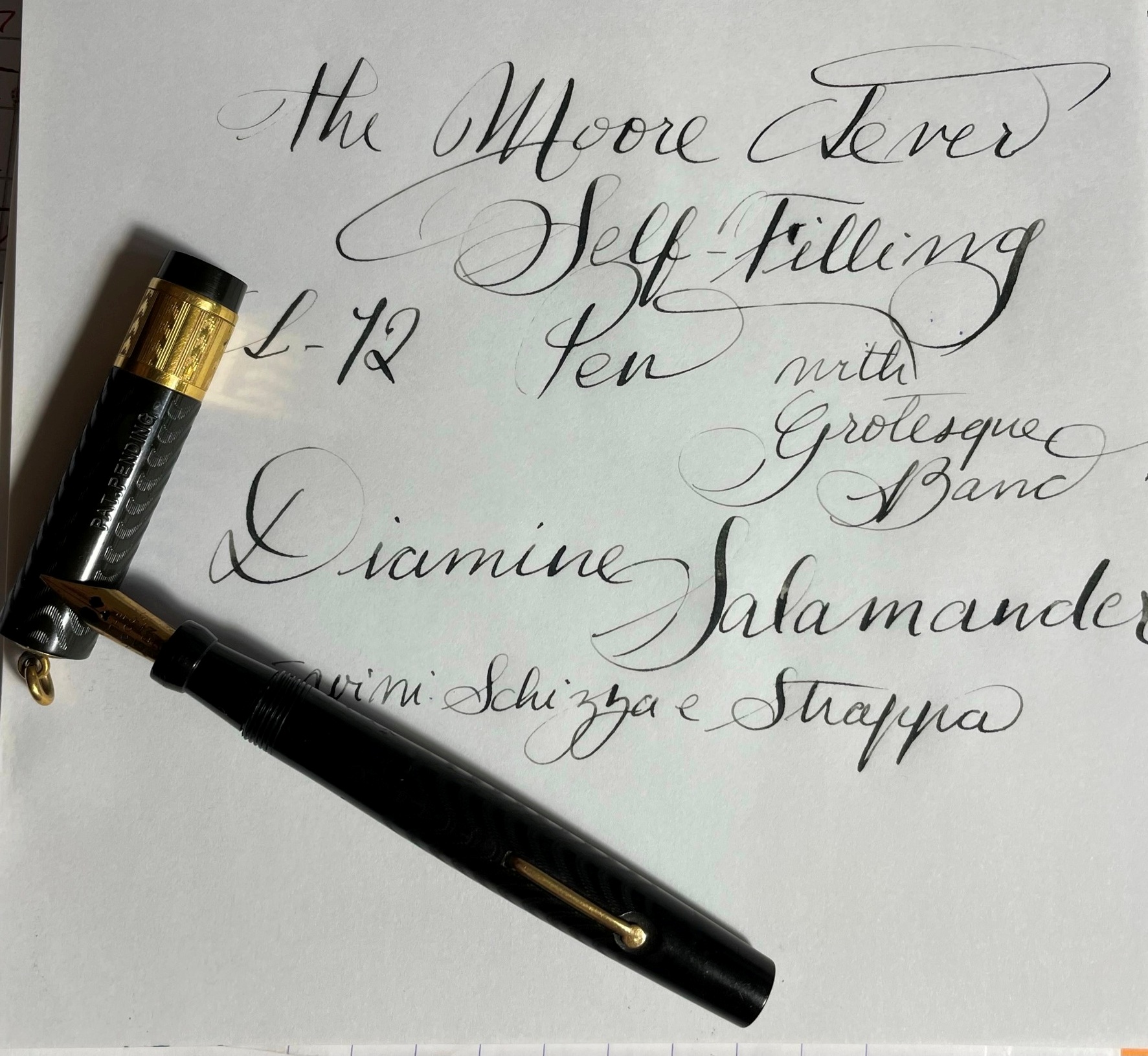 Ma c’è anche la MIA storia con questa penna : tre o quattro anni fa, sentendo la levetta un po’ strana, mando la Moore dal riparatore per cambiare il sacchetto. Pessima idea !!!!