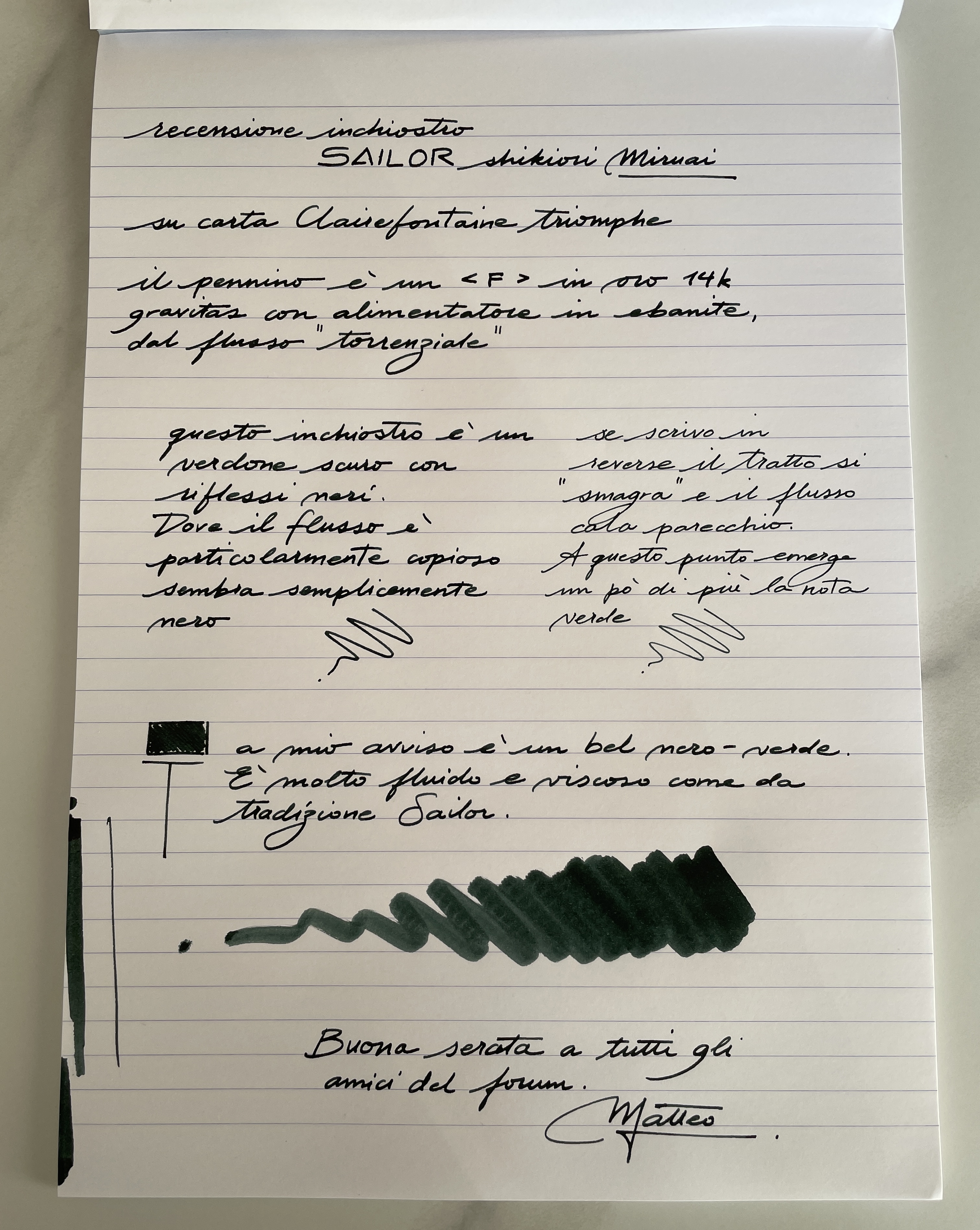 Sarà una mia fissazione, ma è difficile trovare un inchiostro Sailor che non sia bello e questo non fa eccezione . Grazie Matteo per la presentazione.