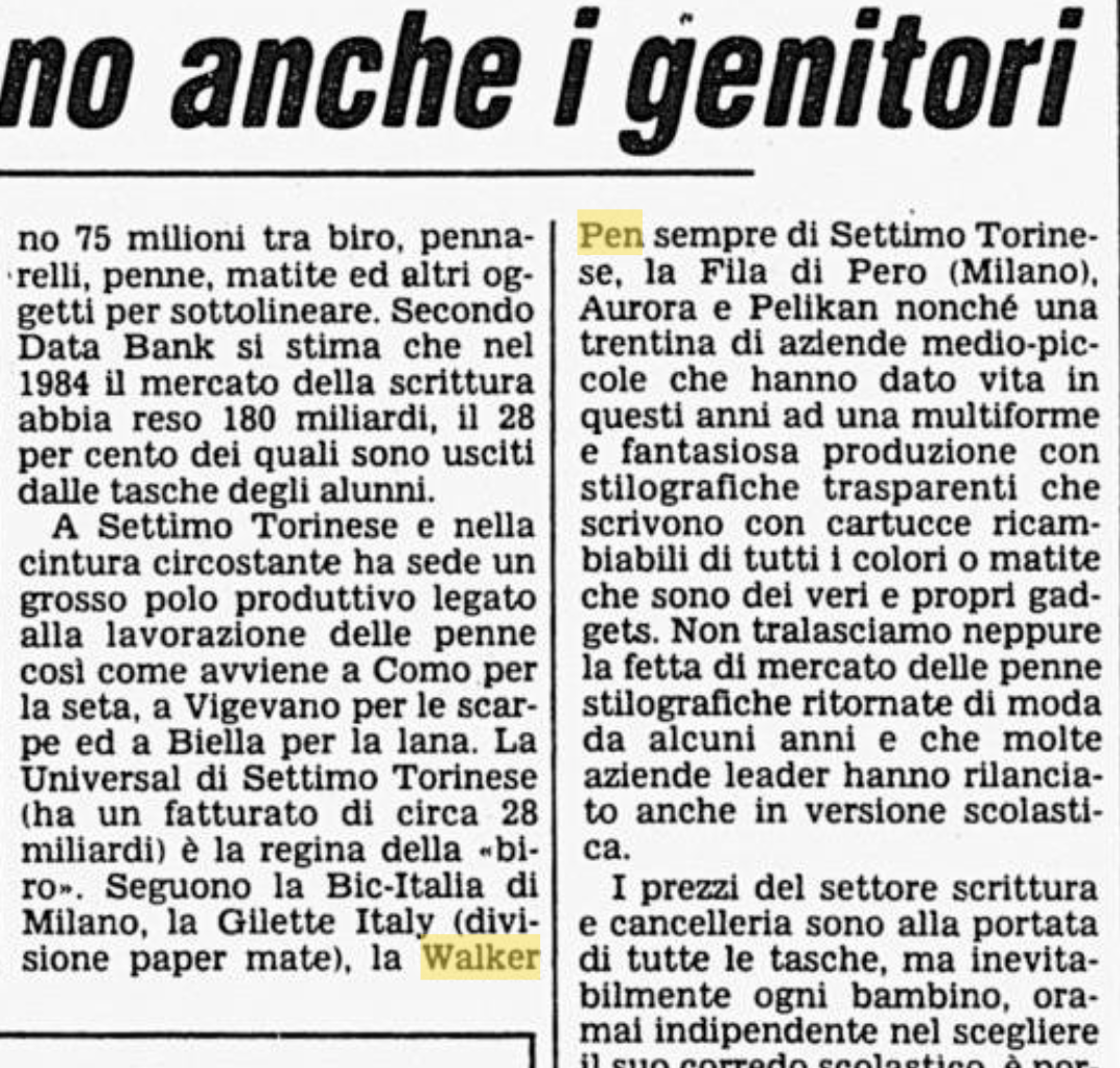 Per logiche ragioni di copyright non posso allegare l'articolo - che è una intera pagina sul settore della cartoleria che ho trovato nell'archivio storico del Corriere (1 Settembre 1985, pagina 7) - ma con l'abbonamento online del Corriere è facilmente rintracciabile.