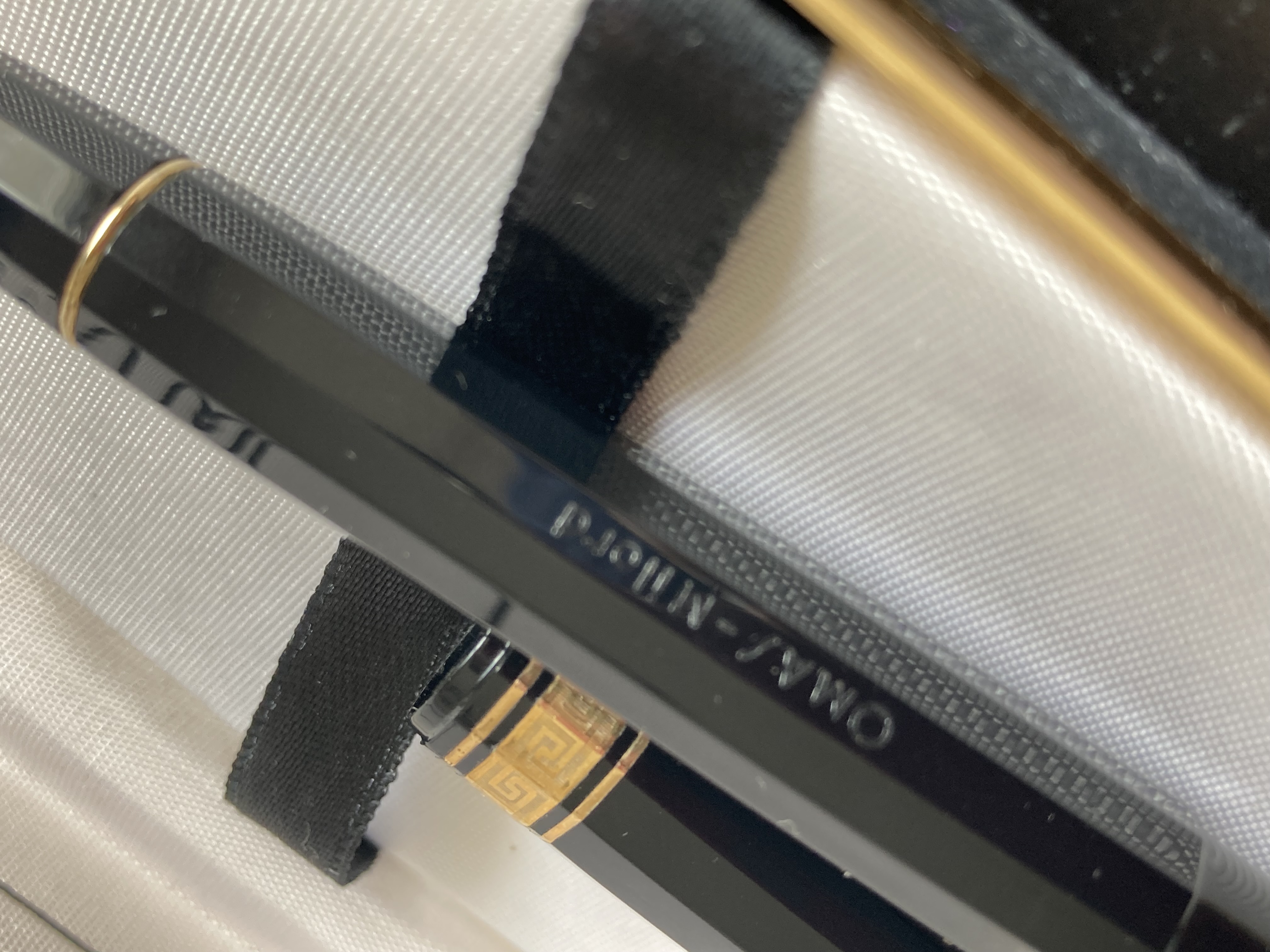 La trovo comoda in mano per la “texture” e bella da vedere. Lucida e coi dettagli dorati non scoloriti(è oro? Placcatura?). Sul pennino c’è un numero: 585… che vuol dire?