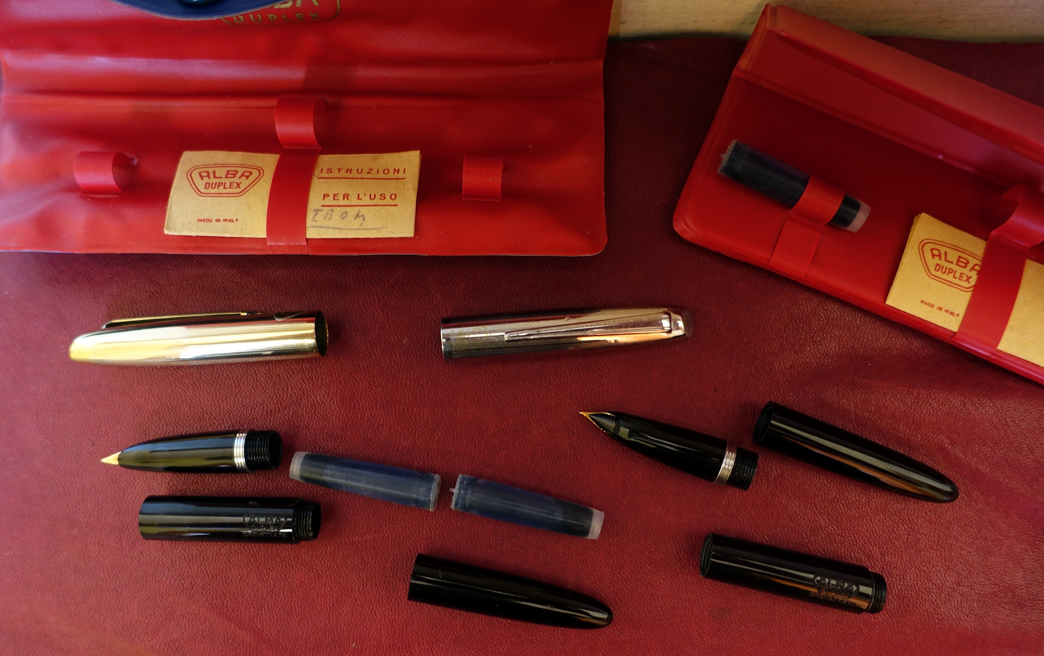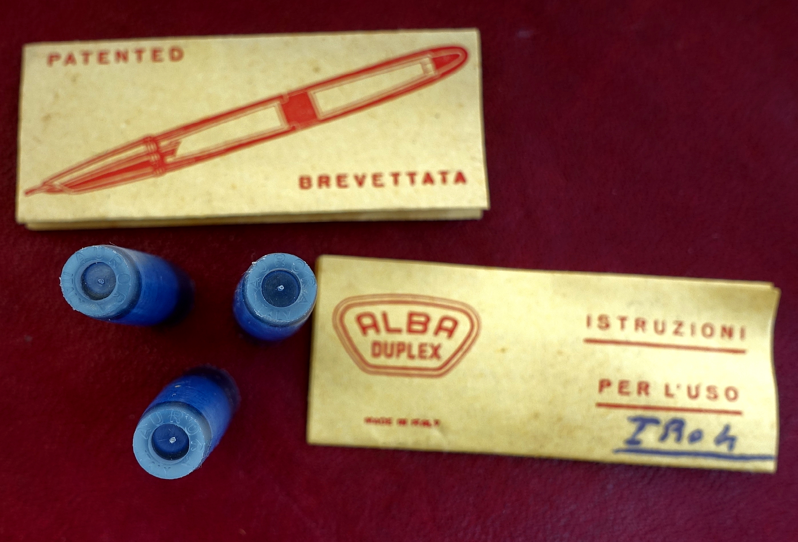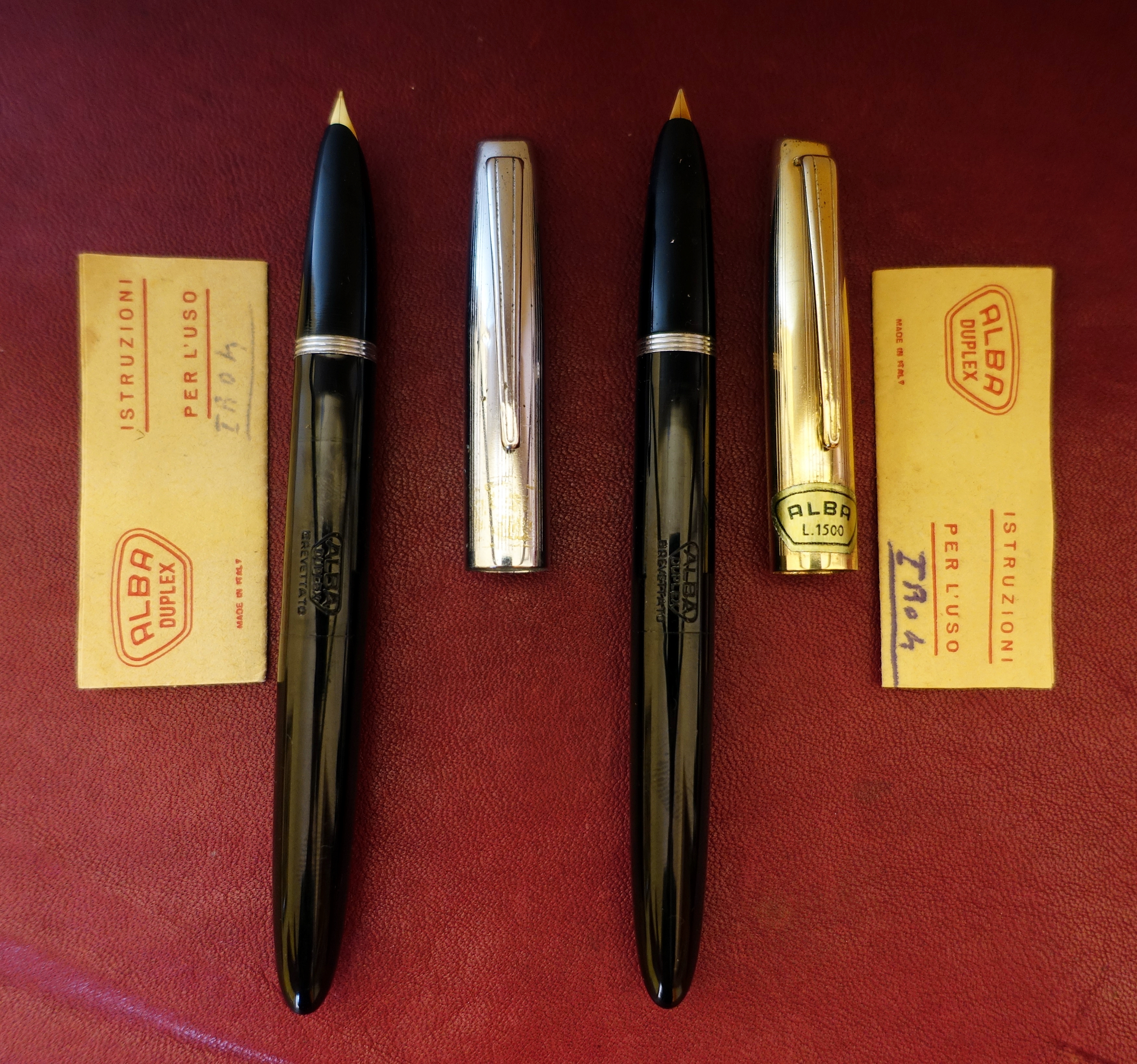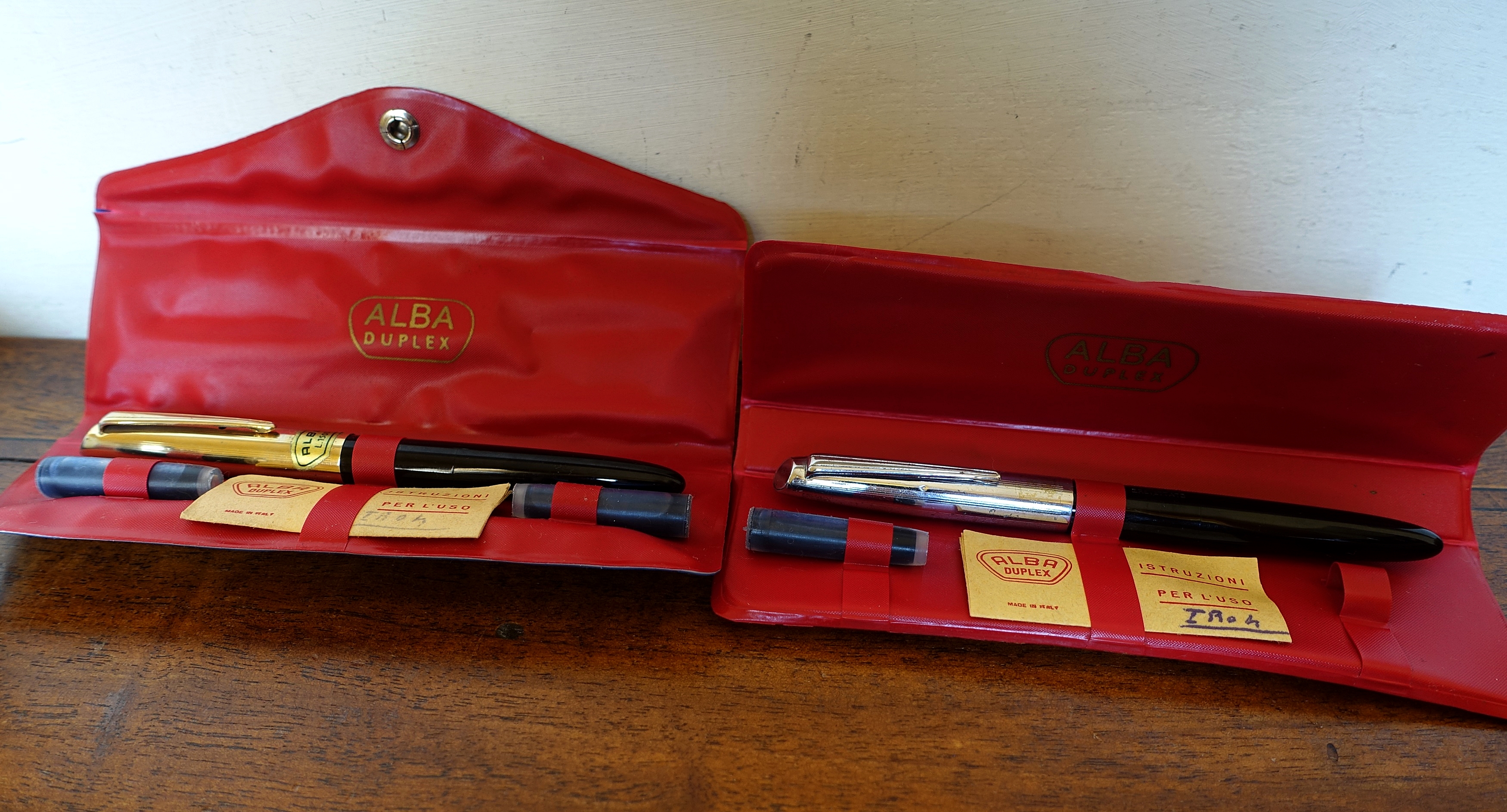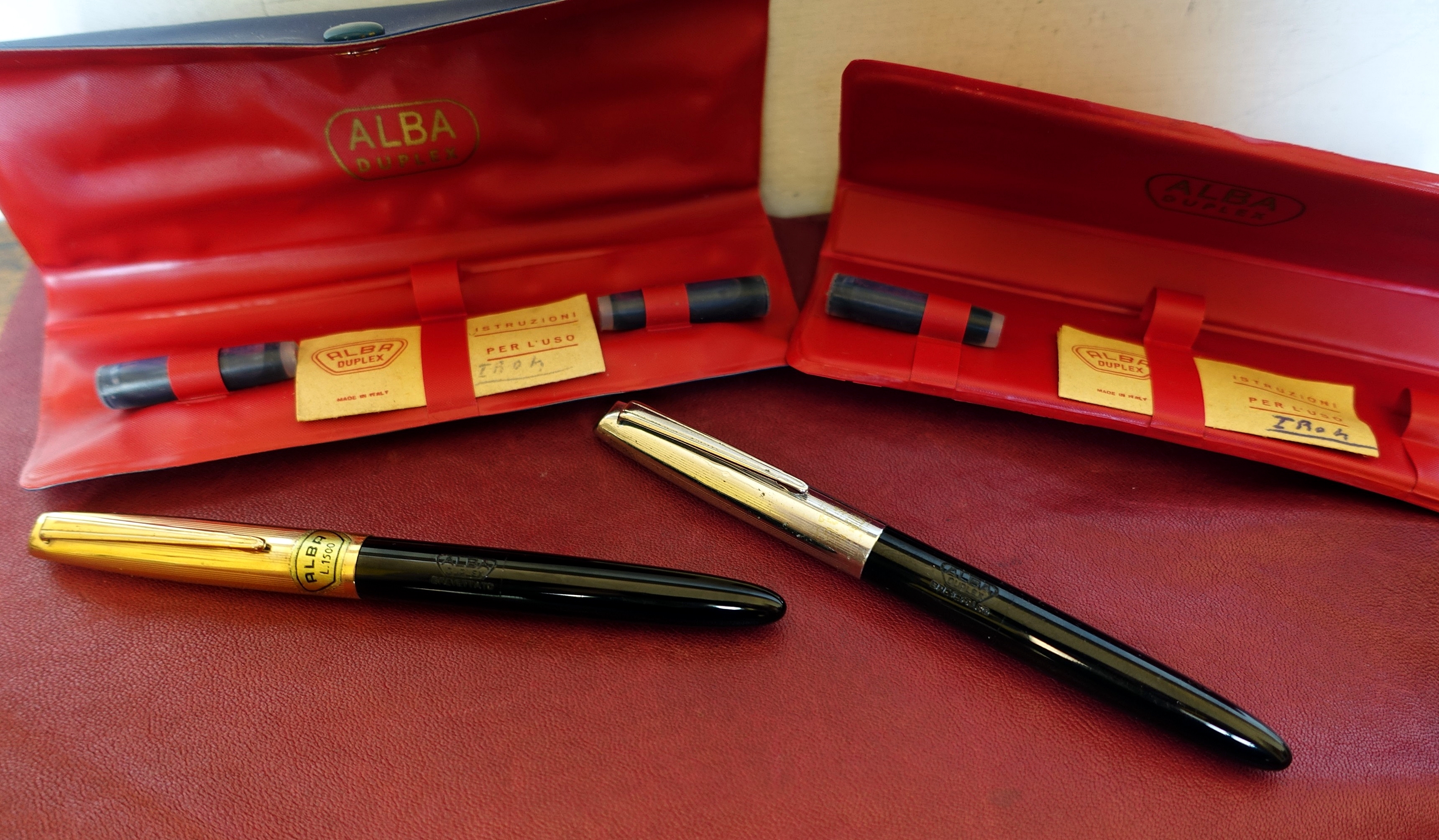 Ho trovato al mercatino queste due Alba Duplex, guardando il nostro Wiki ho visto che non ci sono molte notizie riguardo questo marchio. Di certo, come viene riportato, chi ha fondato il marchio proveniva certamente da Aurora, chi ha messo in commercio per primo il sitema a due cartucce, molto probabilmente non lo sapremo mai, o meglio non è certo.