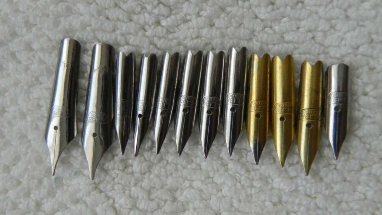 Sicuramente sono due pennini diversi: quello a sinistra è uno di quelli a punte ripiegate, quello a destra è di qualità superiore, anche a me sembra in oro.