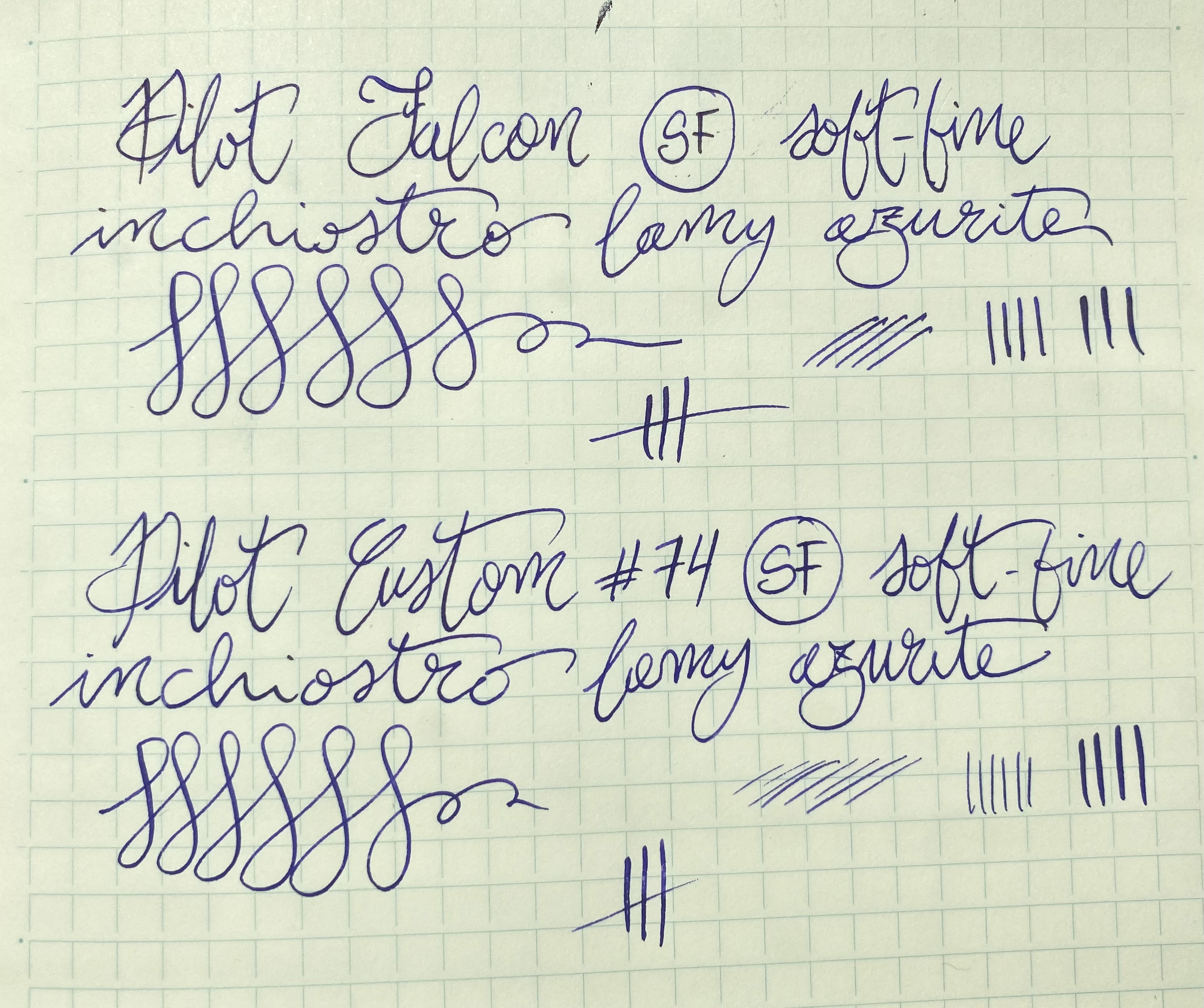 Per una scrittura allungata in alto la falcon si comporterà meglio, mentre per una grafia come la tua trovo la custom decisamente migliore