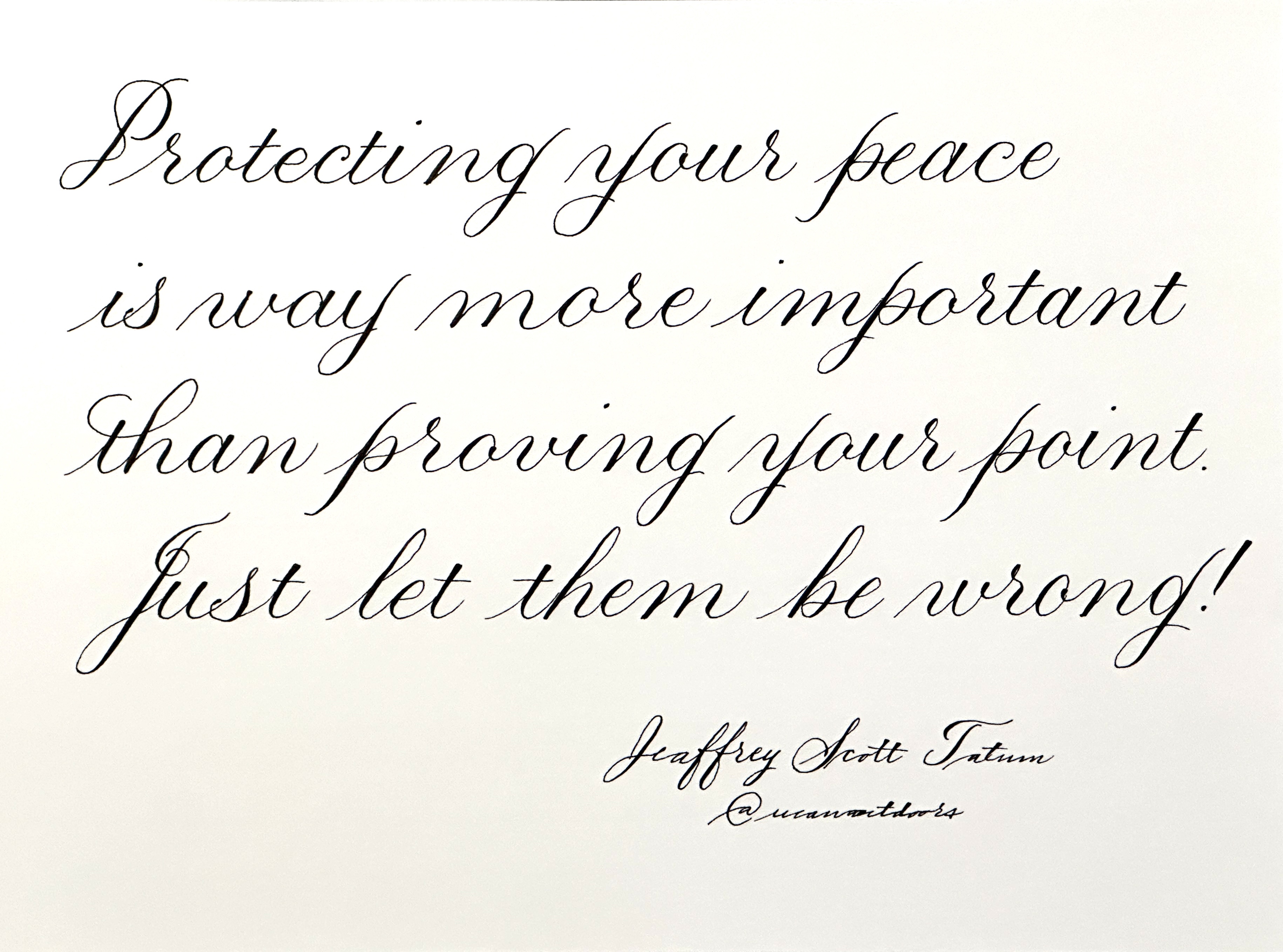Doveva essere solo un esercizio/prova di impaginazione, quindi il foglio è un A4 fin troppo piccolo. Ho già visto anche io qualche imprecisione sull’inclinazione… sono 6 mesi di ruggine tra un impegno e lo Spencerian.