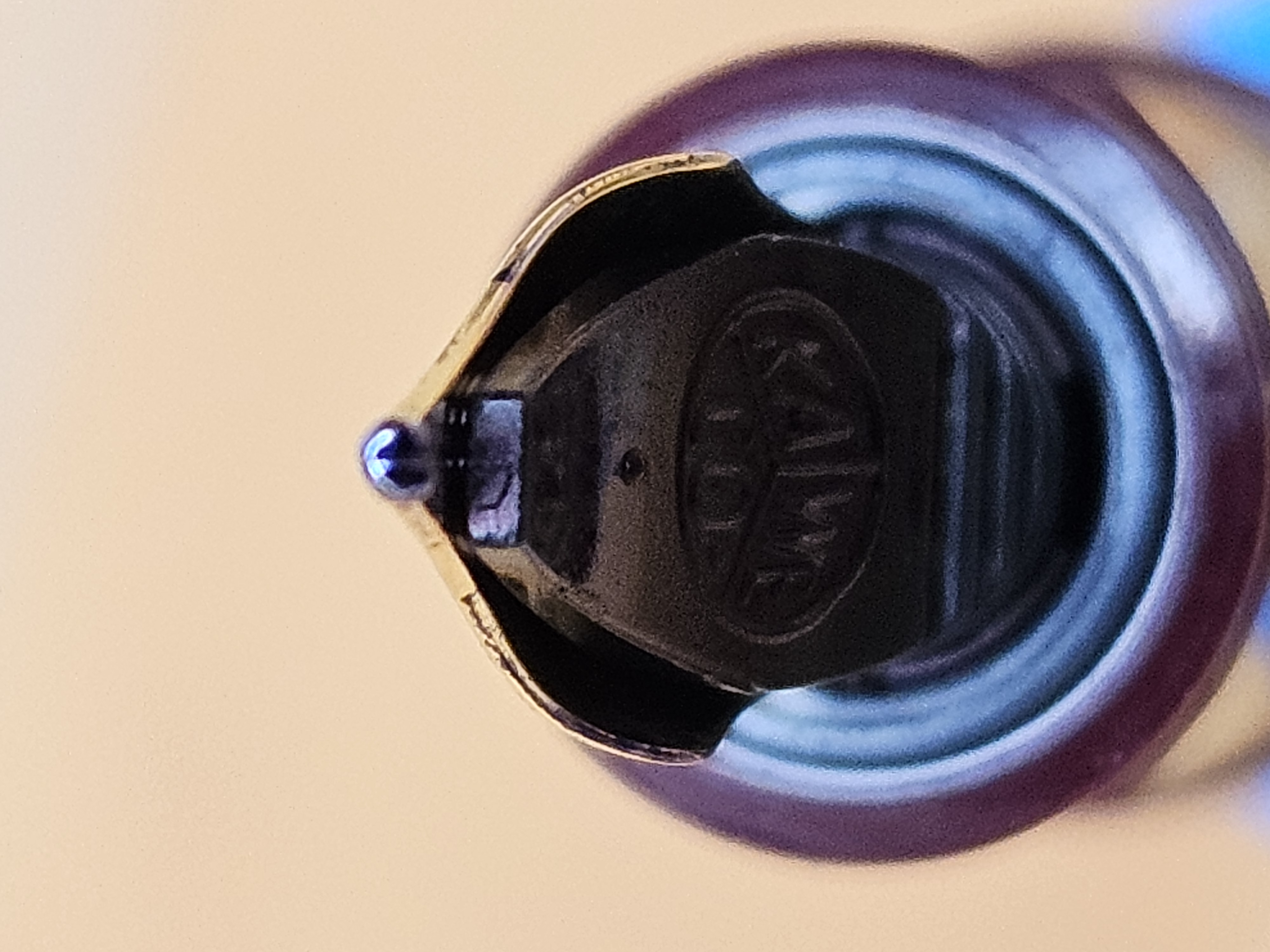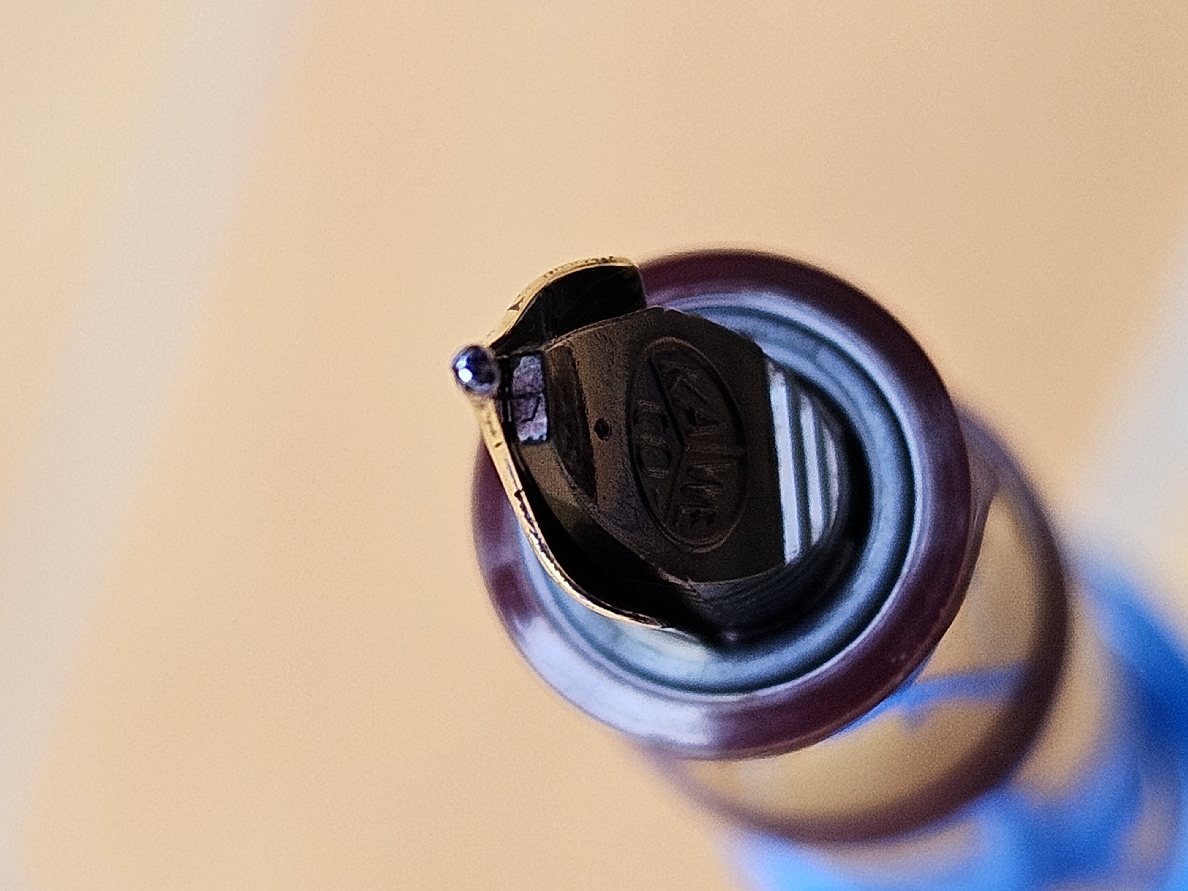 La penna era equipaggiata con una cartuccia Kaweco, ho letto sul forum della compatibilità con le cartucce Pelican, quindi ho inserito una cartuccia Pelican Blu 4001, sempre seguendo i consigli del forum per provare la penna con un inchiostro abbastanza universale.