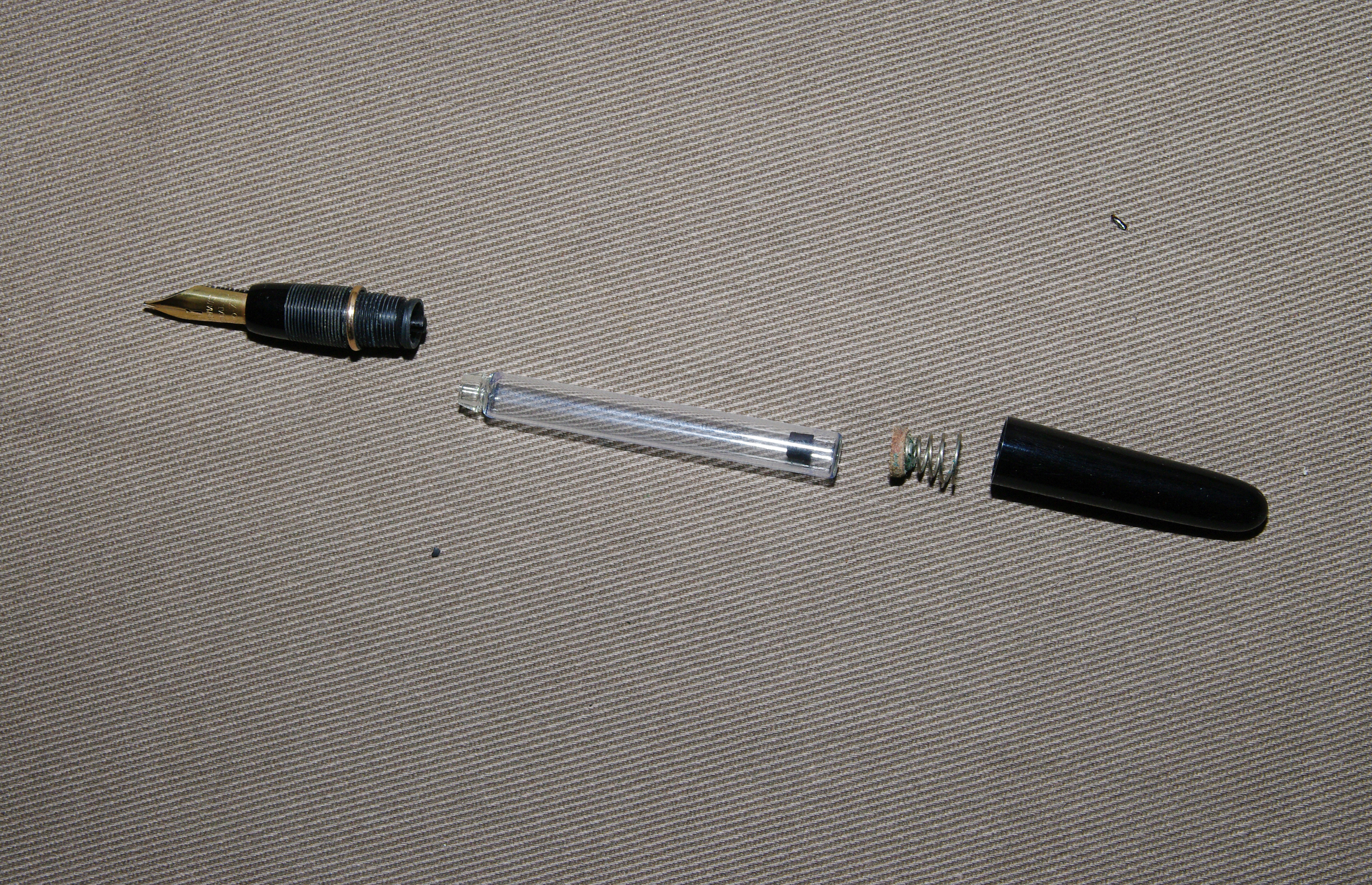 Nell'ultima foto si vede la guarnizione in gomma che seve alla tenuta stagna dell'imboccatura della caruccia di vetro per evitare fuoruscite d'inchiostro