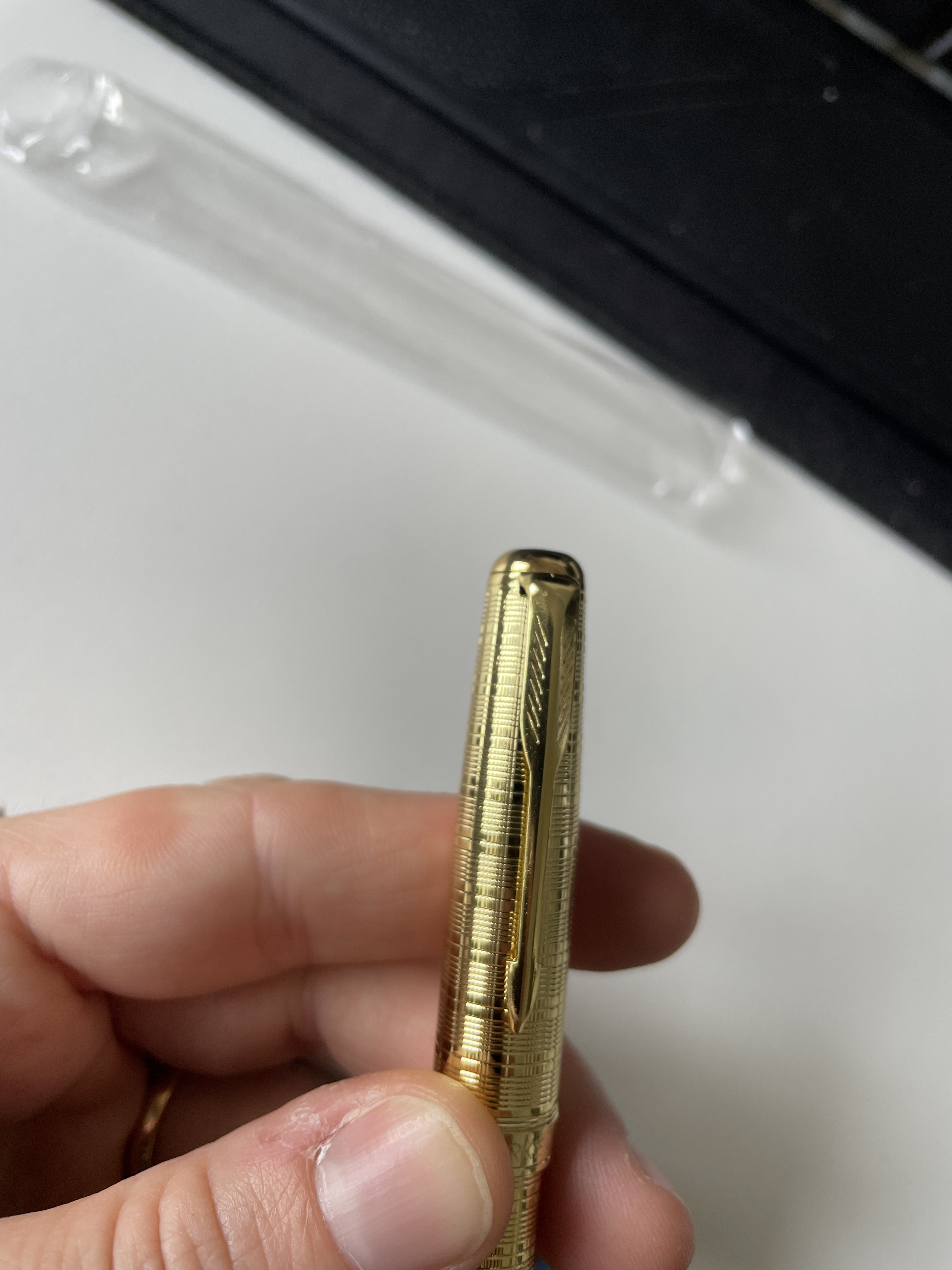 l'ultimo acquisto riguarda una PArker Sonnet trovata sul noto sito d'aste. Mia valutazione, credo sia un modello del 2010... appena arrivata la penna si presenta in un involucro di plastica che ricorda molto le penne cinesi (intese proprio economiche e di scarsa qualità) che trovi nei mercatini, sezione bigiotteria.