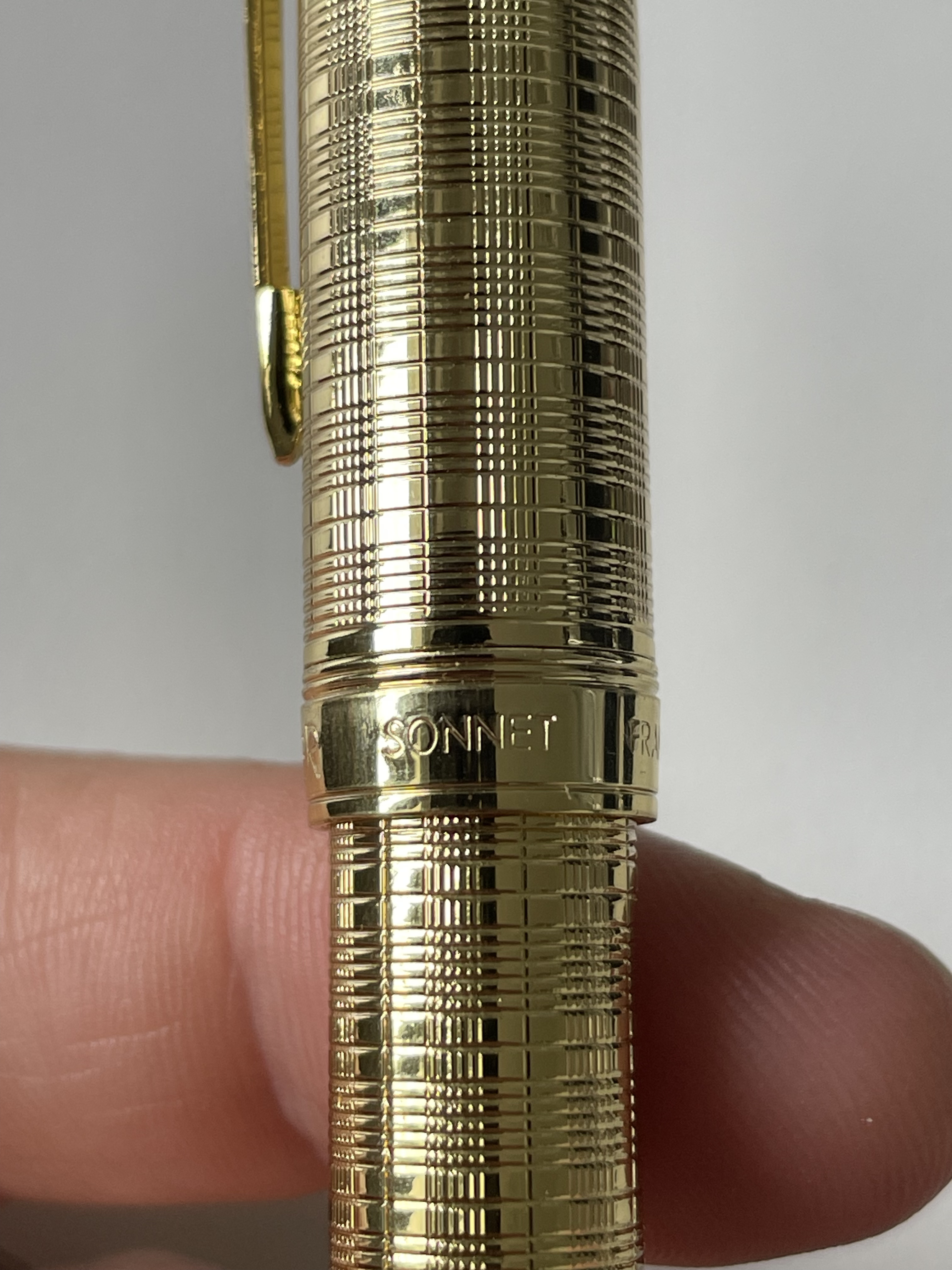 Non so che dirti, anche perchè mi pare che la Sonnet originale sia costruita in Cina. posso sbagliare ma quel disegno sul pennino mi sembra lo portino i pennini in acciaio placcato.