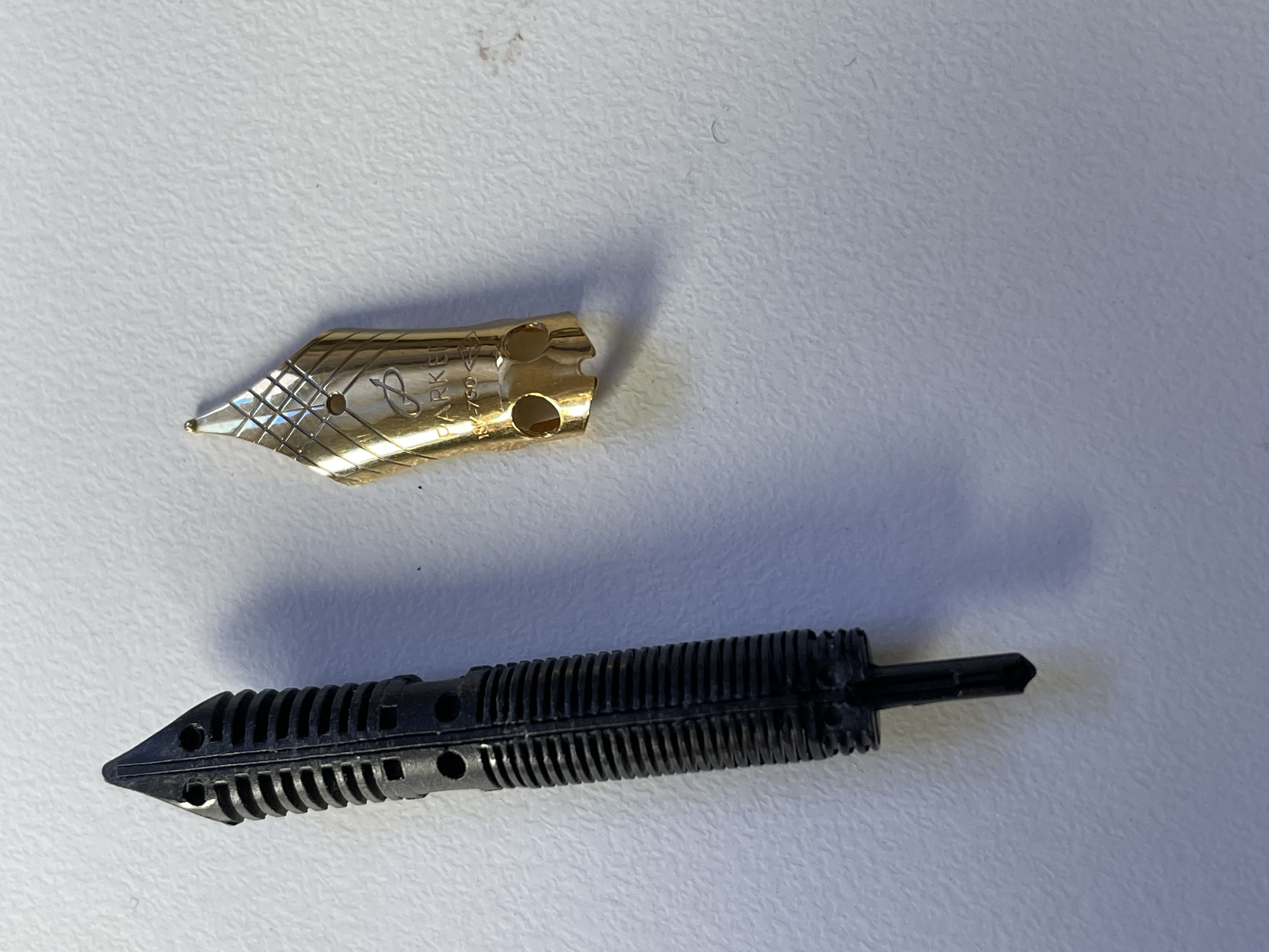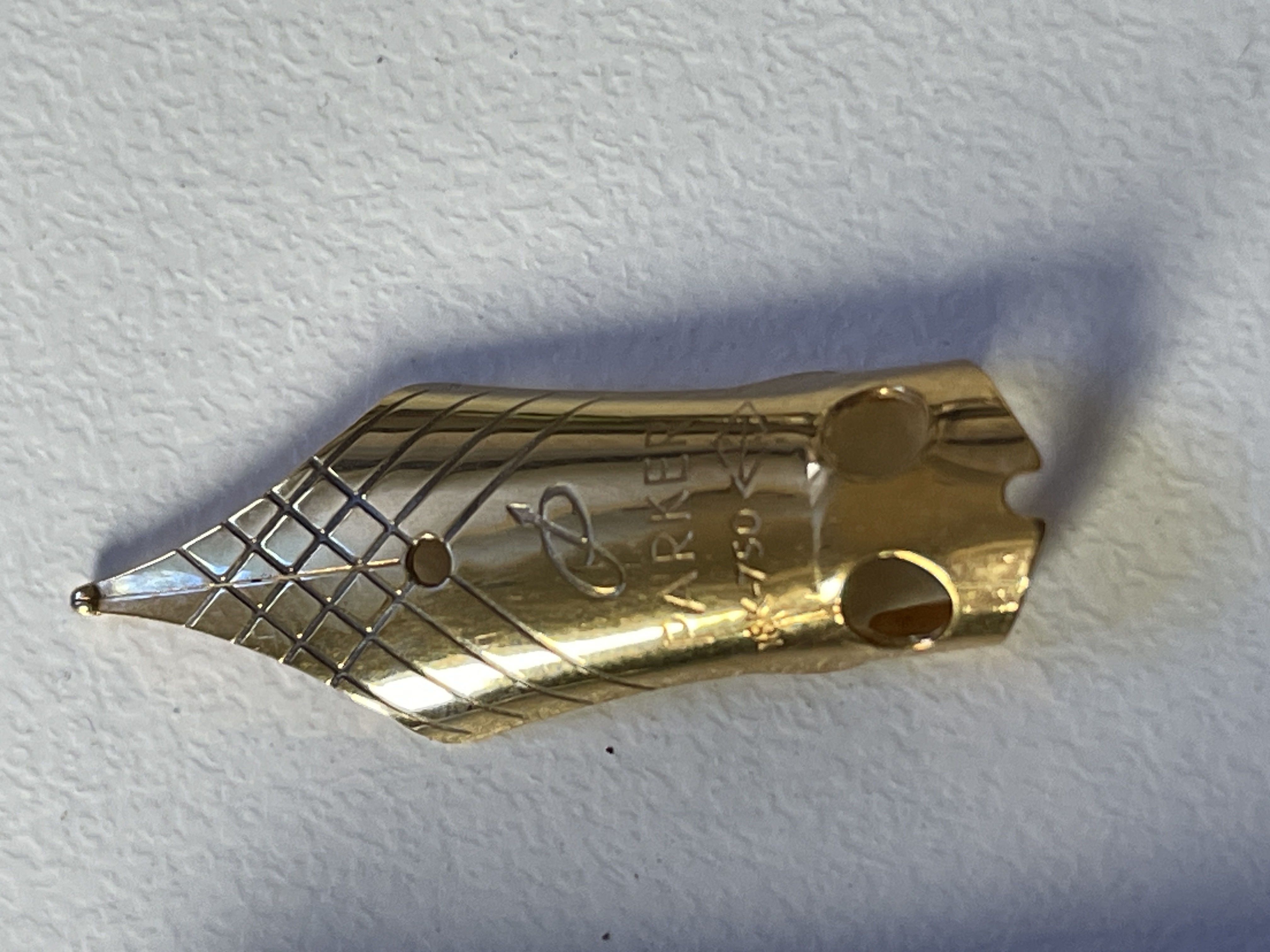 Una cosa che mi fa sempre sospettare è l’iridio di colore oro su un pennino dichiarato oro 18K. Se il pennino è d’oro non c’è alcun motivo di placcarlo (a meno di non volerlo rodiare per dargli una differente colorazione) e quindi l’iridio deve rimanere del colore originale.