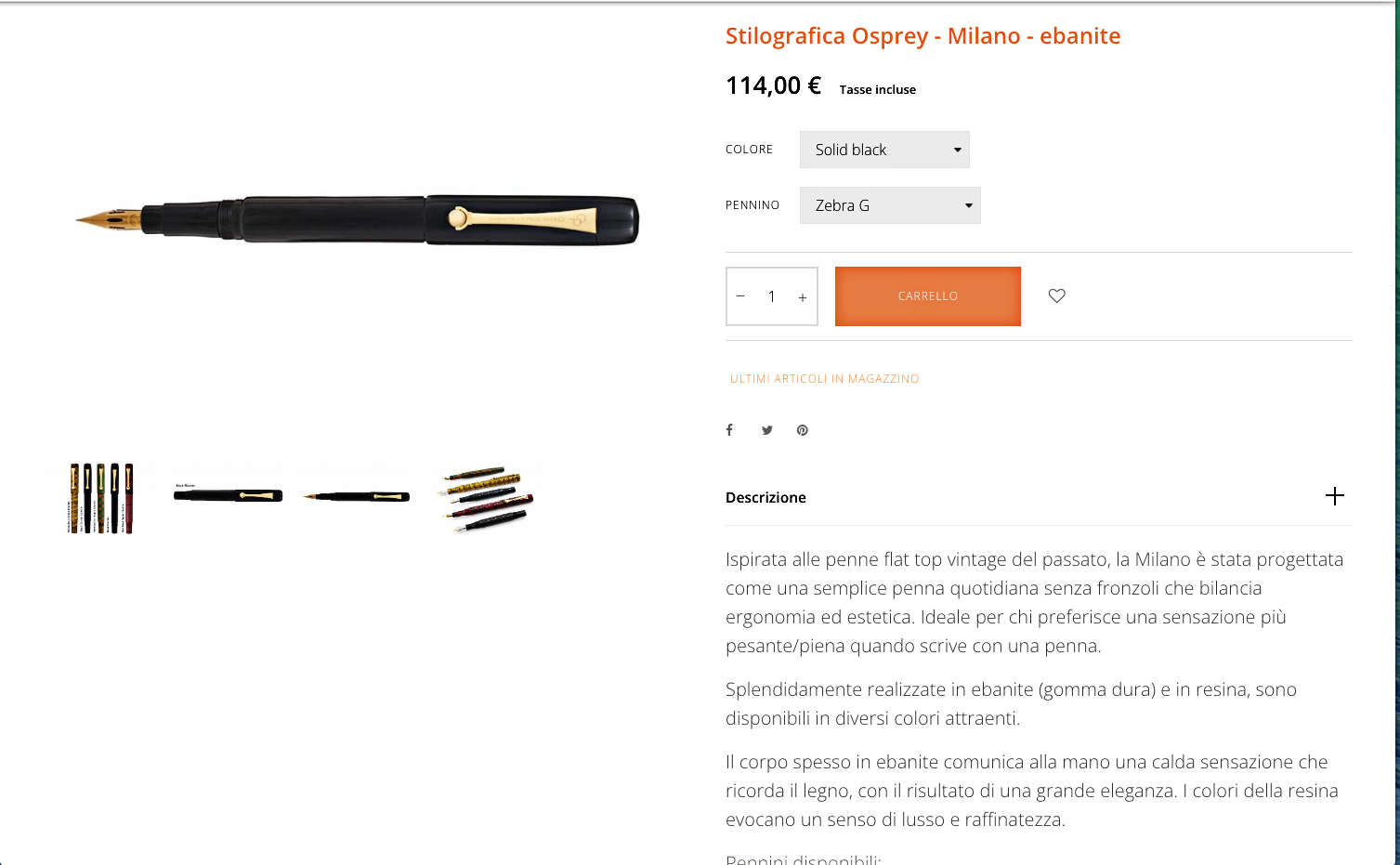 Come pubblicato nel meßaggio del 6 luglio u.s.,teoricamente, mi sarebbe piaciuto un italico con un fine di m/m 0,2, un piatto a riposo di m/m 0,8 e che fosse anche fleßibile per poter modulare la scrittura attraverso la preßione. Come risposto anche a Sansenri ho contattato diverse aziende ma...niente. Quando ho comprato la Osprey col pennino finto fleßibile , ho visto che esisteva anche con lo Zebra G in titanio e alimentatore in ebanite.