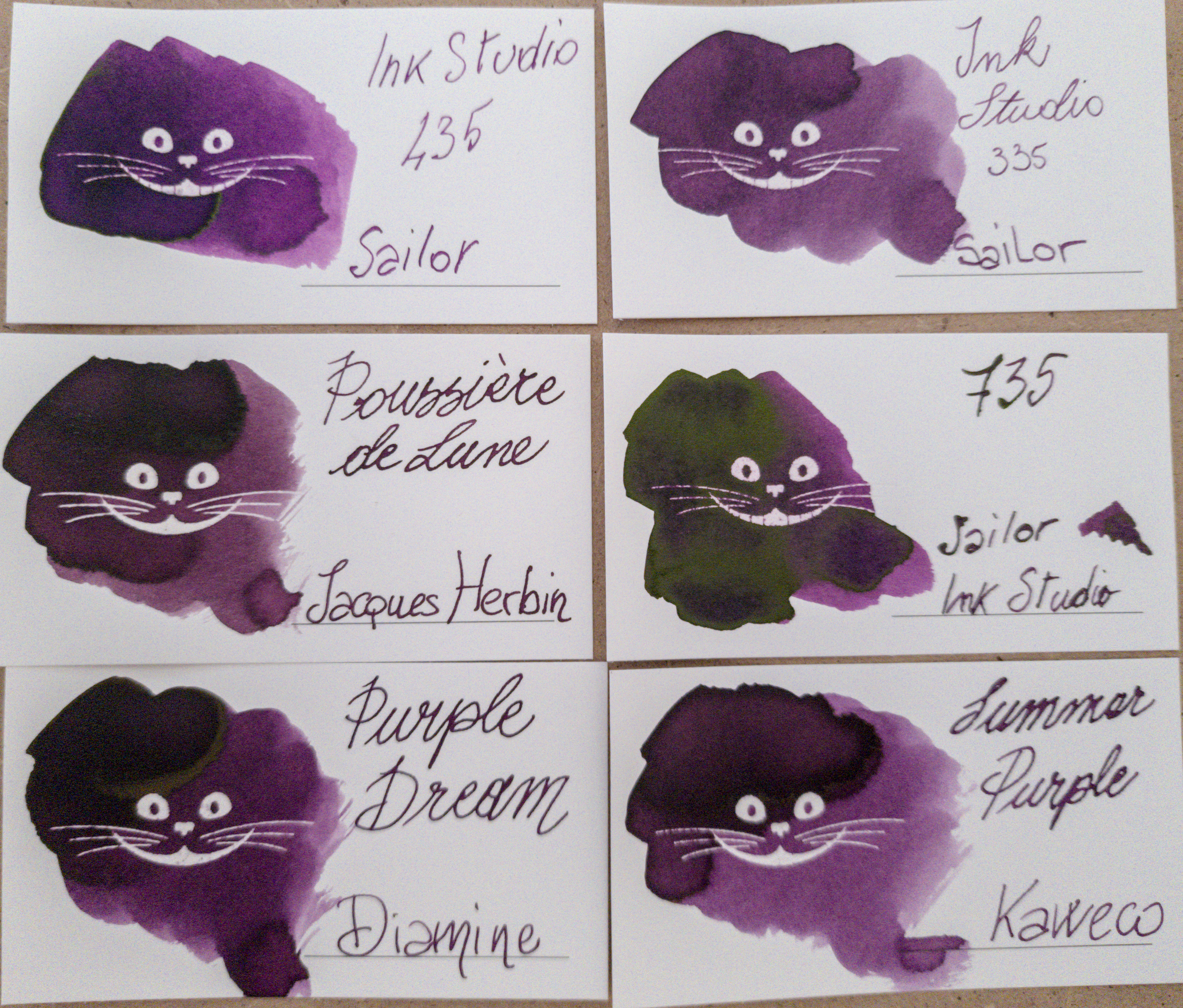 Tra i viola in mio possesso, Purple Dream assomiglia più di tutti a Sailor Ink Studio 735. La differenza sostanziale è che il 735 non è desaturato. E' scuro ma manca di quel sottotono grigio che ha Purple Dream.