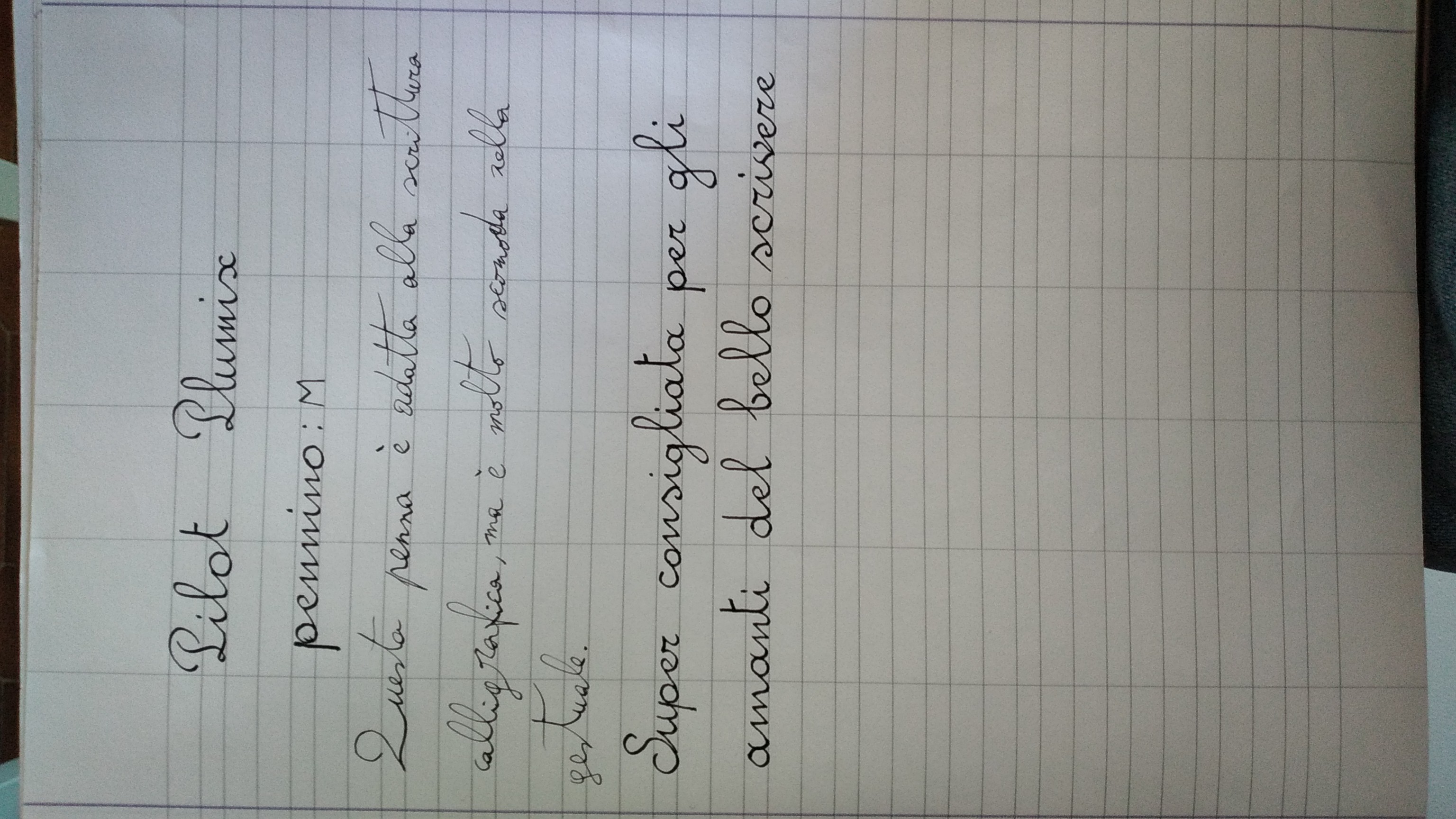 Oggi scrivo una recensione sulla Pilot Plumix. Ho acquistato questa penna per addentrarmi nel mondo della calligrafia, che a me piace chiamare il bello scrivere, come spesso si trova scritto nei vecchi manuali. Vi lascio le mie considerazioni.