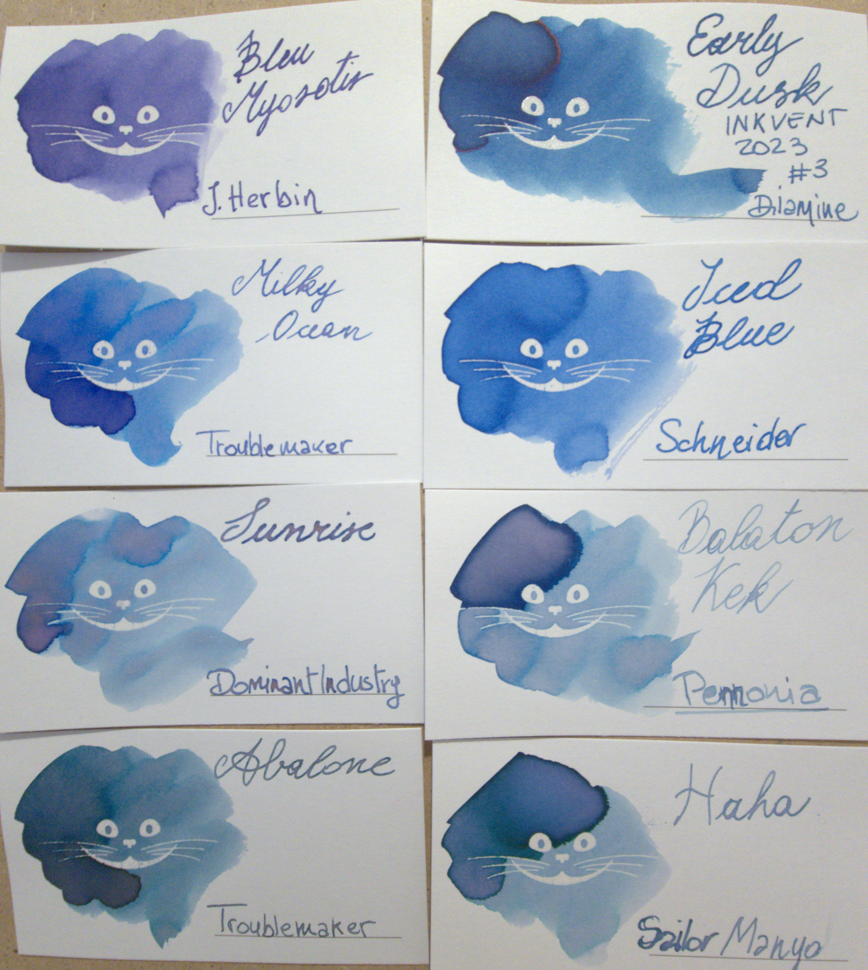 Sicuramente, questo non è un colore che disdegno, come si vede dalla quantità di inchiostri in tonalità simili che possiedo. Amo particolarmente il blu chiaro, in particolare se tendente al neutro o al caldo. Dei vari azzurri che ho, Balaton Kék e Sunrise di Dominant Industry sono senza dubbio quelli che preferisco. Trovo che Sunrise abbia migliore chromashading, motivo che me lo fa preferire quel pizzico in più, rispetto a Balaton Kék, ma sono lì lì, sul podio entrambi, per me.