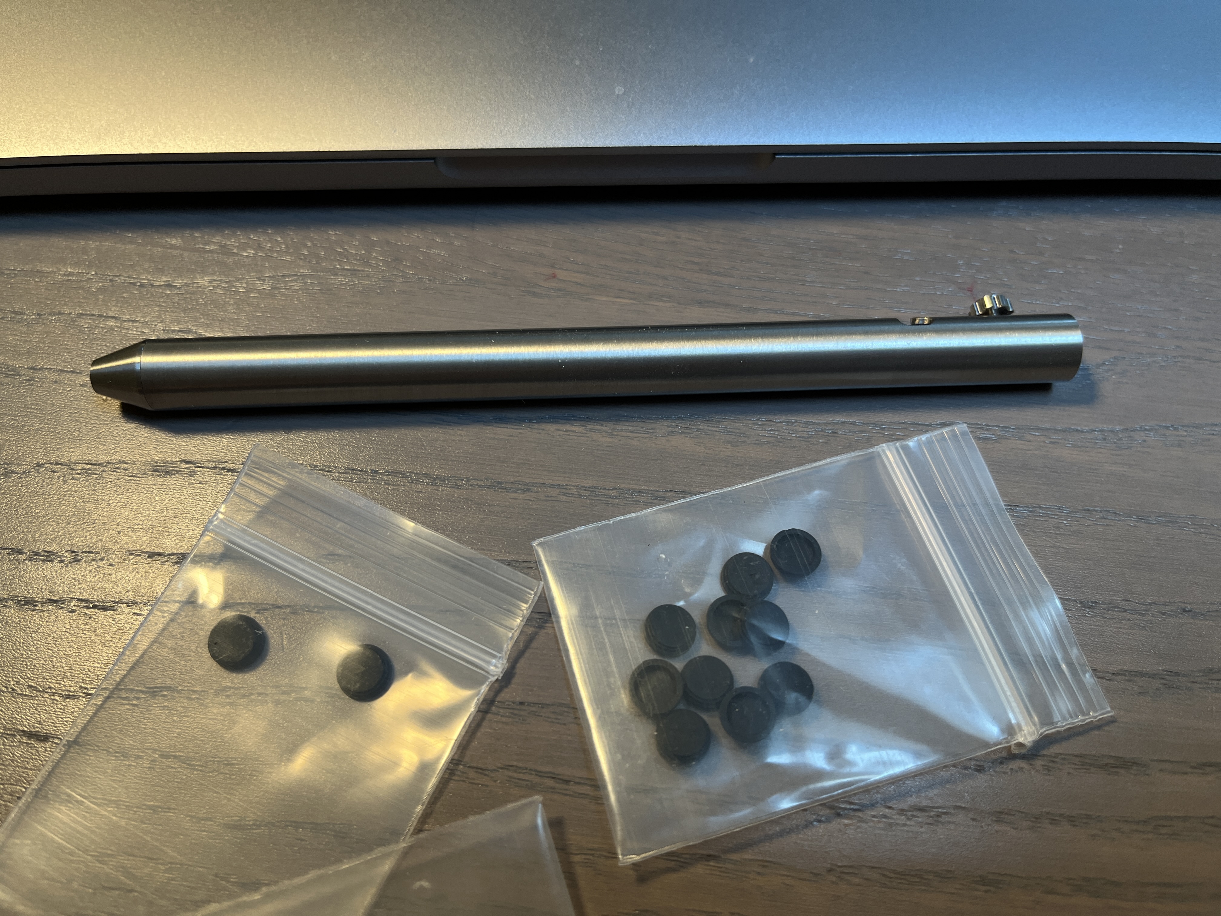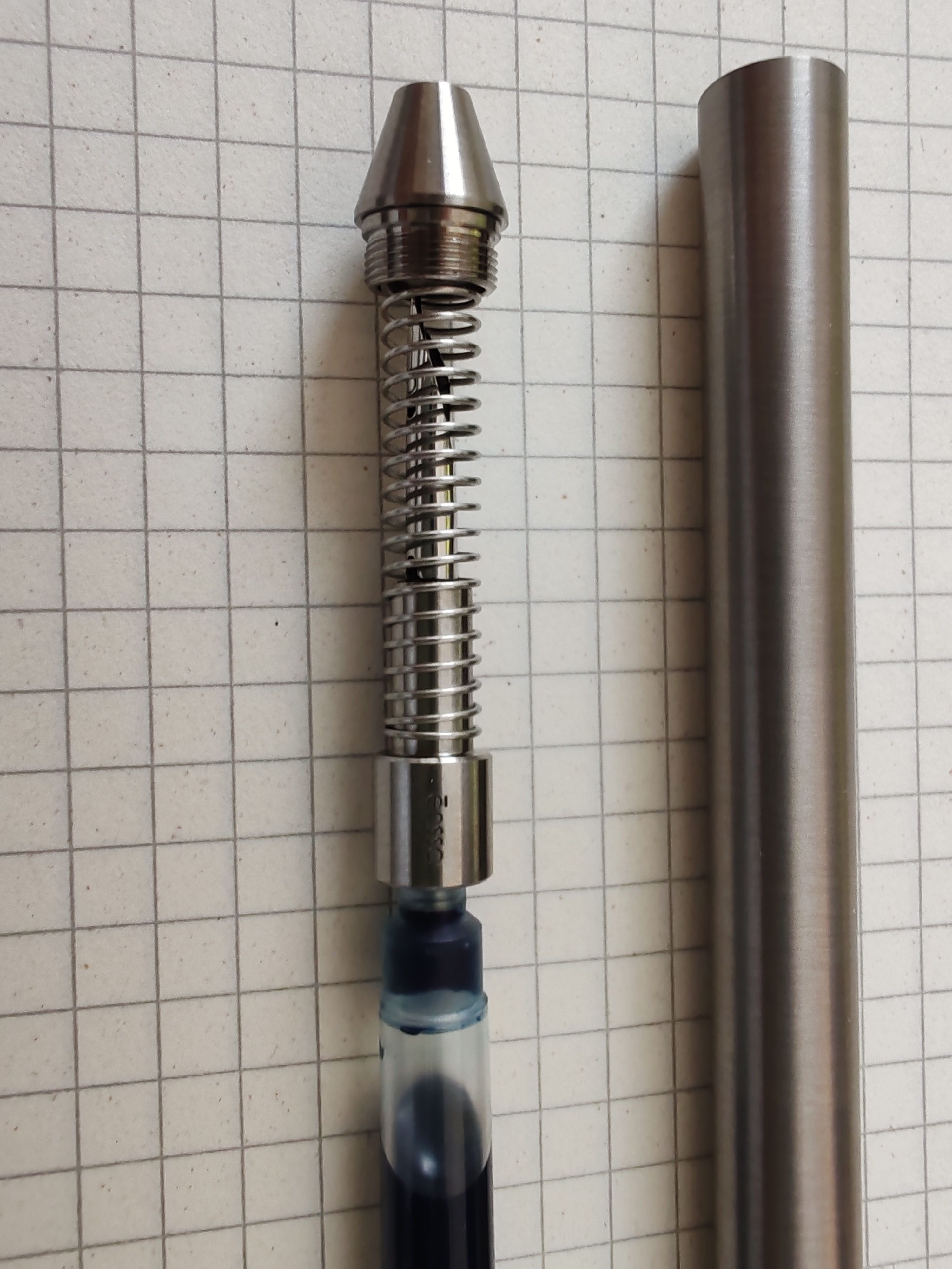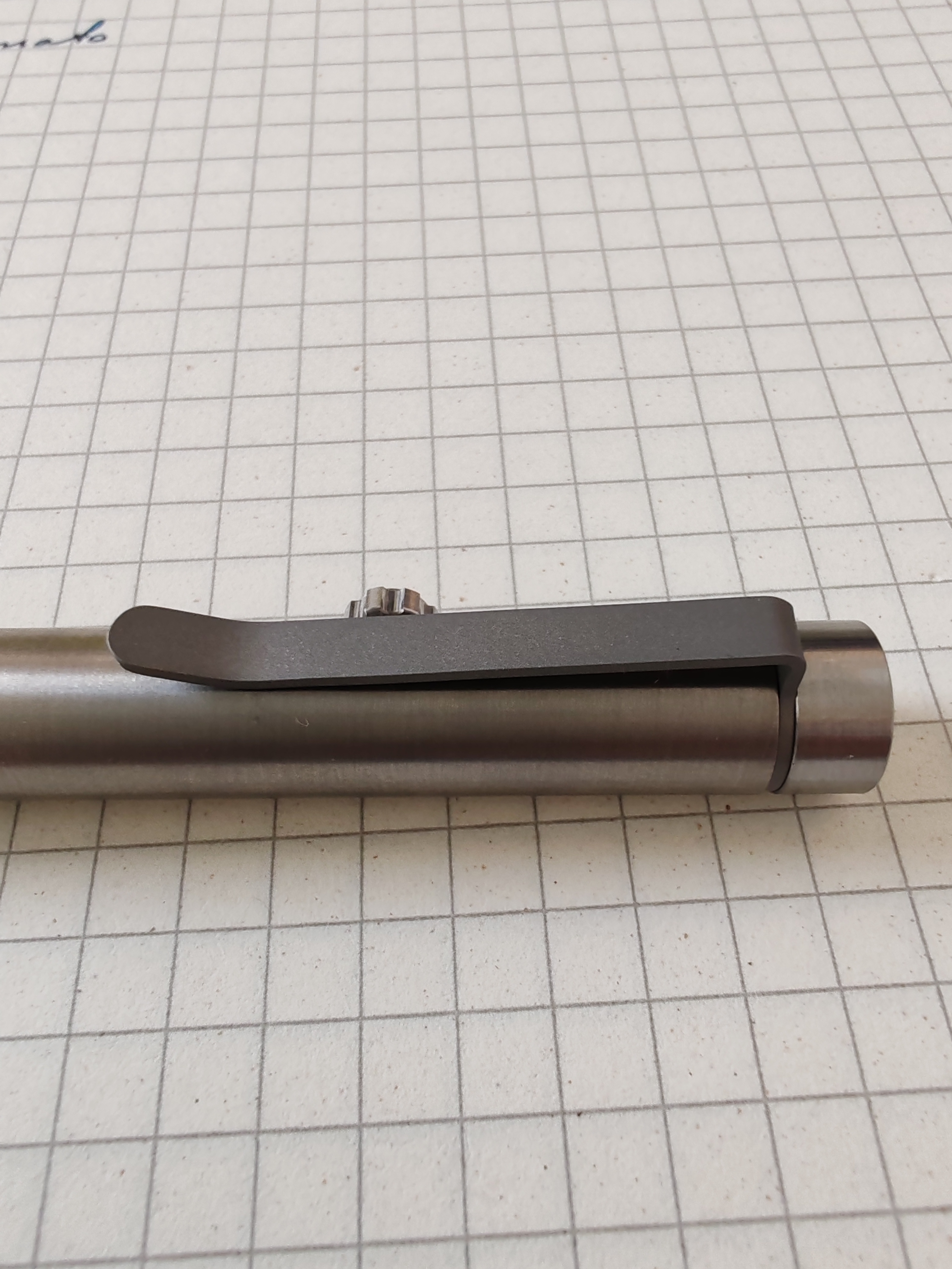 é una penna incredibilmente minimalista, interamente in titanio, con la clip come accessorio. Senza clip era troppo scarna che per i miei gusti...
