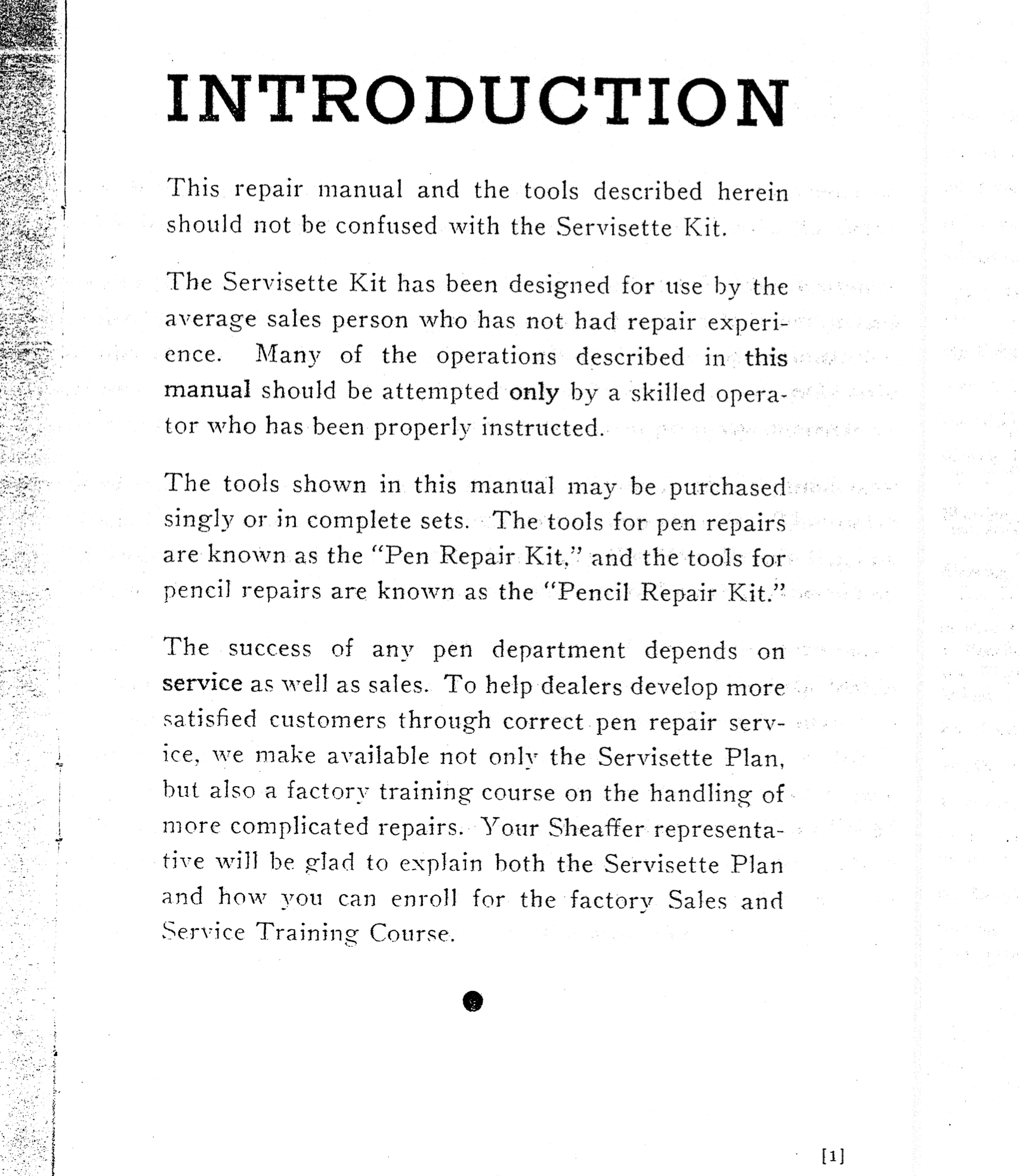 Nel manuale del 1976 sono presenti anche i molti strumenti ideati da Sheaffer per i riparatori, senza i quali su alcune penne è quasi impossibile intervenire dato che erano in grado di complicare anche semplici penne a cartuccia come la mia Lady.