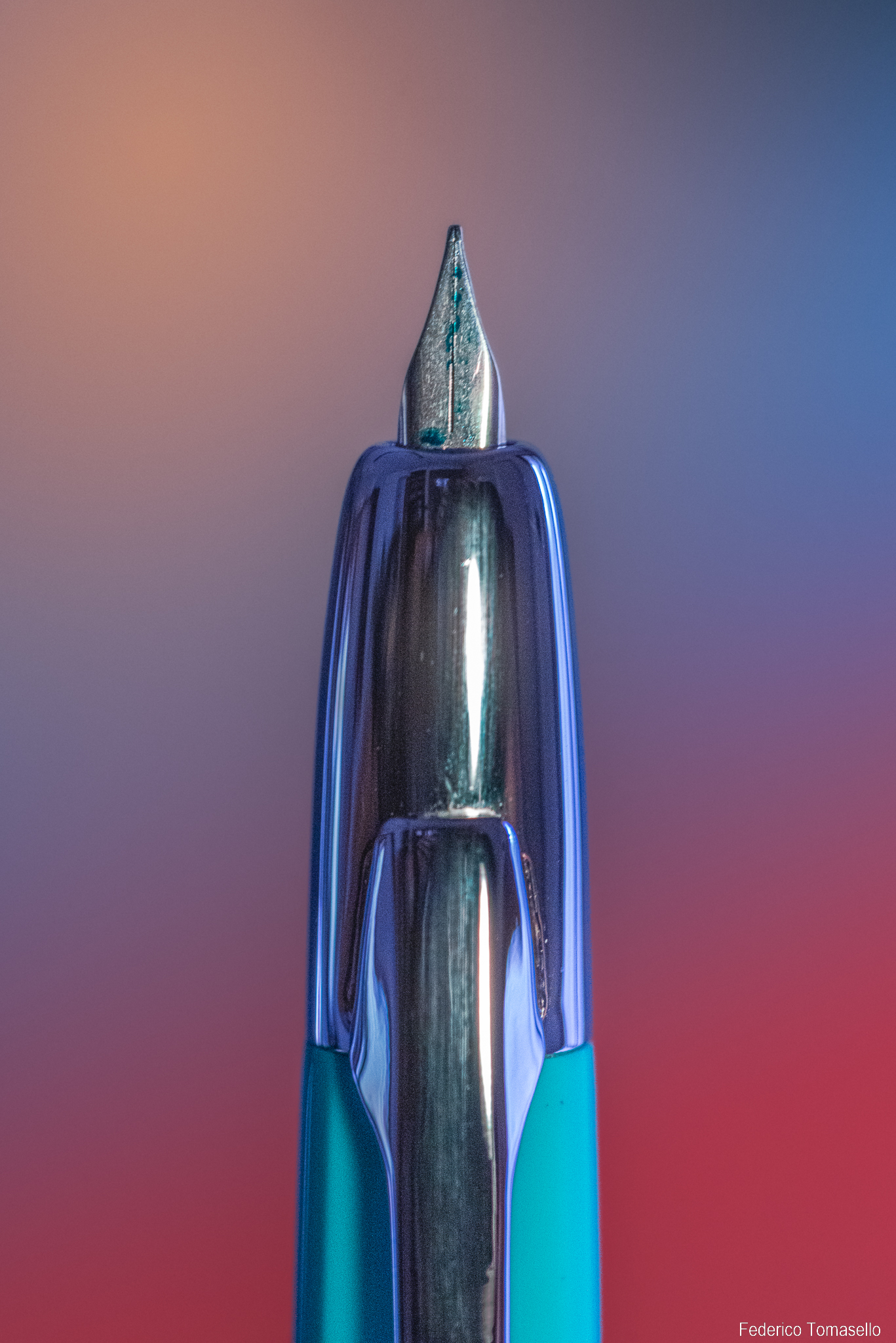 Ma gli aspetti positivi si fermano qui: per il resto sono impazzito nel montarla e rimontarla, lavarla e rilavarla, prima di riuscire ad allineare bene il pennino con l'alimentatore ed entrambi i pezzi nel loro "manicotto". Dopo infiniti tentativi sono riuscito ad evitare gocciolamenti, nonché perdite e salti di tratto e ad ottenere un flusso più controllato e utilizzabile.