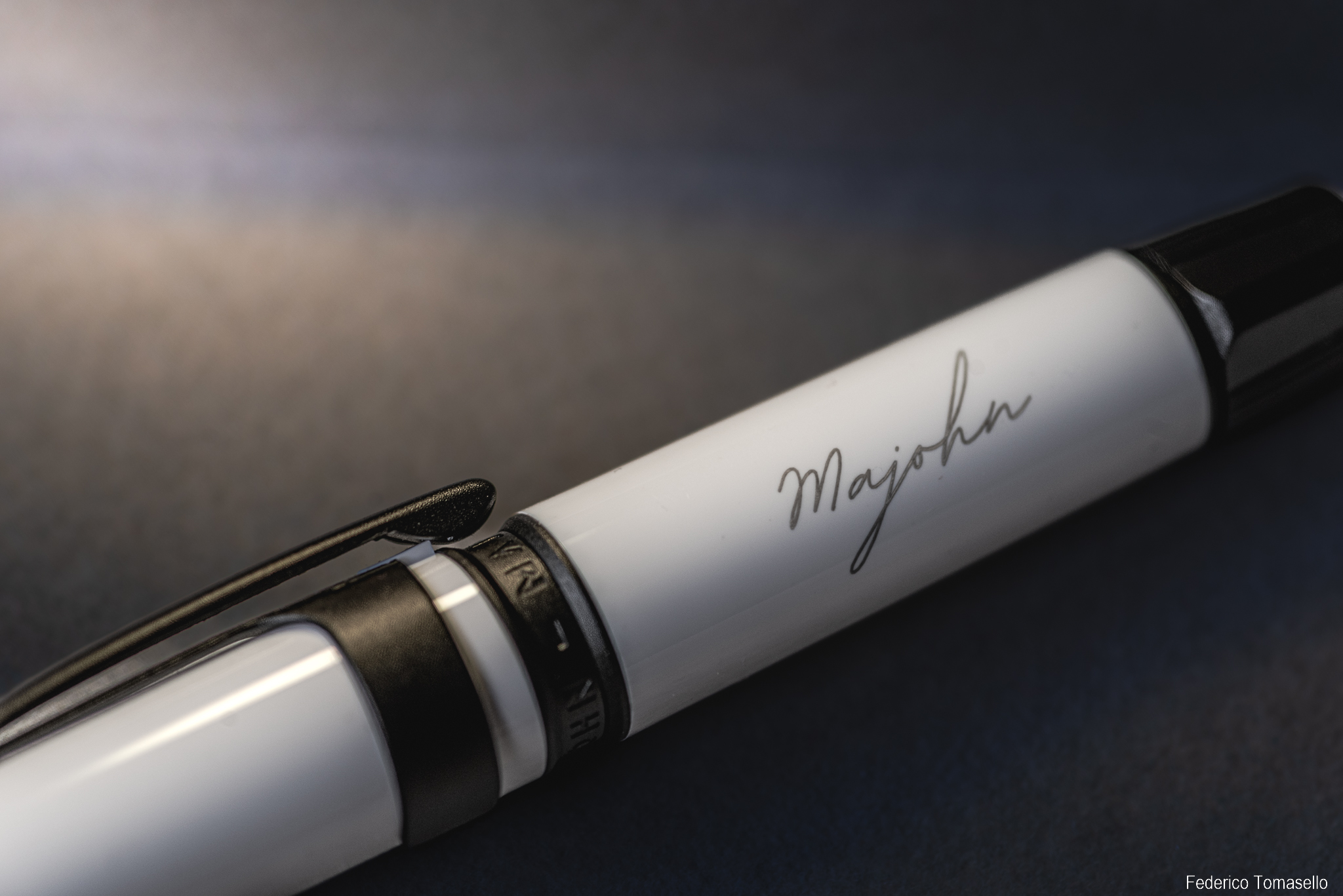 Comodissima da impugnare, dimensioni generose, bel bilanciamento ma soprattutto un pennino che è una piuma sulla carta, senza che comunque salti mai un minimo segno. Il tratto M aiuta nella scorrevolezza, ma è la sensazione di leggerezza che mi ha incredibilmente stupito. Posso andare avanti pagine e pagine senza alcuna, neanche marginale, fatica d'uso.