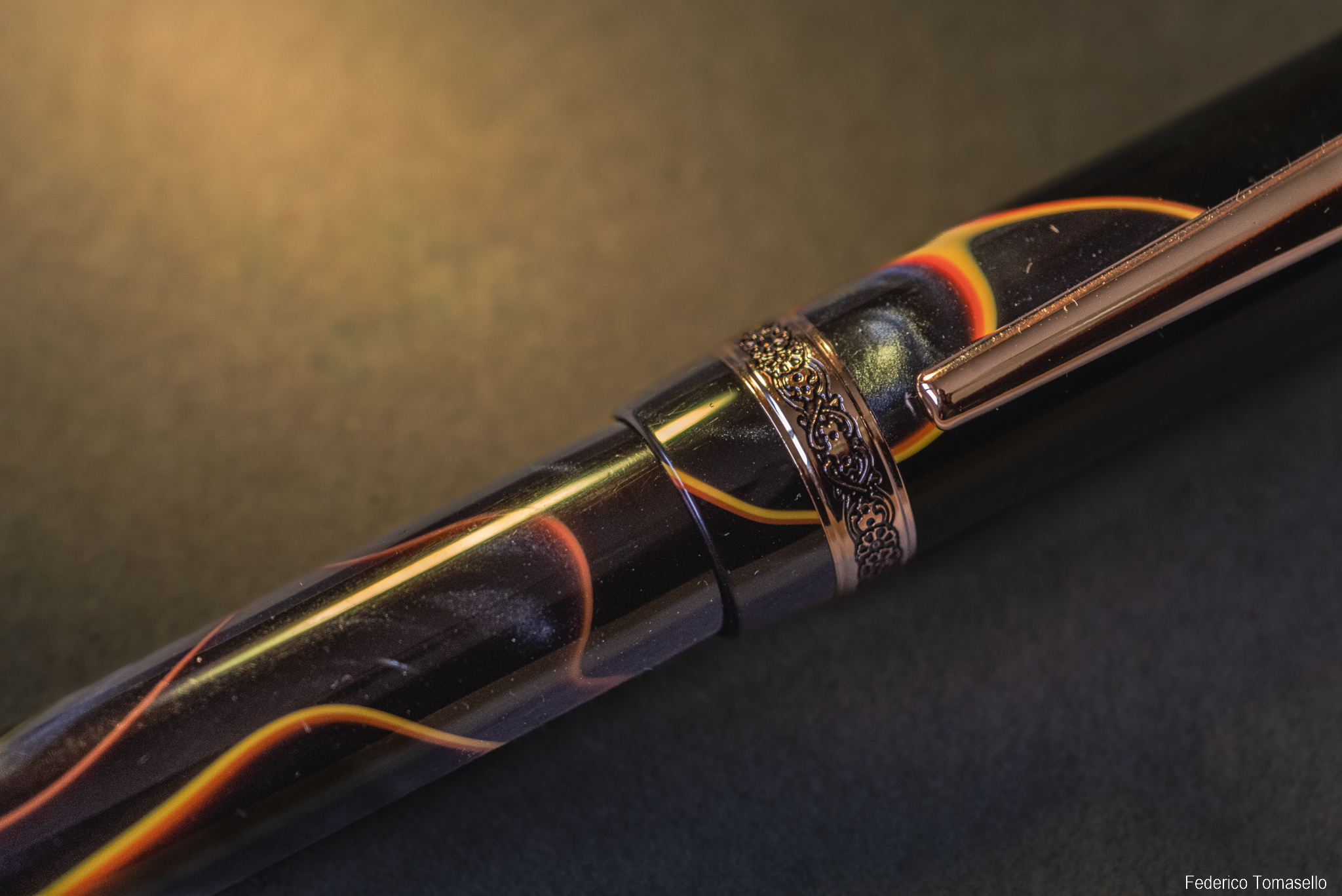 Ultima, ma non per importanza, c'è la Fuliwen 017: marchio un po' meno "chiacchierato" rispetto ai soliti, ma a quanto ho capito con un po' più di passato (ma non so quanto futuro), vista anche la presenza di prodotti "vintage" in giro per il web. La penna è la più costosa di quest'ultimo lotto, 28€, e secondo me li vale tutti, sia per l'estetica che per la funzionalità.
