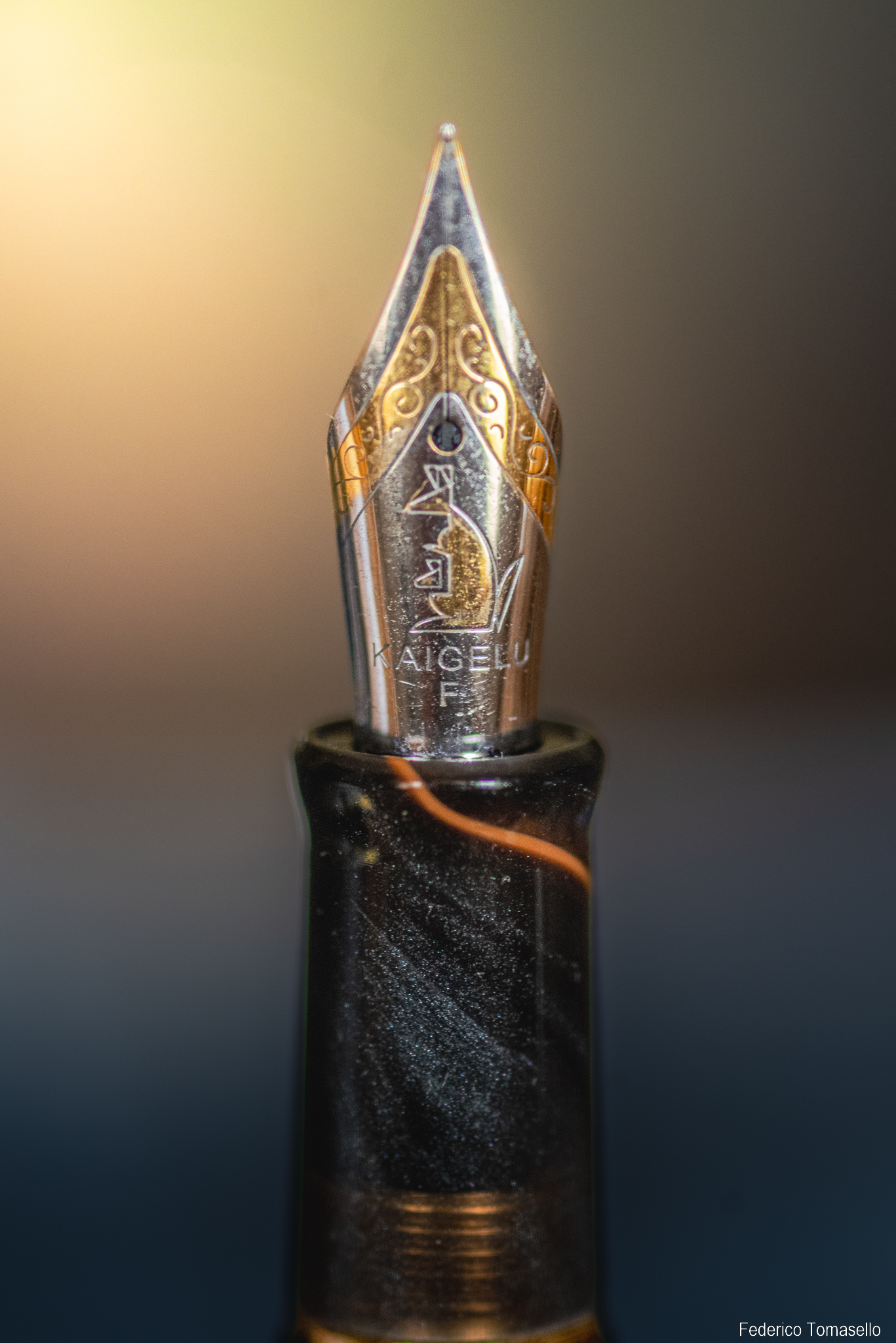 Il pennino è un "M" scorrevole, bagnato e leggiadro quasi quanto quello della Jinhao Tiandao descritta sopra; anche in questo caso scriverci mi è sembrato un vero piacere, considerando anche che il tratto M di questa Fuliwen è decisamente più ristretto rispetto agli M Jinhao e HongDian.