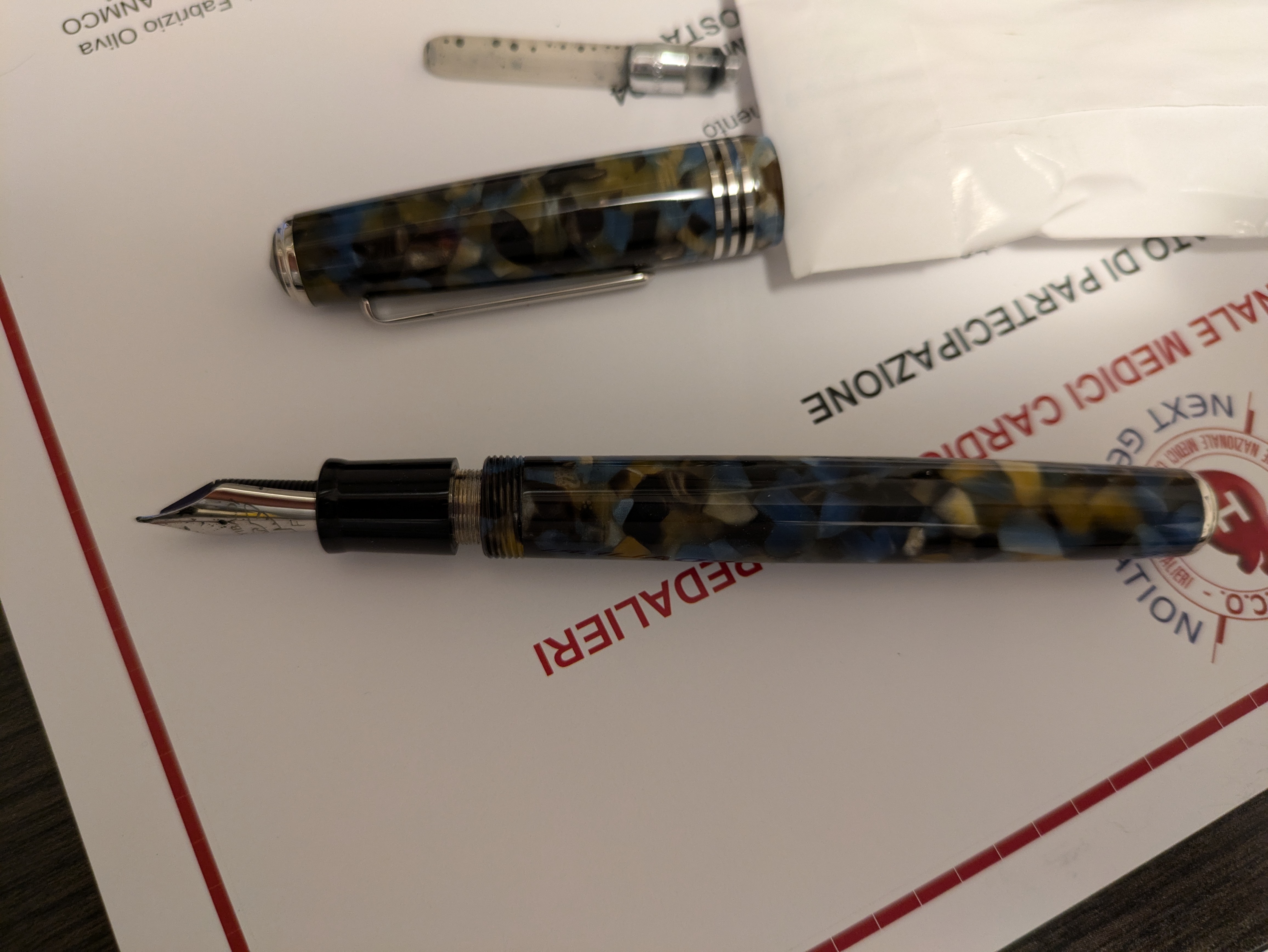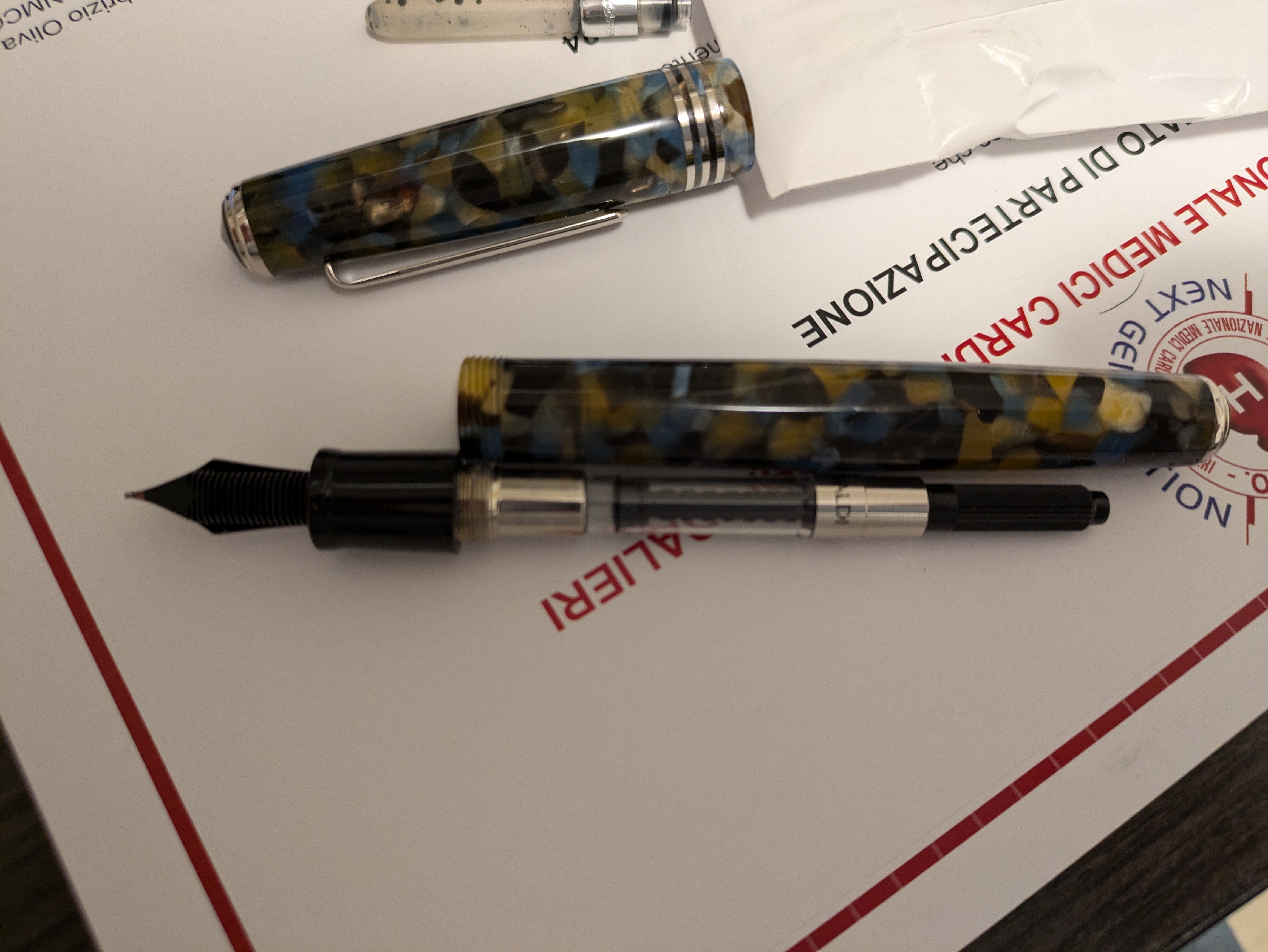 Vengo al dunque: ho ricevuto in regalo una Tibaldi 60, che scrive molto bene ed è piacevole come linea. Usata inizialmente con cartucce, che personalmente non amo (preferendo pistone o, al più, converter). Tuttavia è difettosa: nella scatola non c'era il converter, e quando sono andato al negozio dove è stata acquistata ho potuto appurare che il converter non si può montare perché al fondo del fusto della penna c'è una specie di pernetto che riduce lo spazio interno e impedisce di avvitarlo alla sezione quando il converter è montato. L'ipotesi del venditore è che sia stato erroneamente montato il fusto di una roller/sfera, quindi si è rivolto al rappresentante che ci ha dato la spiacevole notizia che Tibaldi ha chiuso e i ricambi non sono di conseguenza disponibili.