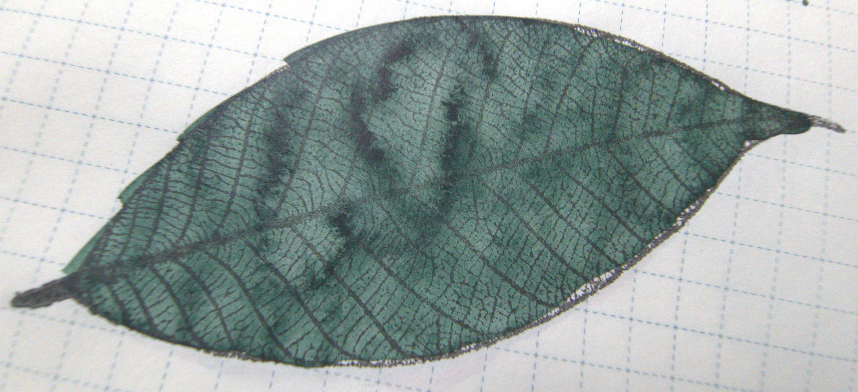 Se il tono di verde fosse più freddo e non colasse dal pennino come se ne andasse della sua esistenza, so che apprezzerei molto questo inchiostro. Quella desaturazione grigia mi piace, ha le potenzialità per essere uno shader interessantissimo... invece...