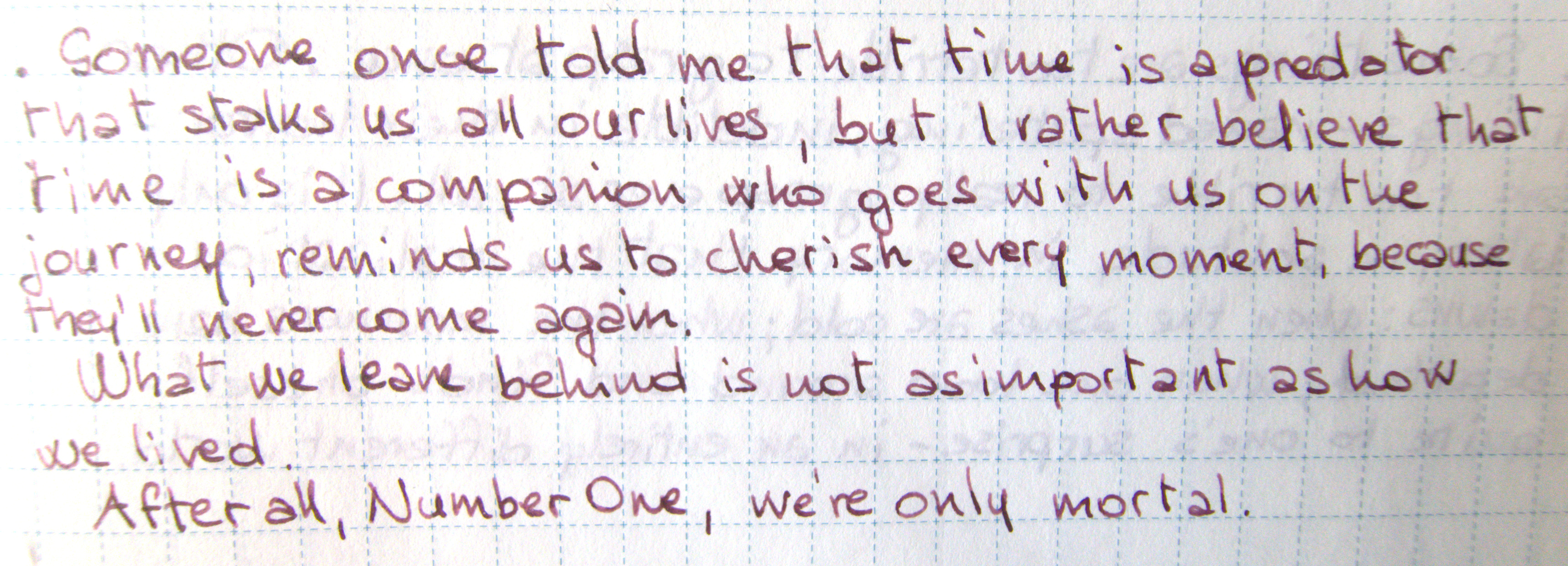 Ha un'eccellente equilibrio nella sua tensione superficiale, risultando in tratti che non si ingrossano nei pennini fini ma riuscendo a esprimere il colore molto bene, senza soffrire di secchezza.