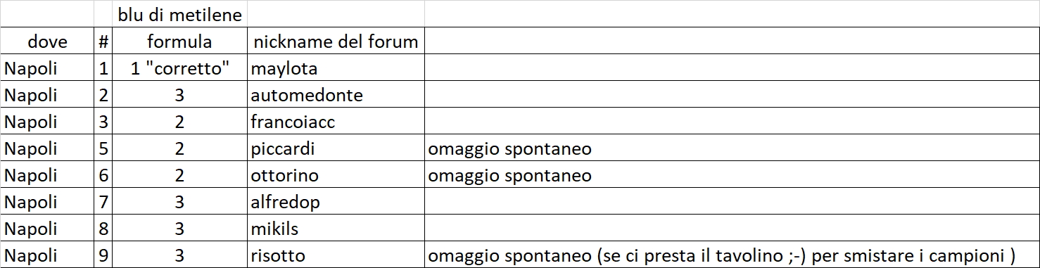 Come dicevo nel topic dedicato al Pen Show di Napoli, io purtroppo con dispiacere non potrò esserci di persona... ma mi piacerebbe far arrivare un po' di campioncini con qualche millilitro ciascuno del mio inchiostro al blu di metilene (formule 1, 2, 3) viewtopic.php?p=416840,