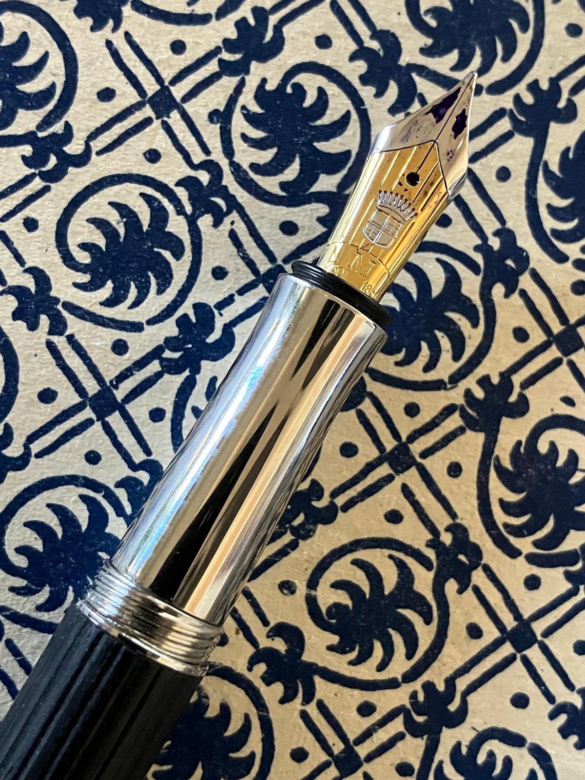 Il pennino, size 5, in oro 18k, lavorato two-tone, con lo stemma della casa, sulla mia Classic è un M ed è sorprendentemente morbido!