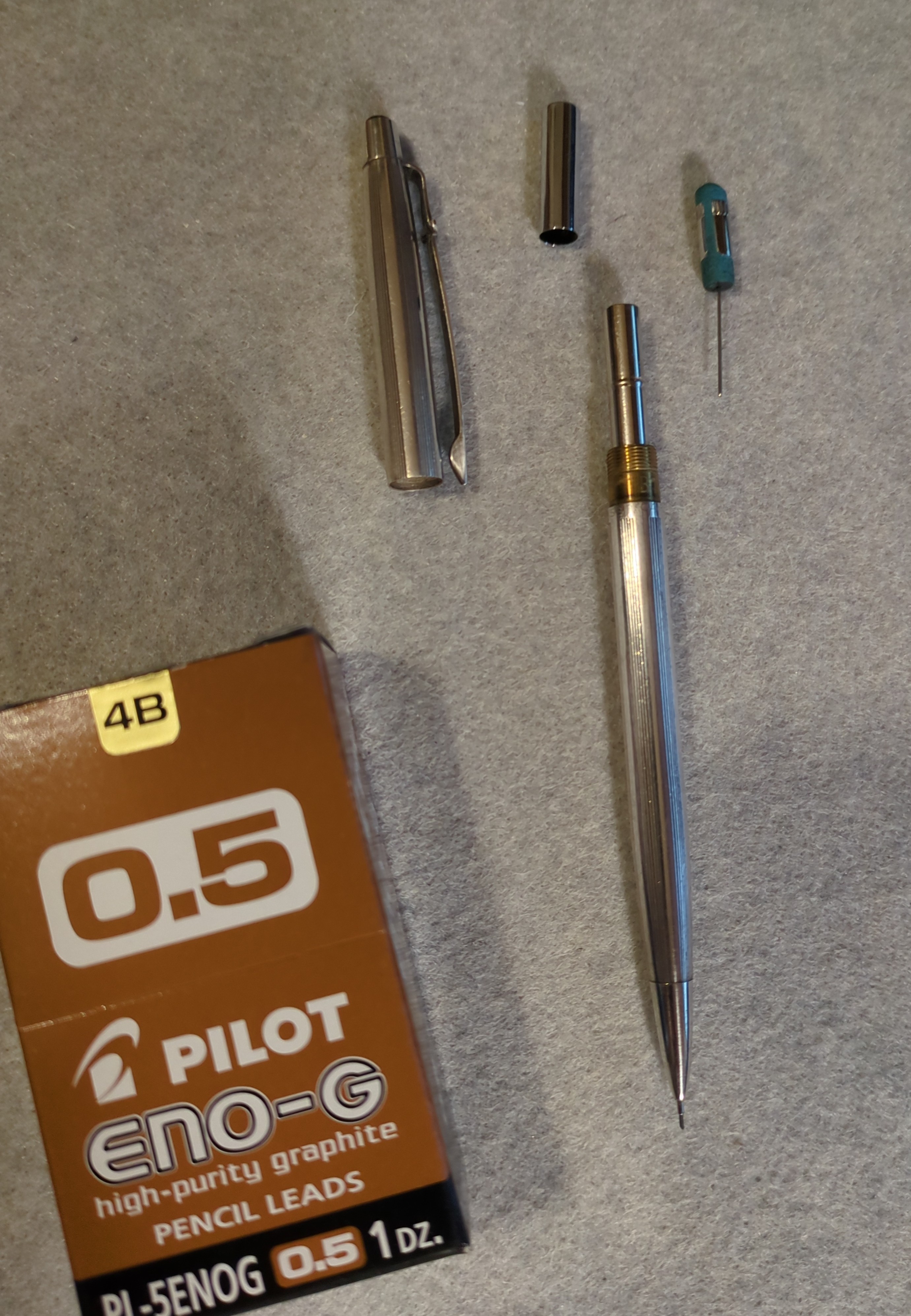 Dopo averla pulita (era molto ossidata) e ricaricata con le mine Pilot eno-g (le migliori micromine tra le tante che ho usato negli anni) - durezza 4B (mi piace "scrivere morbido"