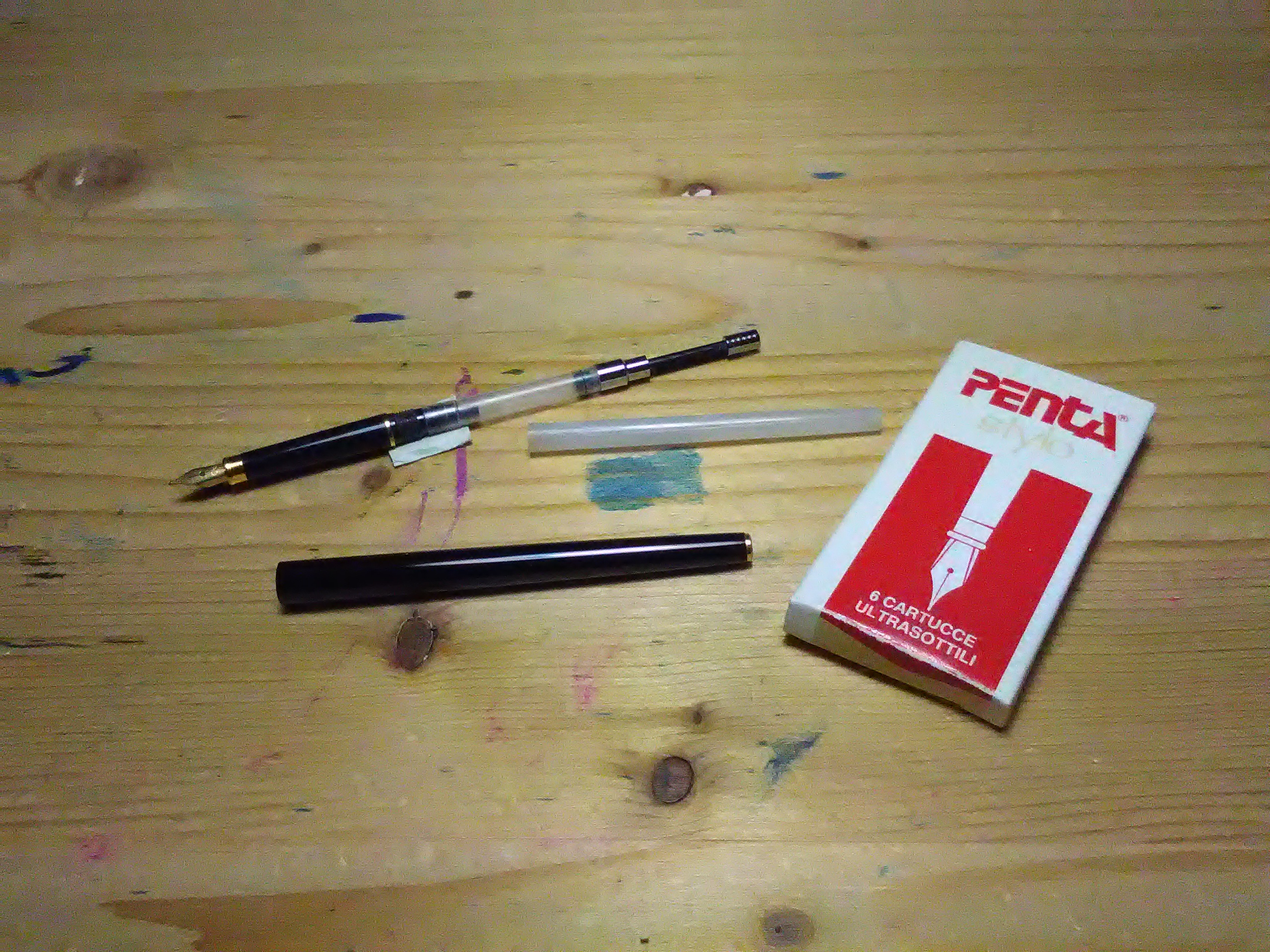 Per chi possedesse questa penna Penta ultrasottile (Max?) e di cui è difficilissimo trovare le cartucce. Il problema è risolvibile comprando il convertitore per la Sailor Chalana apparso in un negozio convenzionato.
