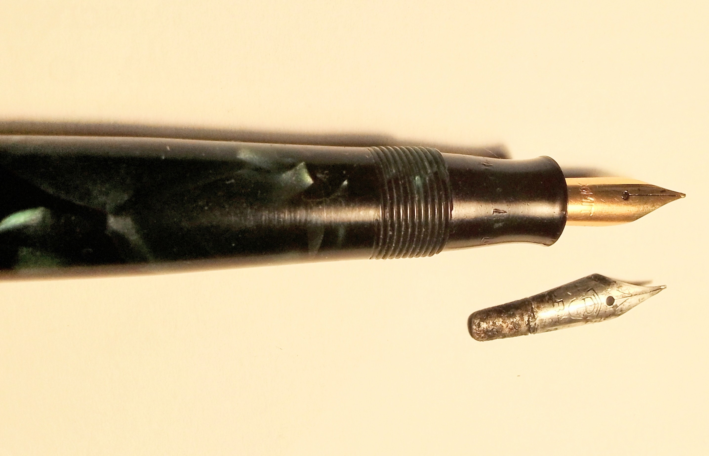 1)pennino: parte a vista non è/era arrugginito, ma intaccato notevolmente dall'inchiostro antico residuo ( forse 50 anni )
