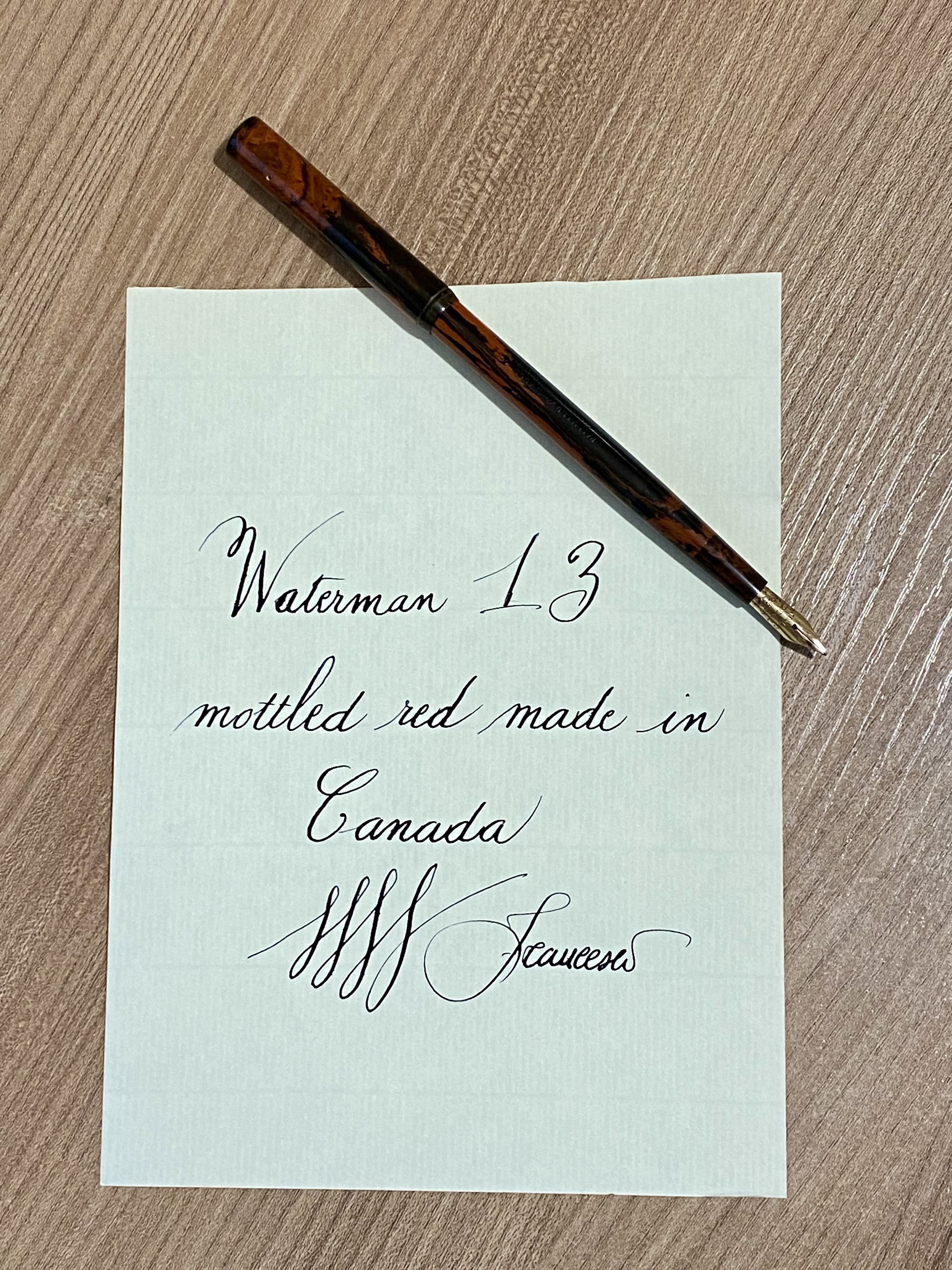 Scrive in maniera impeccabile, scorre sulla carta lasciando una traccia di inchiostro consistente e senza incertezze con un feedback che trovo perfetto. Insomma un pennino che si comporta né più né meno che come ci si aspetta da un Waterman dell’epoca fatto unicamente per scrivere. Eccolo in azione.