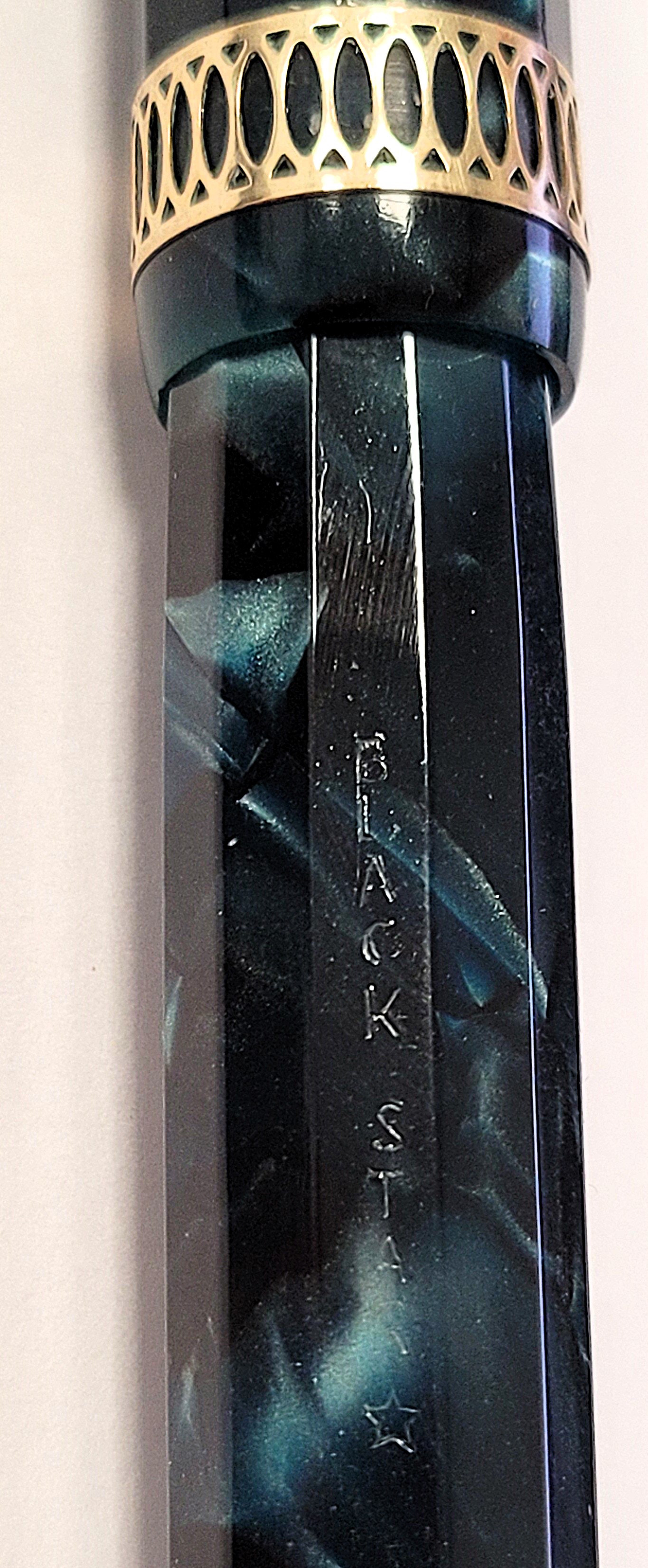BLACH STAR è stato sicuramente un produttore “minore” italiano di penne stilografiche di fascia medio bassa che, forse, in qualche sporadico caso si concedeva qualche velleità realizzando modelli più curati. Questo in particolare potrebbe essere datato intorno agli anni ’30 tenendo in considerazione la forma “flat-top”, il sistema di caricamento a pulsante e l’alimentatore bombato liscio.