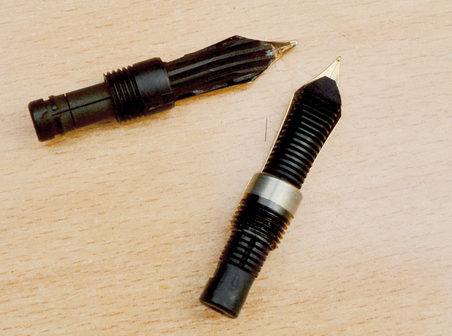 Nel caso di collare rotto la mia esperienza è che il pennino basta tirarlo e viene via... l'alimentatore in genere anche, mentre il collarino resta lì incastrato... e ci vuole un po' di pazienza per tirarlo fuori.