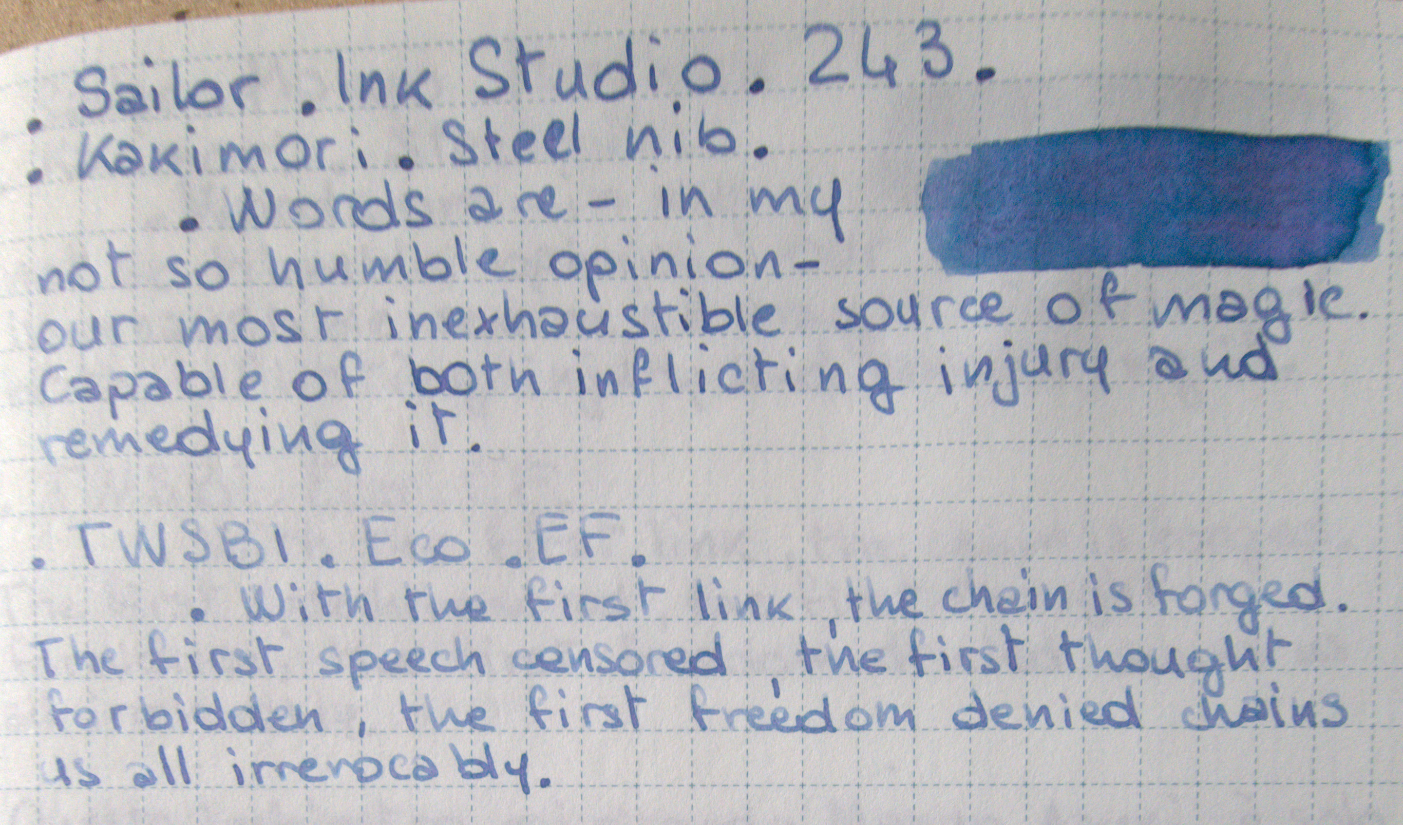 Il pennino usato è il Kakimori in acciaio a meno che diversamente specificato.