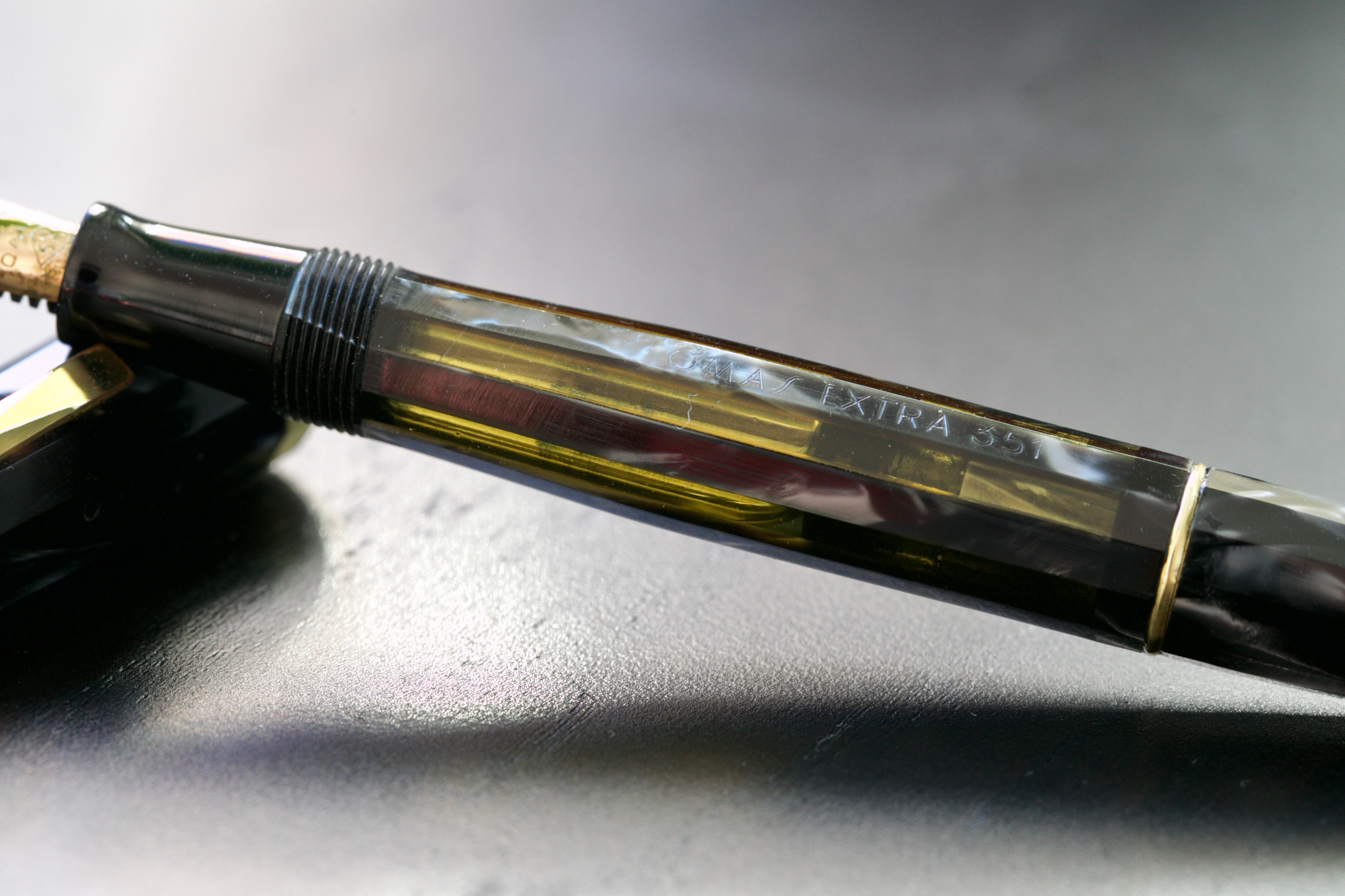 Vi presento la mia seconda Omas extra 351, la prima la trovate qua, viewtopic.php?t=16241, penna perfetta probabilmente quasi mai usata, ha una trasparenza notevole e le ho sostituito solo il sughero che non aspirava più. Pennino extra lucens flessibile, è una penna che calza bene in mano nonostante per mio gusto sia piccolina. Adesso mi manca solo di trovare la sorellona extra 352...