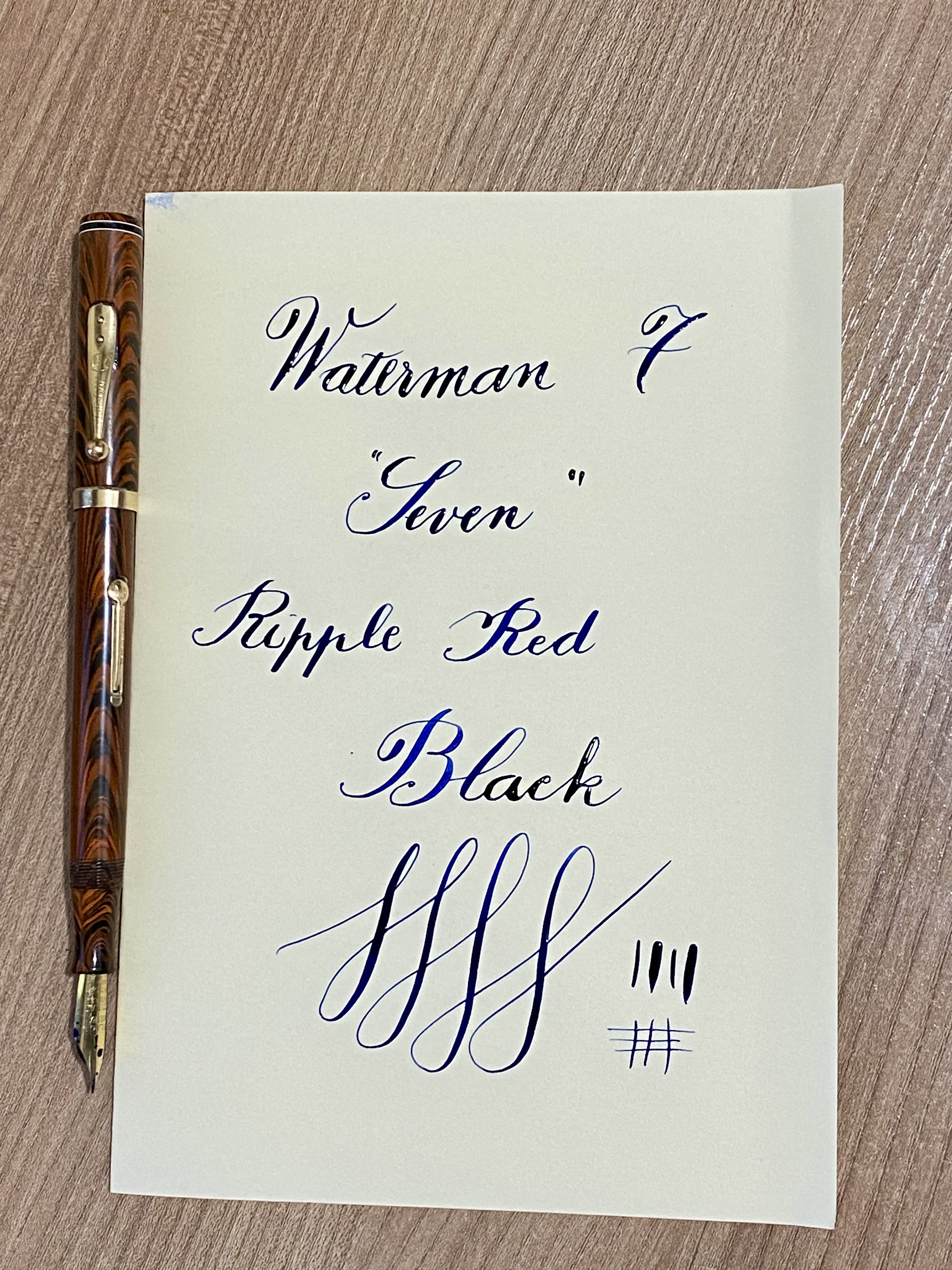 La Waterman 7 oltre ad essere una delle più riuscite realizzazioni in ebanite prodotte da Waterman, in virtù delle sue dimensioni, è una penna che risulta particolarmente pericolosa per noi collezionisti a causa del nuovo sistema di colori utilizzato. Tramite un codice di colori che veniva stampato sul pennino e indicato sul cappuccio con una banda colorata, Waterman identificava dei pennini che a loro parere erano sufficienti a soddisfare le esigenze di tutti gli utenti.