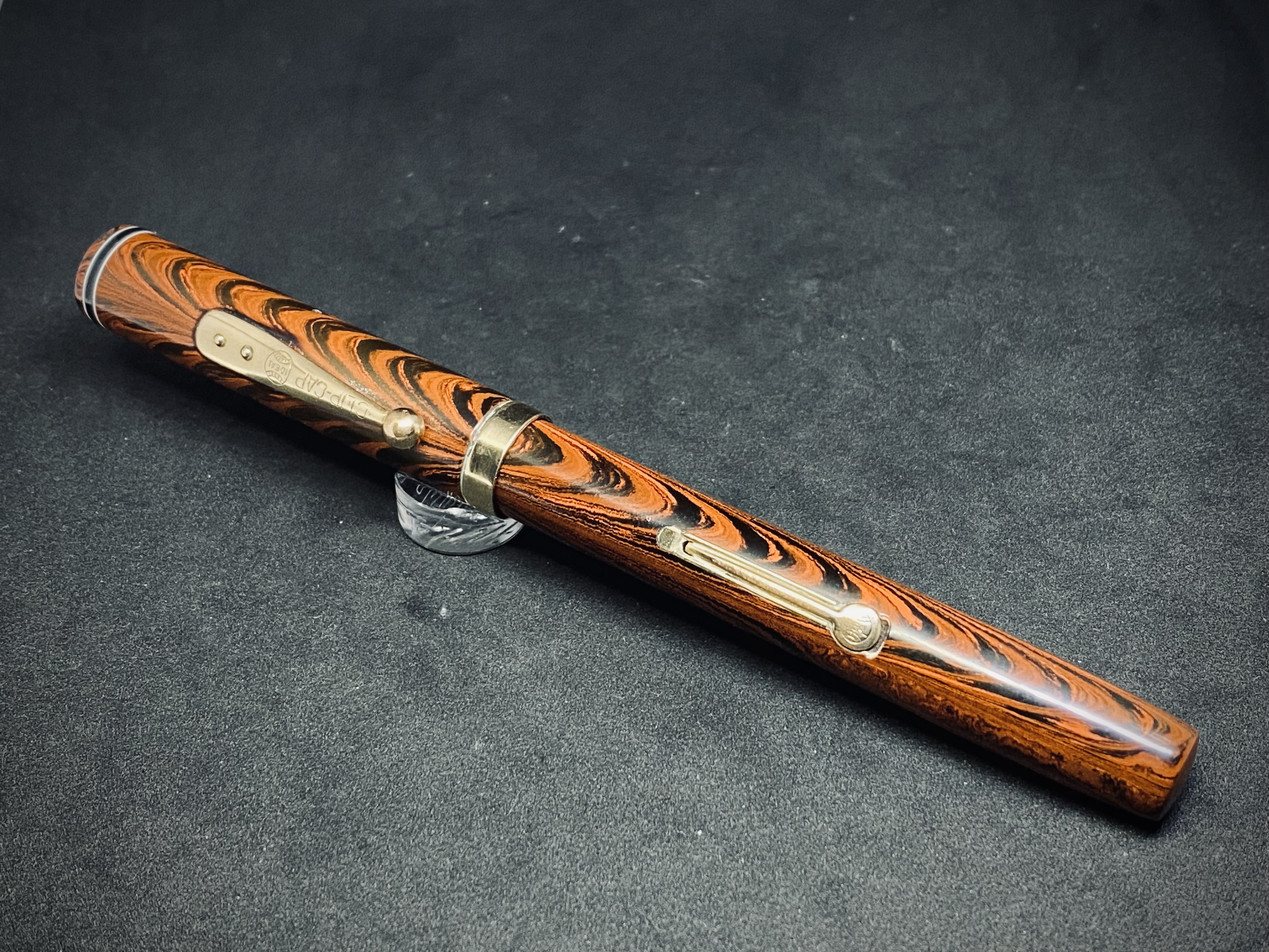 Su questo specifico esemplare il pennino è uno dei classici e famigerati pennini Waterman flessibili senza se e senza ma. Flette senza mai dare segni di cedimento con un alimentatore, a sua volta in ebanite rossa, che garantisce sempre un buon afflusso di inchiostro.