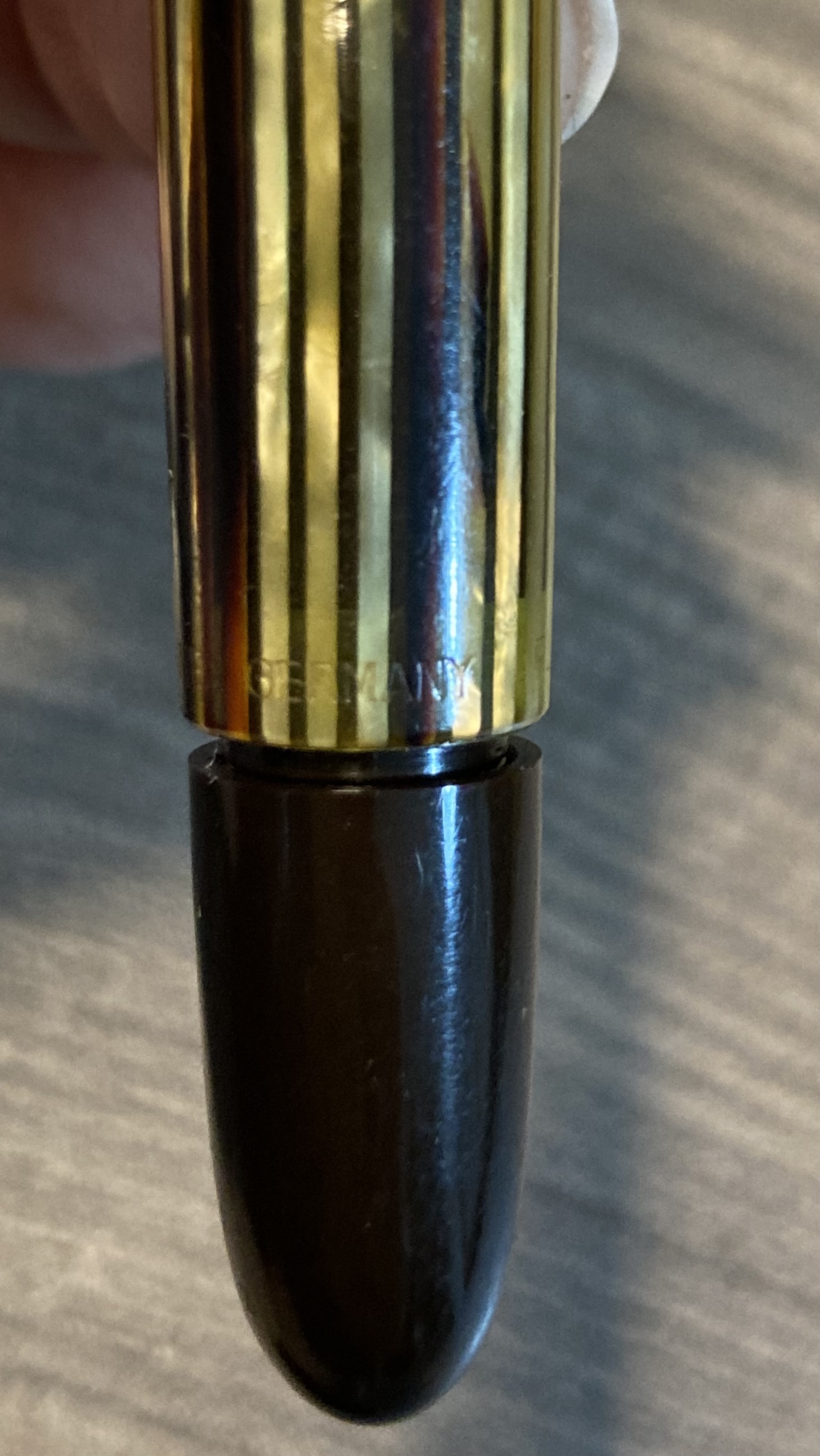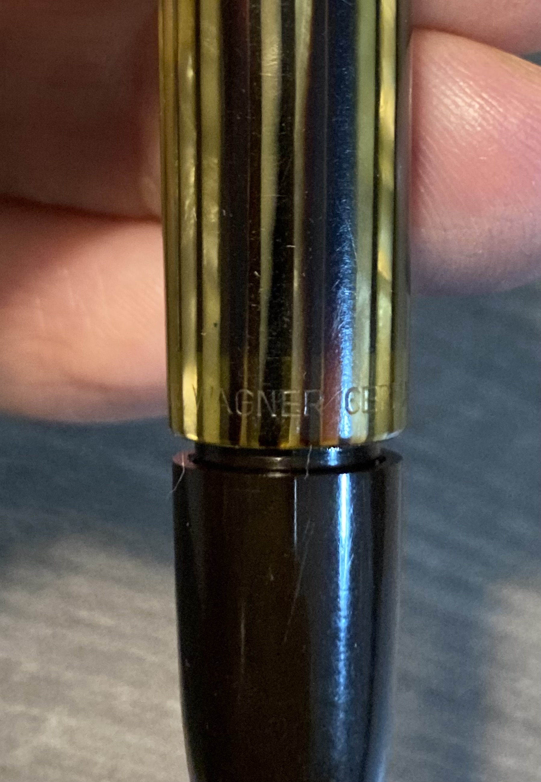 Senza la scritta Gunther Wagner sul fusto e il pennino con la decorazione ad albero di natale i cui rami non toccano la linea centrale identificano la stilografica come prodotta molto probabilmente tra il 63-65.