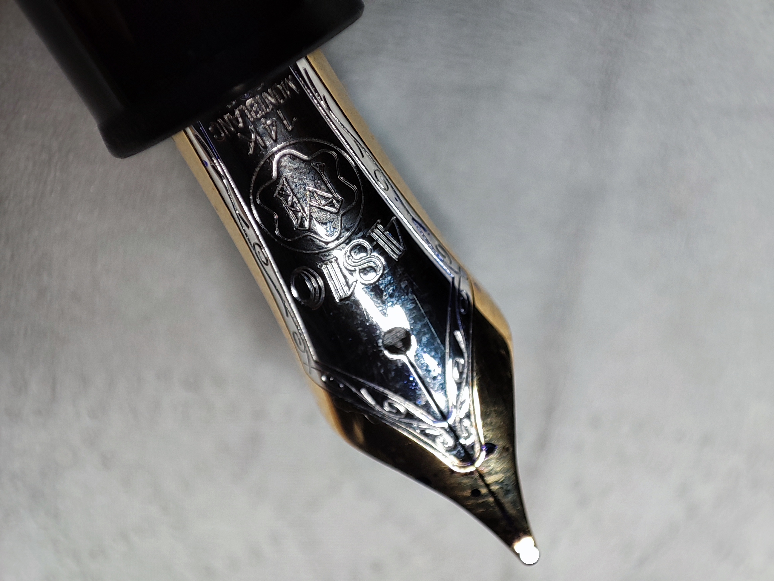 Concordo sull' esaminare il pennino, le Montblanc hanno il pennino che in punta è sempre levigato quasi a formare un tondo appiattito e si nota in special modo nella misura media. Da quello che si vede dalla foto è originale.
