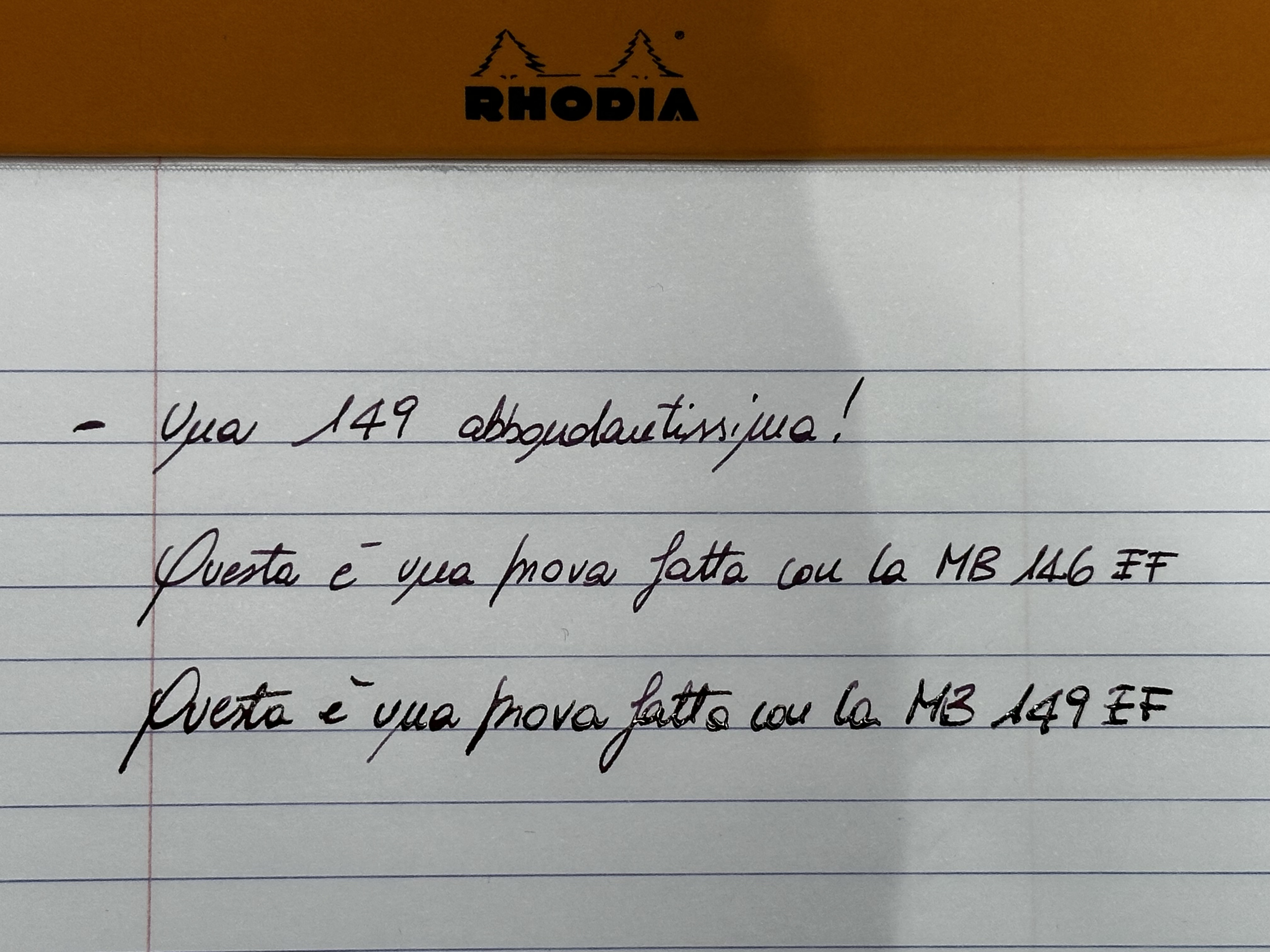 L'unico modo per avere la certezza di comprare una 149 con pennino EF magro è andare in boutique, provare tutti i loro pennini EF e scegliere quello con il tratto più sottile. Altrimenti va a caso perché c'è sempre una variabilità figlia della lavorazione manuale della punta del pennino. L'artigianato (limitato a alcuni aspetti) è anche questo nel bene e nel male.